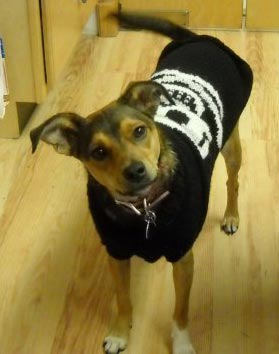 Maddie is doing awesome! I've attached a few pictures because I'm shameless when it comes to showing her off. Yuri and I recently got married and our venue did not allow dogs so we got a little creative finding ways to include her. There's also a picture of Maddie with a dolphin on her head just because she can :)