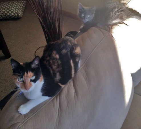 Ninja loves his new home! I decided to stick with the name "Ninja" because he is a very playful kitty. He follows Scully around everywhere and always tries to play with her, but of course, given her age she is rather ambivalent towards him and would rather have a peaceful nap in the sun. But Ninja has been such a joy and I am very happy to have him join my family!