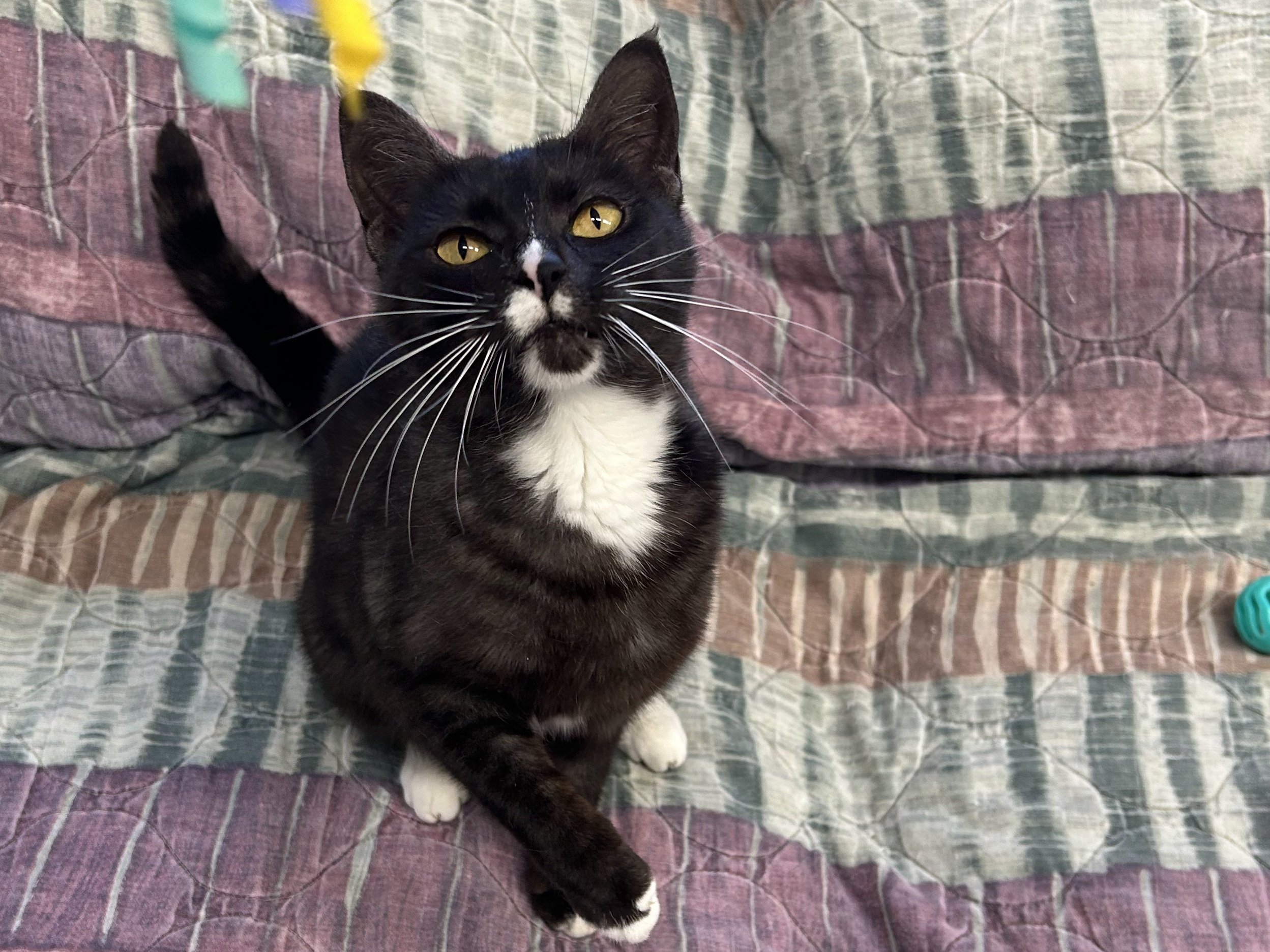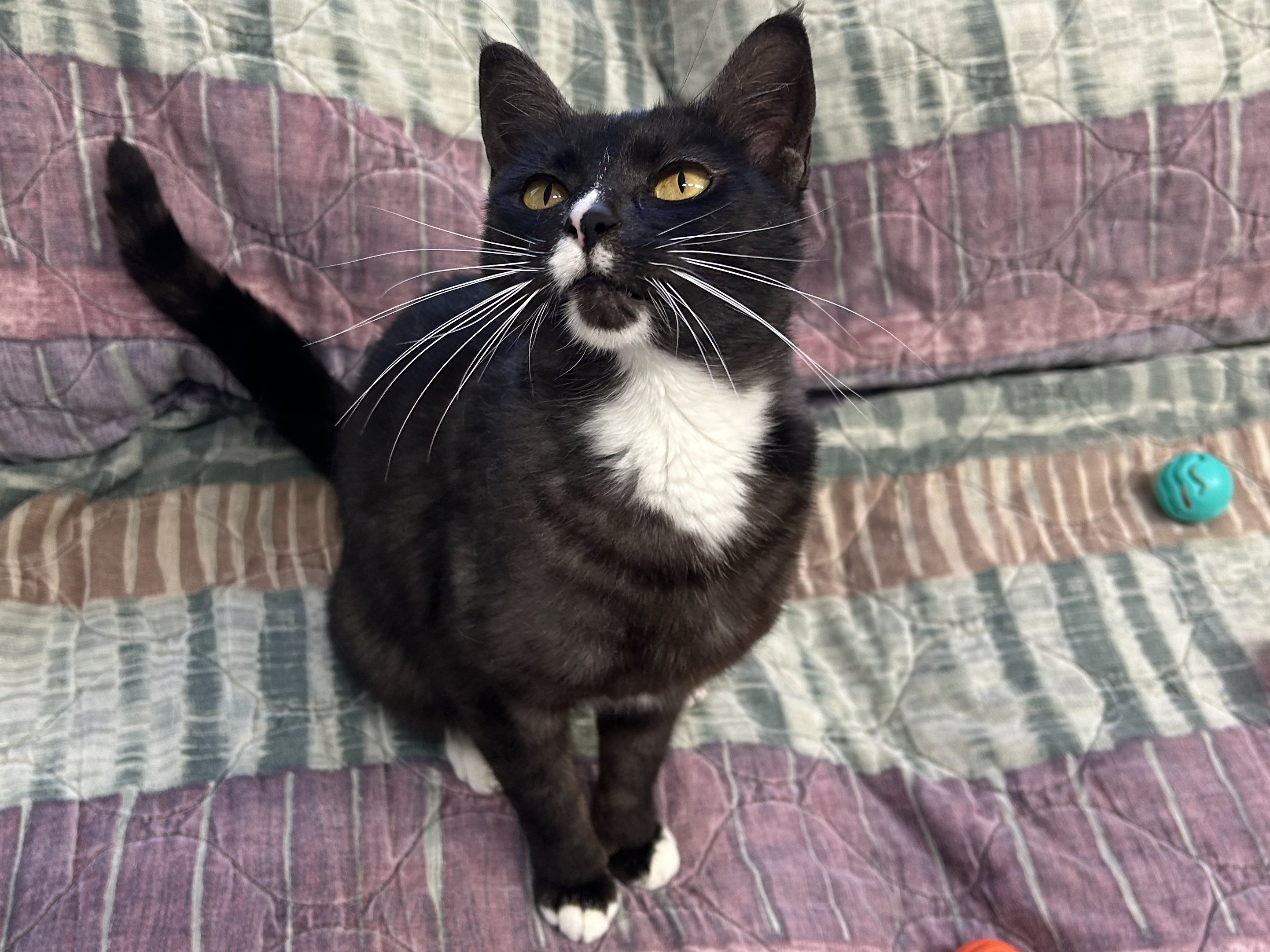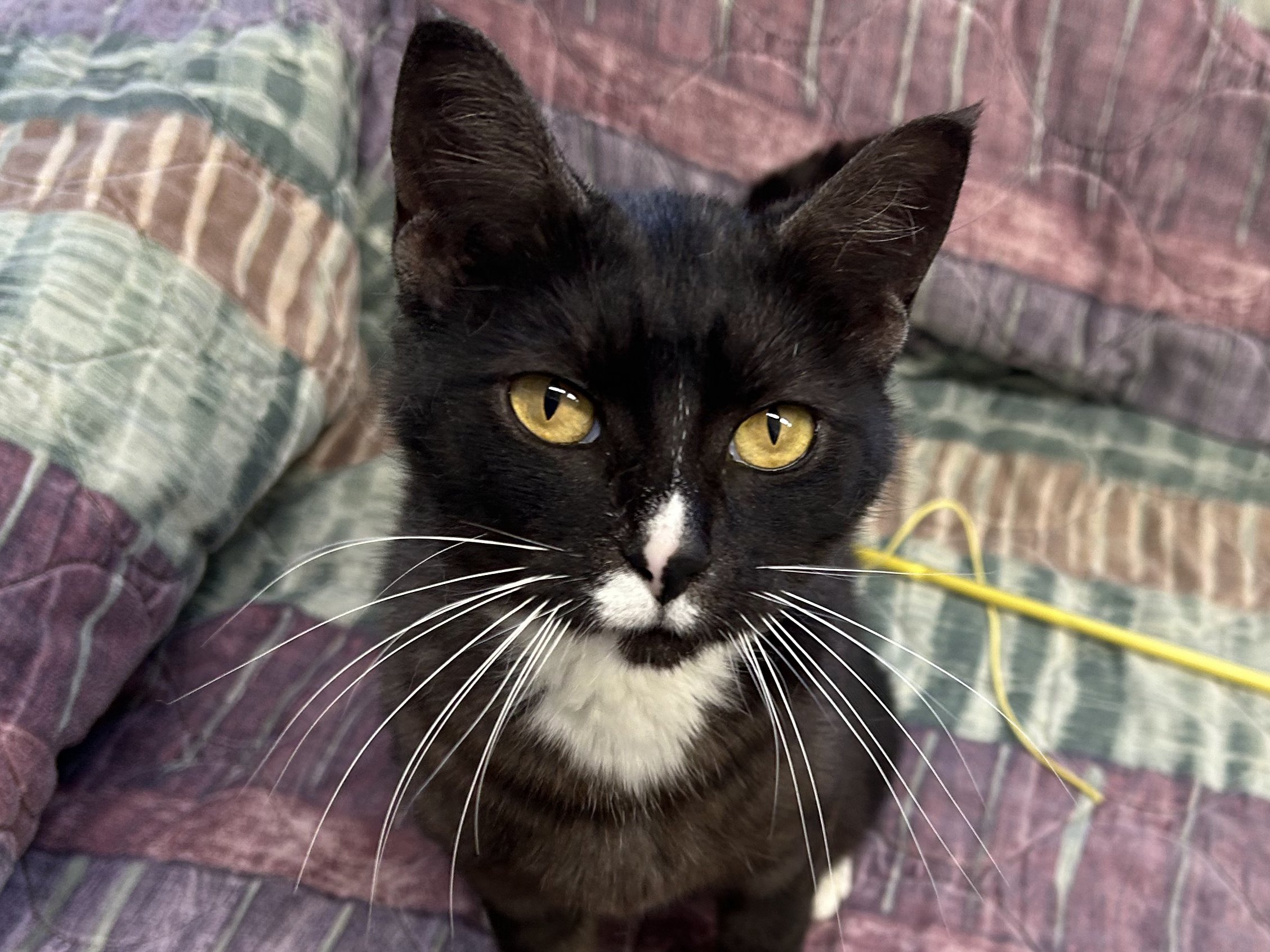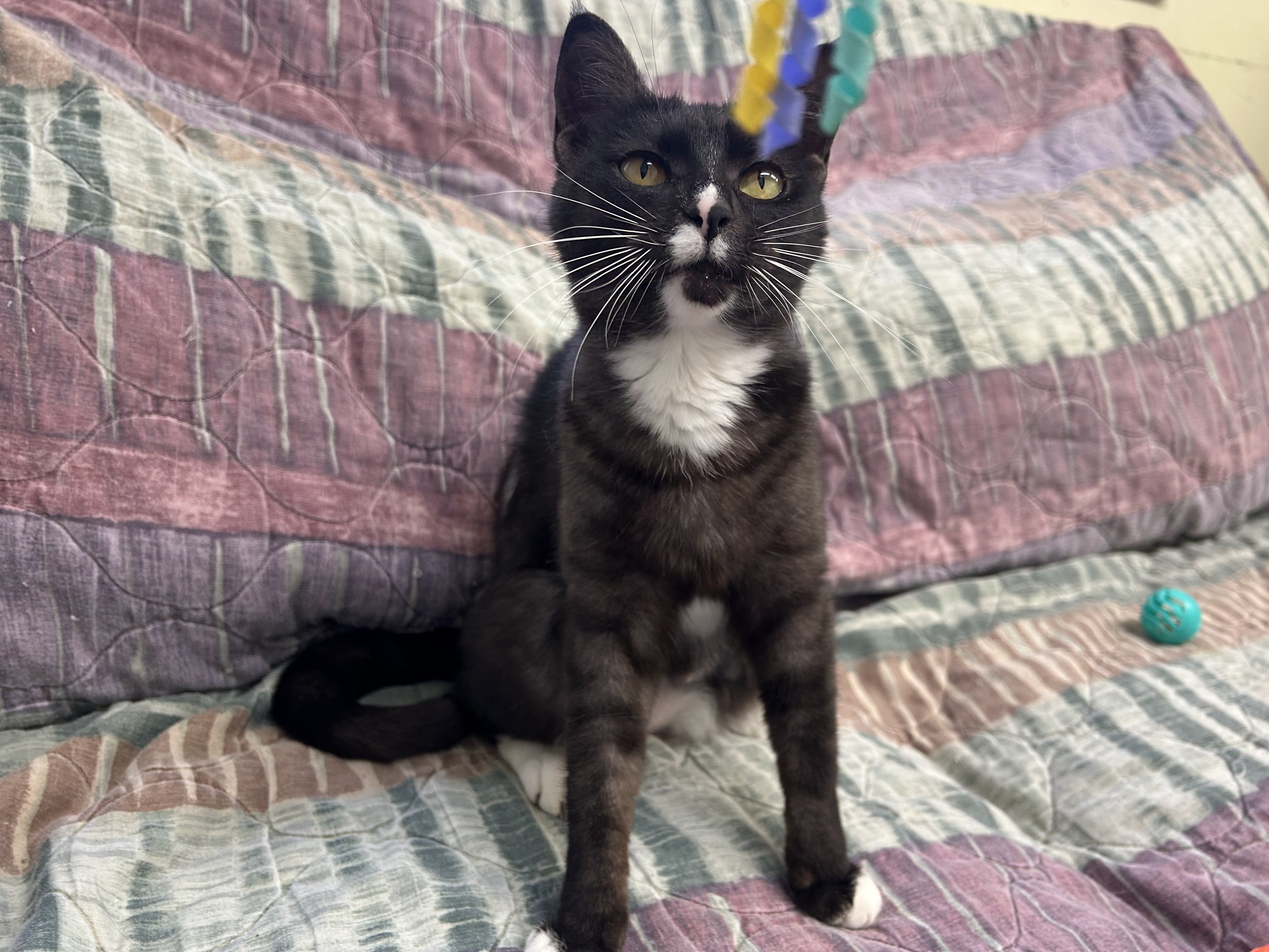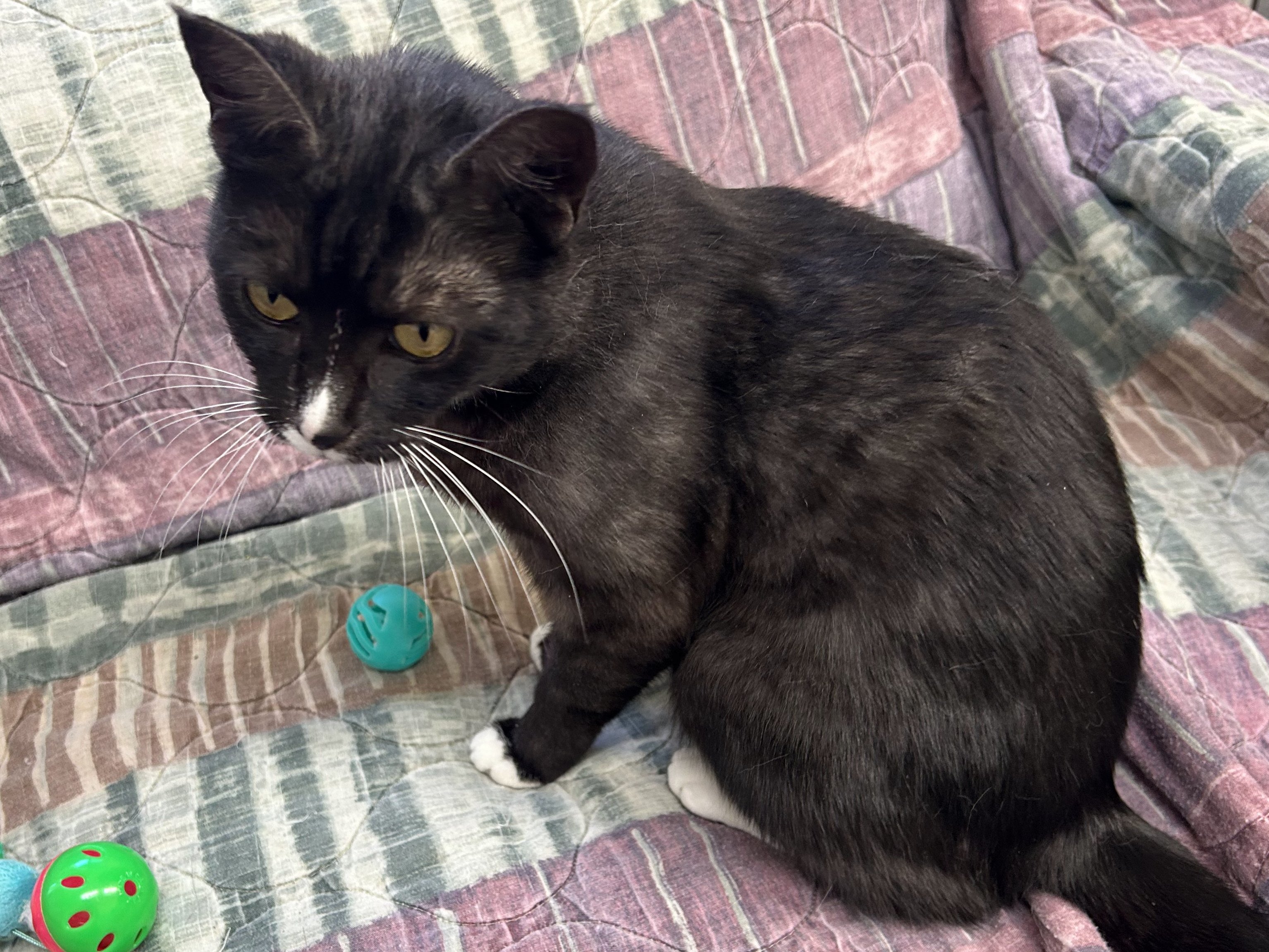 Please do not call the shelter; do the application first. Meet Bonita - Your Beautiful, Chatty, Cuddle Companion Bonita lives up to her name, she’s beautiful in every way, from her soft fur to her affectionate, people-loving heart. As one of our beloved office kitties, Bonita gets a lot of love from staff and volunteers, and she soaks up every bit of it. This 2-year-old tuxedo girl is a pro at cuddles and happiest when she’s curled up near someone, supervising from a cozy spot or gently nudging for more pets. This talkative girl loves to chat, especially when she spots birds outside, she’ll chirp and trill as if she’s narrating her very own nature documentary. Her favorite pastime is gazing out the window, watching the world go by between snuggle sessions. Bonita is a “tree dweller” at heart and enjoys climbing up high to perch and observe her kingdom. Whether she’s nestled in your lap or hopping up to her favorite high shelf, she wants to be wherever you are, she’s the ultimate shadow with a tail. Bonita prefers to be the only cat in the home, but she has done well with respectful dogs after a slow mindful transition. She would thrive in a home where she can be your one-and-only feline queen or share space with a mellow pup who understands boundaries. All pets arrive spayed/neutered, dewormed, microchipped and vaccinated. Adoption fee for Bonita is a suggested minimum of $50 (more gratefully accepted). All pets are placed with a 30-day money-back trial period, to give pet and family enough time to discover any unknown allergies or other conflicts. Can't come to Republic? Don't let that stop you! We have monthly transports to the Seattle area, delivering adopted pets to their new owners. If you can add a little to your donation to help us cover our volunteer driver's expenses, that would be great!