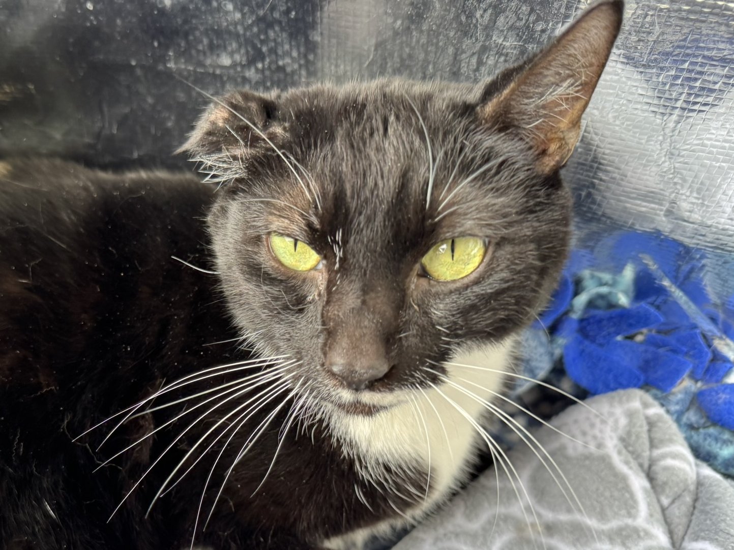 Please do not call the shelter; do the application first. Kevin is a one-of-a-kind kitty, literally. With his unique ear (the result of a major hematoma) and expressive meows, he’s got a look and personality that are all his own. He’ll greet you with chirps and chatter, especially when he’s feeling sociable, and he’s never shy about letting you know he’s around. Kevin isn’t one for being picked up or held, but don’t let that fool you, he loves affection on his terms. His absolute favorite? A good brushing session while he lounges like the handsome king he is. He’s the kind of cat who will rub up on furniture, nap in sunny spots, and quietly enjoy being part of your world without asking too much. Be forewarned, though, you must be savvy at reading kitty body language; when he has had enough brushing or petting, he says "NO MEANS NO" and has been known to smack his human friend with a murder mitten to make them stop. This slightly cantankerous guy is low maintenance, vocal, and full of character, perfect for someone who appreciates a cat with clear boundaries and a big heart. This guy is around 5-6 years old (best guess), so all out of kitten crazies and ready to just chill with you. Kevin would likely benefit from an indoor-outdoor lifestyle or a nice big catio, and several rousing wand-toy sessions per day to help him work out his energies. We feel he is a bit frustrated by his shelter captivity, which increases his sporadic cranky moments. We don't recommend Kevin for children, and the other cats in his cat room tend to give him the side-eye, wondering if he's in his calm mood or his cranky mood, so he may do best as an only kitty for a smart cat whisperer. All pets arrive spayed/neutered, dewormed, microchipped and vaccinated. Adoption fee for Kevin is a suggested minimum of $50 (more gratefully accepted). All pets are placed with a 30-day money-back trial period, to give pet and family enough time to discover any unknown allergies or other conflicts. Can't come to Republic? Don't let that stop you! We have monthly transports to the Seattle area, delivering adopted pets to their new owners. If you can add a little to your donation to help us cover our volunteer driver's expenses, that would be great!