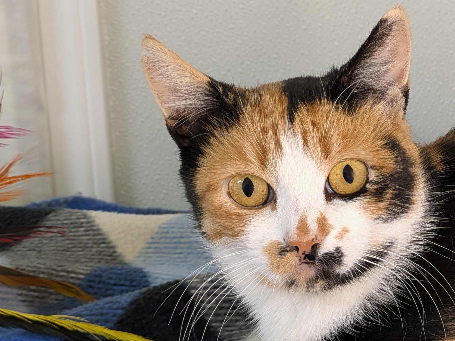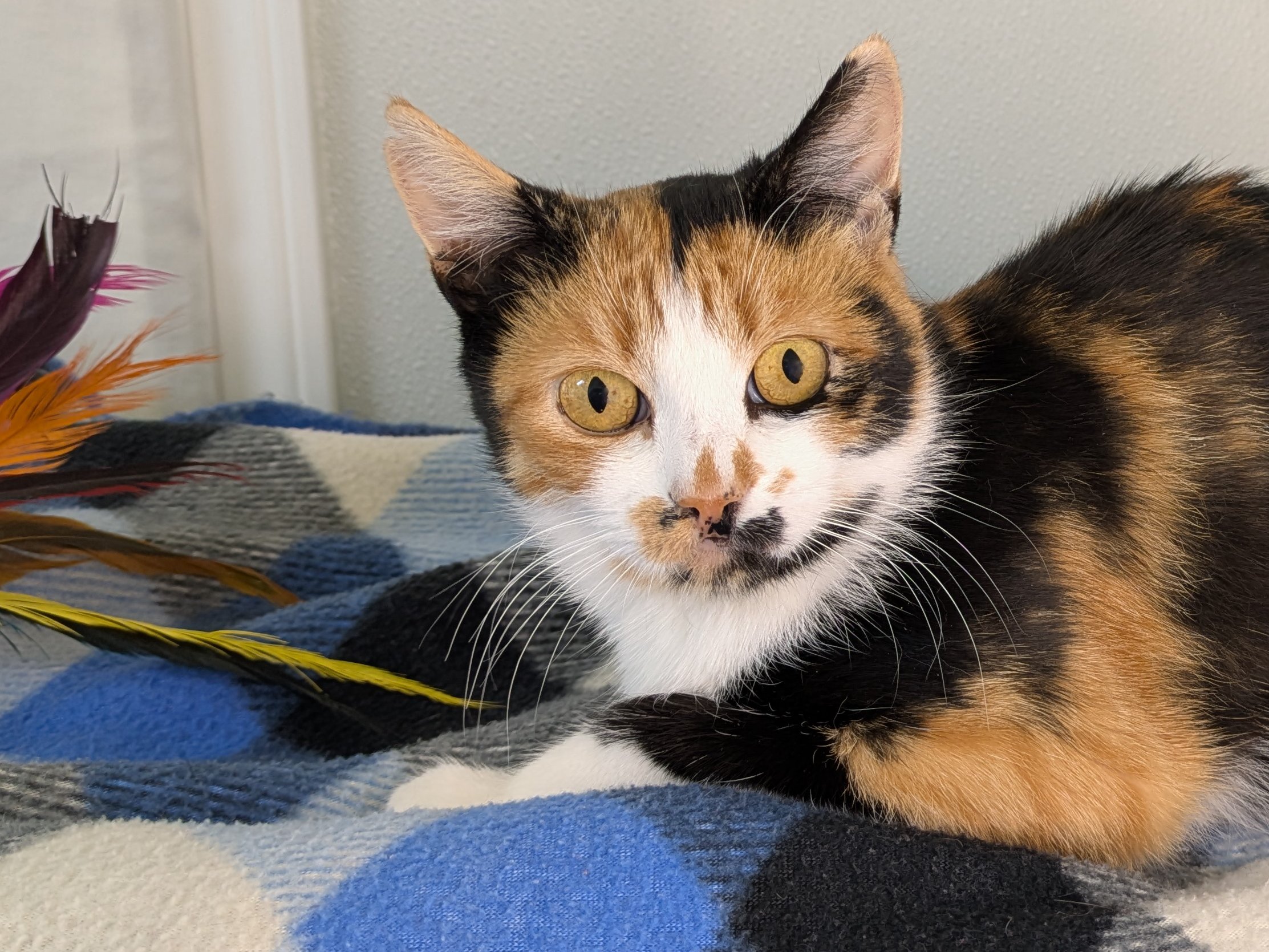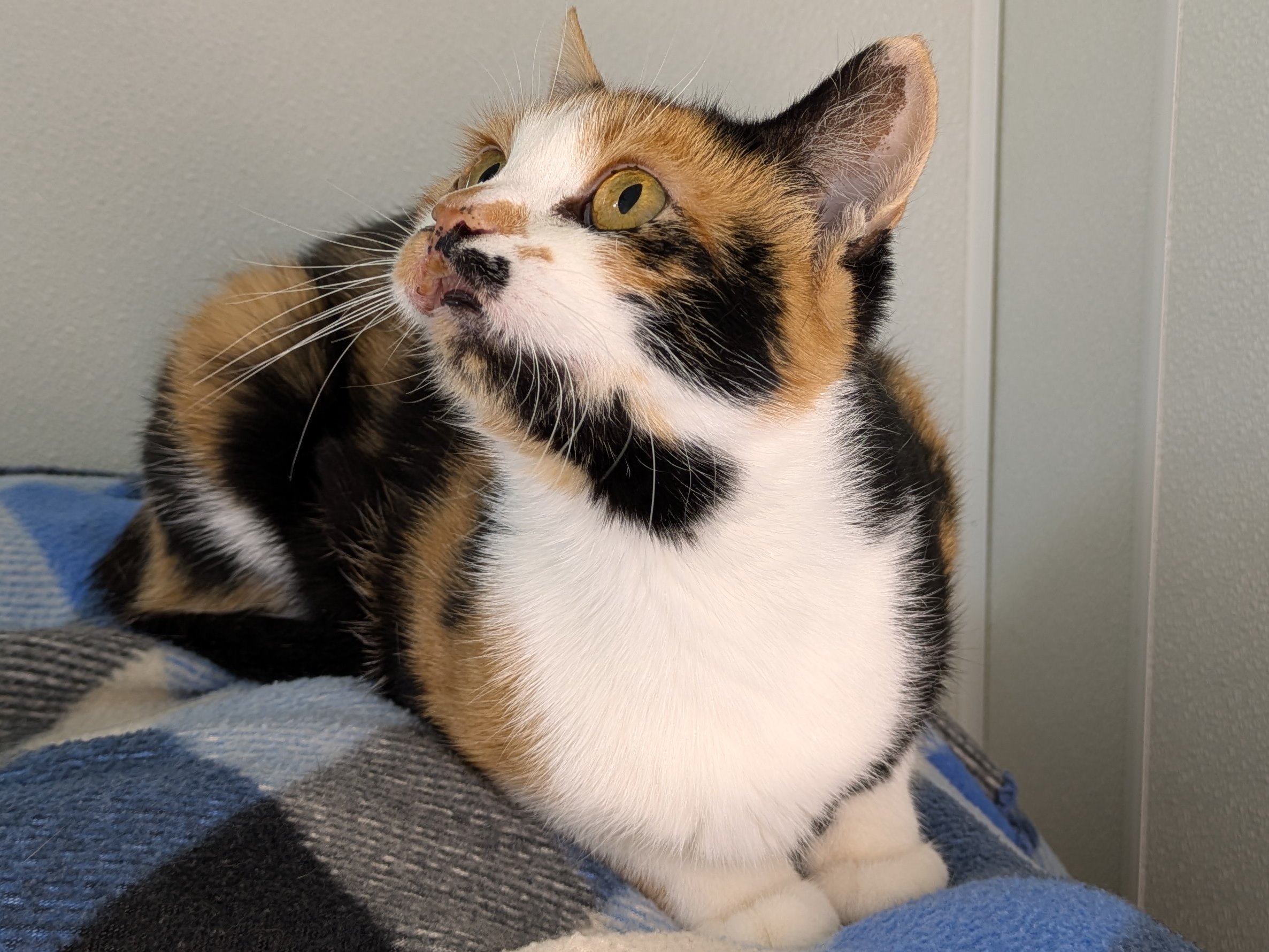 Please do not call the shelter; do the application first. Kalispell arrived as a stray in mid-August, and gifted us with five adorable kittens just a couple of weeks later! Now it's time for Kalispell and her babies to all find forever homes. Kalispell is a lovely calico girl. She seems to be a young adult, so we've estimated her date of birth as 8/1/24. We haven't tested her with other cats or dogs yet, as she and her little family were bonding in their own space. We'll update as soon as we have more info on this beautiful girl! Video Coming Soon All pets arrive spayed/neutered, dewormed, microchipped and vaccinated. Adoption fee for Kalispell is a suggested minimum of $50 (more gratefully accepted). All pets are placed with a 30-day money-back trial period, to give pet and family enough time to discover any unknown allergies or other conflicts. Can't come to Republic? Don't let that stop you! We have monthly transports to the Seattle area, delivering adopted pets to their new owners. If you can add a little to your donation to help us cover our volunteer driver's expenses, that would be great!