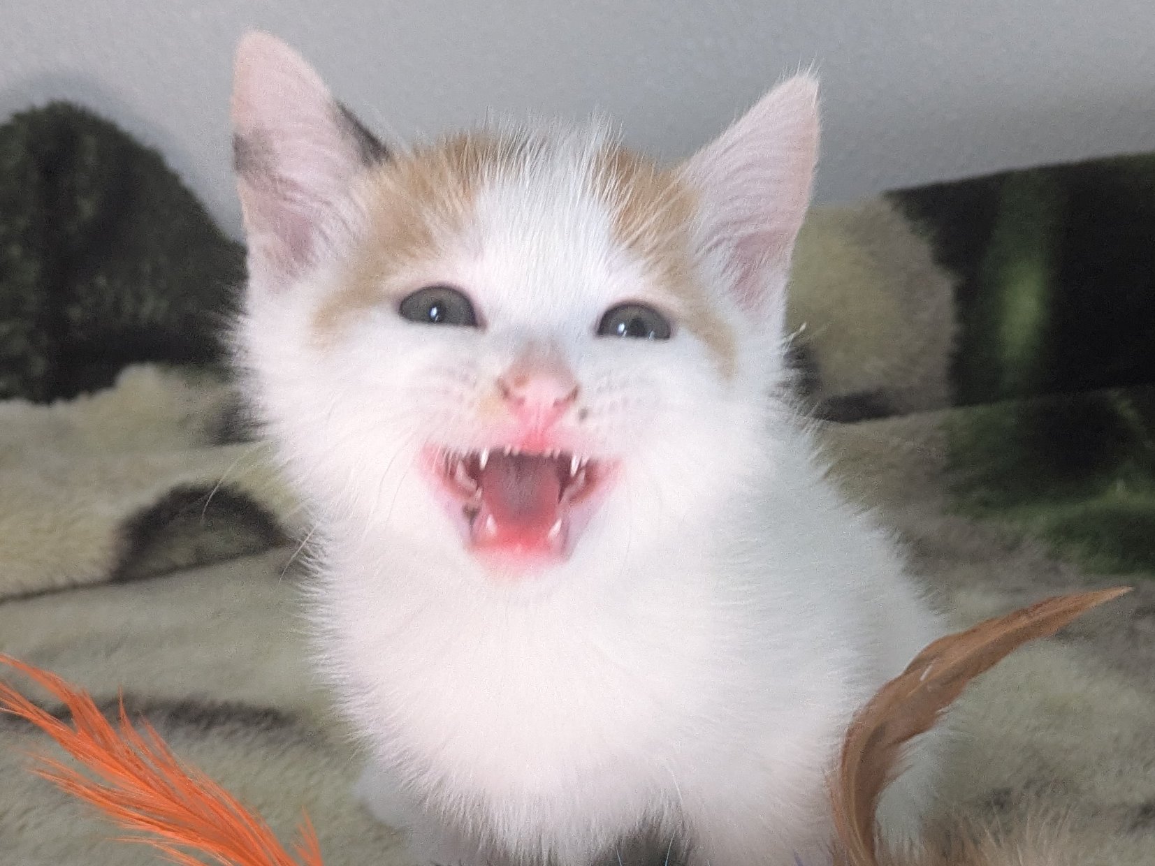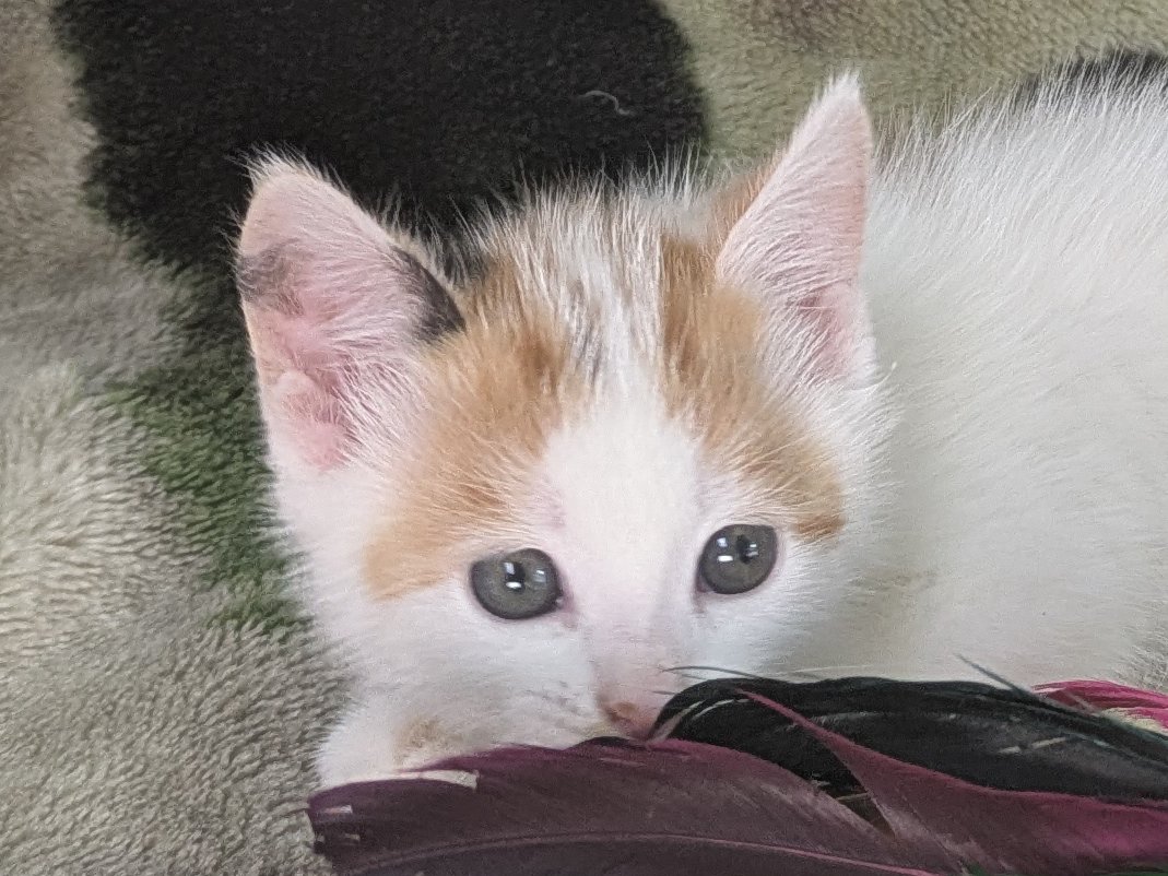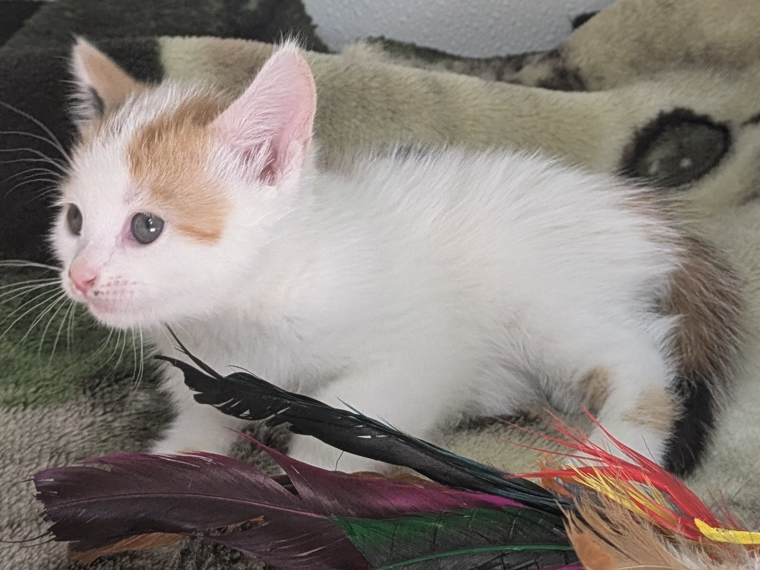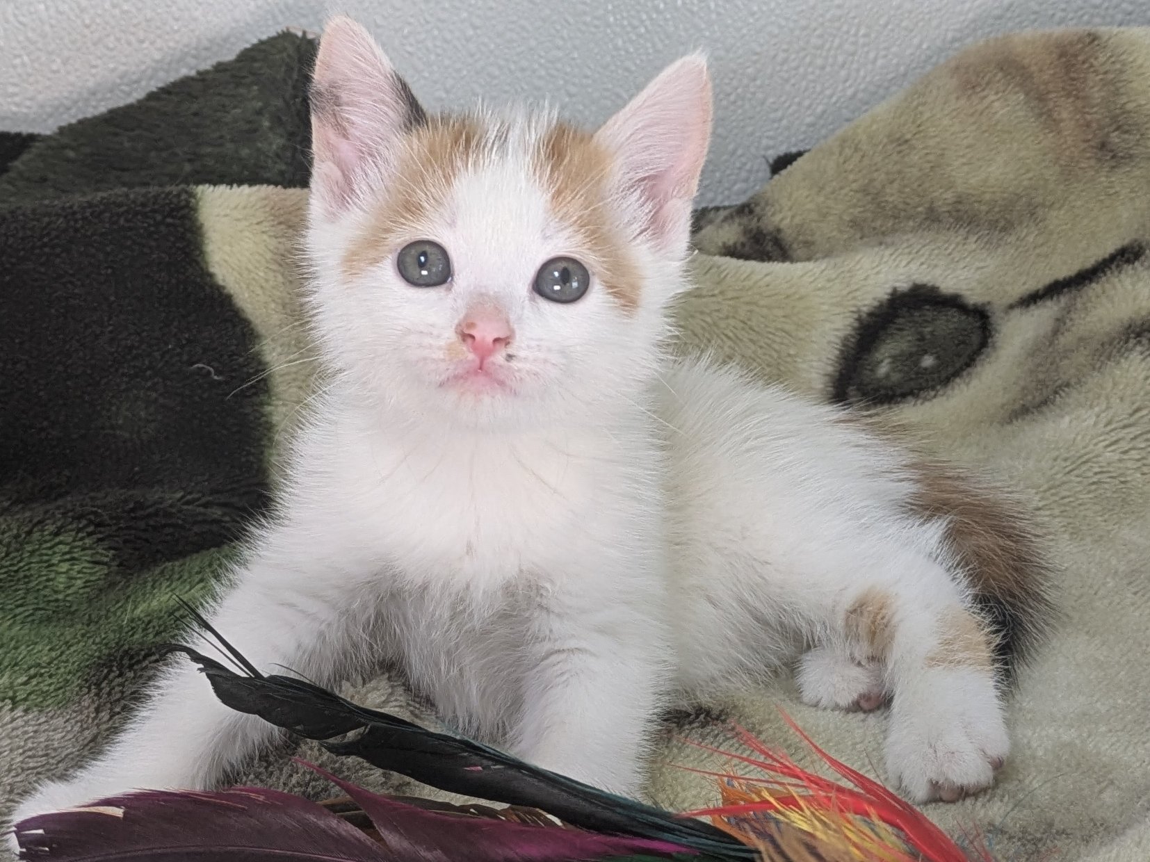 Please do not call the shelter; do the application first. Introducing the Green litter of kittens. These sweet babies were born at the shelter on 8/31/25 to Kalispell (also up for adoption), and will be ready to go home in mid-November. This litter includes: BASIL - female calico, mix of black and orange on either side of face (ADOPTION PENDING) PINE - female calico, symmetrical orange wings on either side of face FOREST - female black & white, black triangle in center of face, thin white forehead stripe (ADOPTION PENDING) MINT - male black & white, many black asymmetric splotches on face, most outgoing (ADOPTION PENDING) OLIVE - female black & white, tiny black mustache & goatee, sweet and sensitive (ADOPTION PENDING) They are just starting to get used to some time away from mama, and are slowly developing their purrrrsonalities. So far, we know that Mint is the Steve Martin of the bunch - a "wild and crazy guy" - while his sisters are a little bit more cautious about leaping into new situations. All should adapt quickly to their new homes and families, and will make terrific companions. They are young enough to learn about dogs and other cats, too! We'd love to see all kittens go to homes that have another young, playful kitten, or to send 2 of them out as a pair (which gives you a great pair discount rate), but we do not require pair adoptions. If you prefer to adopt just one, and you don't have a similarly aged kitten at home already, please read our information on Single Kitten Syndrome. Then, when you apply for a single kitten, please let us know in the "Comments" field how you plan to deal with the "kitten crazies." All pets arrive spayed/neutered, dewormed, microchipped and vaccinated. Adoption fee for Pine is a suggested minimum of $75 (more gratefully accepted). All pets are placed with a 30-day money-back trial period, to give pet and family enough time to discover any unknown allergies or other conflicts. Can't come to Republic? Don't let that stop you! We have monthly transports to the Seattle area, delivering adopted pets to their new owners. If you can add a little to your donation to help us cover our volunteer driver's expenses, that would be great!