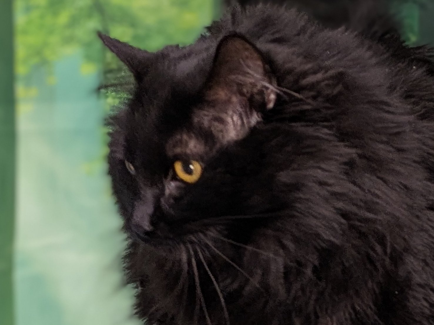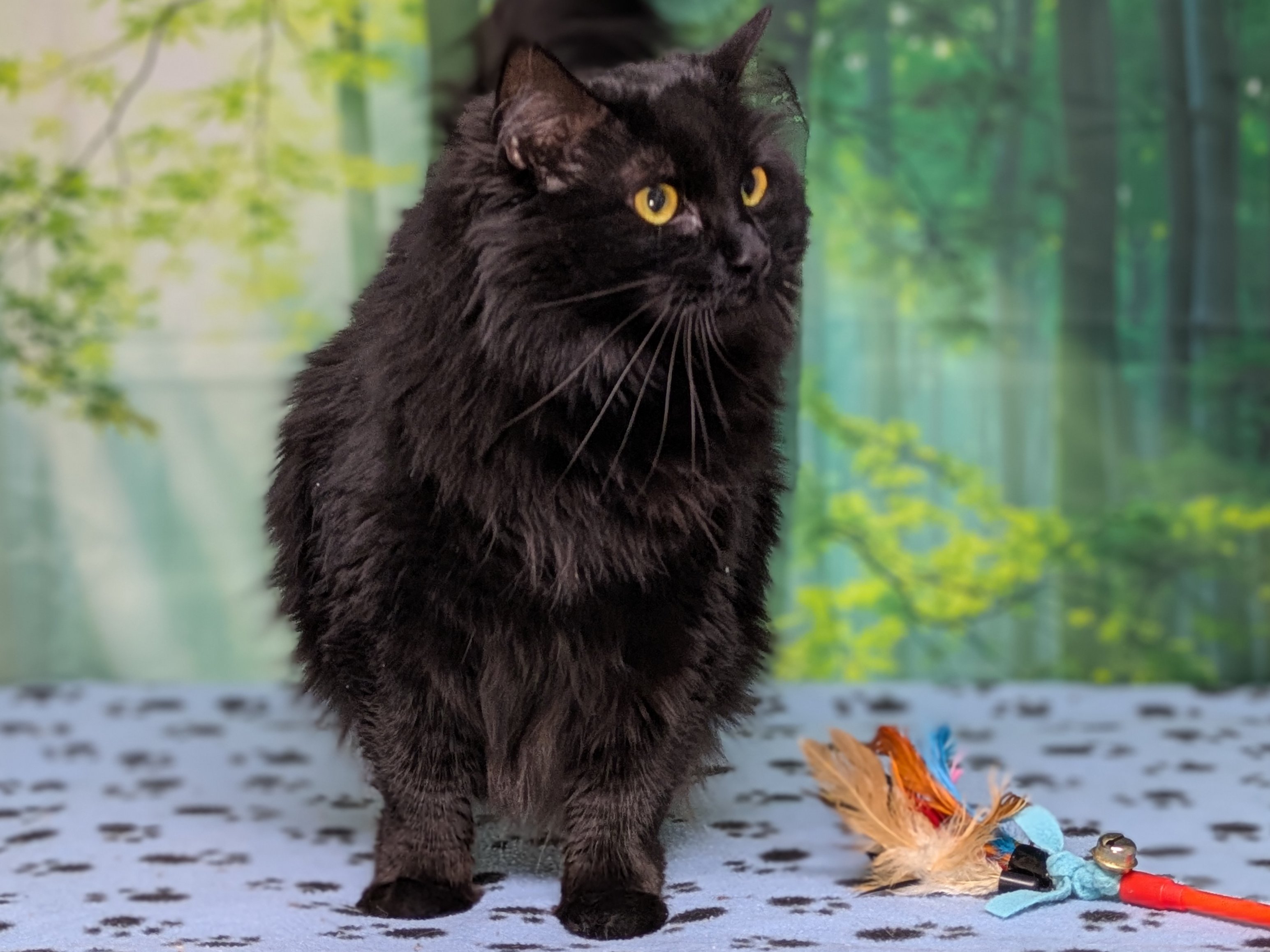 Please do not call the shelter; do the application first. Meet Izzy, a stunning 2 ½ year old cat with a very fluffy coat and beautiful golden eyes that will instantly capture your heart. She weighs a chonky but healthy 14 pounds and absolutely loves attention; Izzy thrives when she's getting plenty of affection and pets. Izzy gets along well with cats and is okay with dogs, though she can be a little scared of them initially—so a slow, gentle introduction would help her feel more comfortable. We don't have details on how she interacts with children, but her sweet nature indicates she should do just fine with them. Her luxurious fluffy coat is one of her best features, and she'll need regular brushing to keep it looking its best and to prevent mats. She can also be a bit picky when it comes to toys, so finding just the right ones to keep her entertained might take a little trial and error. We are still in the TRIAL part of that equation. If you're ready to welcome a loving, fluffy companion with mesmerizing golden eyes into your life, Izzy is waiting to shower you with affection and become your cozy cuddle buddy. All pets arrive spayed/neutered, dewormed, microchipped and vaccinated. Adoption fee for Izzy is a suggested minimum of $50 (more gratefully accepted). All pets are placed with a 30-day money-back trial period, to give pet and family enough time to discover any unknown allergies or other conflicts. Can't come to Republic? Don't let that stop you! We have monthly transports to the Seattle area, delivering adopted pets to their new owners. If you can add a little to your donation to help us cover our volunteer driver's expenses, that would be great!