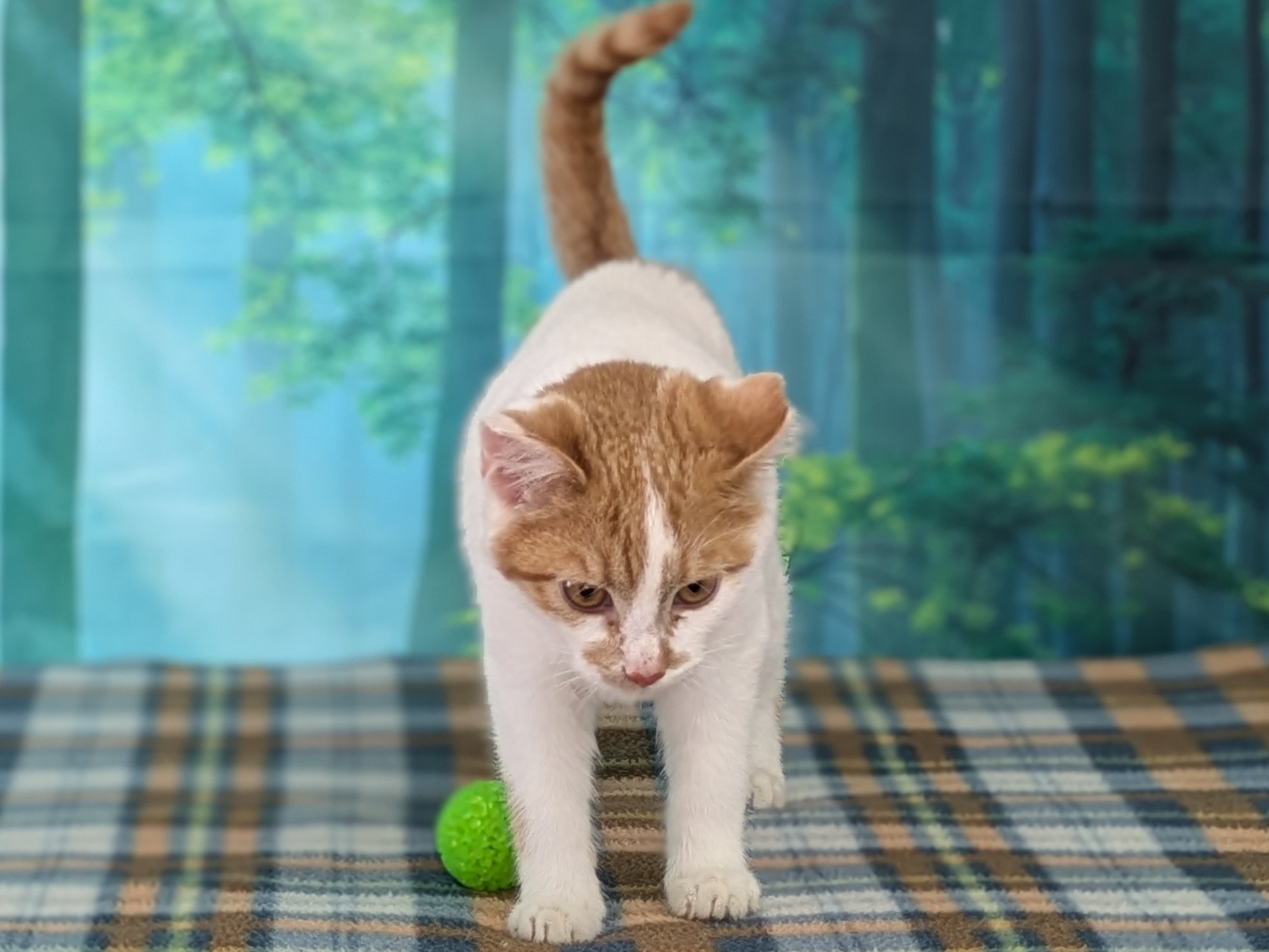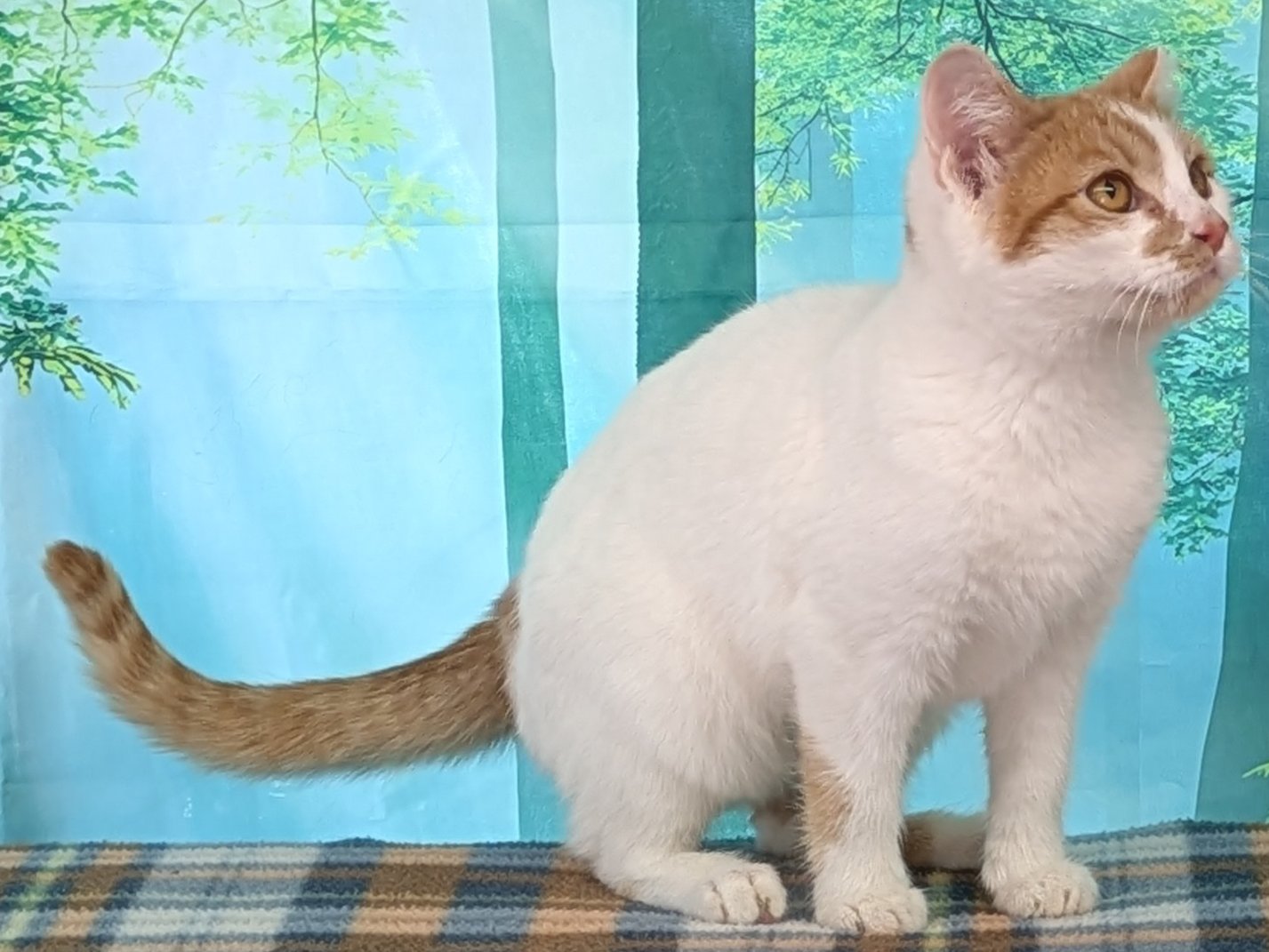 Please do not call the shelter; do the application first. Introducing the Winter Drinks litter - a late 2025 litter of kittens, born about 10/2/25 and rescued during a Trap-Neuter-Return operation on a local feral colony. These three brothers were spared from being returned to live out their lives as part of their feral colony when they showed us their playful, ready-to-accept-humans sides! We are relieved that they have proven to be FAMILY QUALITY rather than as wild as a band of hyped-up raccoons, because their coloring is not conducive to a long life as a feral cat. Instead, these boys get to become beloved family members, YAY! They have a fair dose of caution in their makeup, so may take a little extra time to fully adapt to new people and places, but give them a fun toy and a taste of a Churu treat, and they turn into lap kittens quickly. They are easier to tell apart than you think: CHAI - the most white - almost his entire body is white except for his head and tail TODDY - the most orange - nearly his entire left side of his body is orange EGGNOG - the in-between brother, white with orange splotches here and there! See if you can tell them apart in their video, while you try to decide if you want to bring one home... or two... or all three! They are young enough that they should adapt fine to existing pets, with proper introductions. We'd love to see all kittens go to homes that have another young, playful kitten, or to send 2 of them out as a pair (which gives you a great pair discount rate), but we do not require pair adoptions. If you prefer to adopt just one, and you don't have a similarly aged kitten at home already, please read our information on Single Kitten Syndrome. Then, when you apply for a single kitten, please let us know in the "Comments" field how you plan to deal with the "kitten crazies." All pets arrive spayed/neutered, dewormed, microchipped and vaccinated. Adoption fee for Chai is a suggested minimum of $75 (more gratefully accepted). All pets are placed with a 30-day money-back trial period, to give pet and family enough time to discover any unknown allergies or other conflicts. Can't come to Republic? Don't let that stop you! We have monthly transports to the Seattle area, delivering adopted pets to their new owners. If you can add a little to your donation to help us cover our volunteer driver's expenses, that would be great!