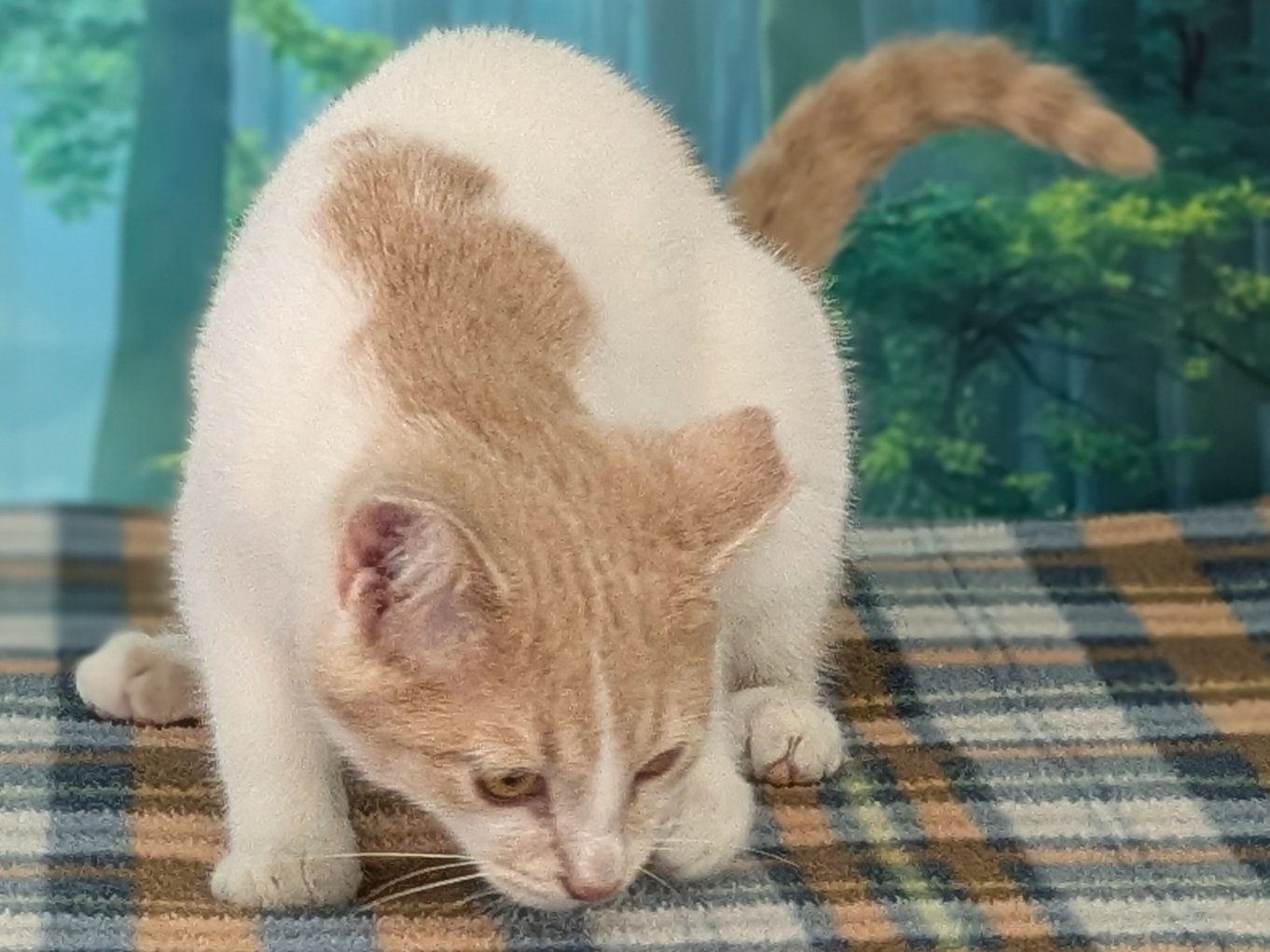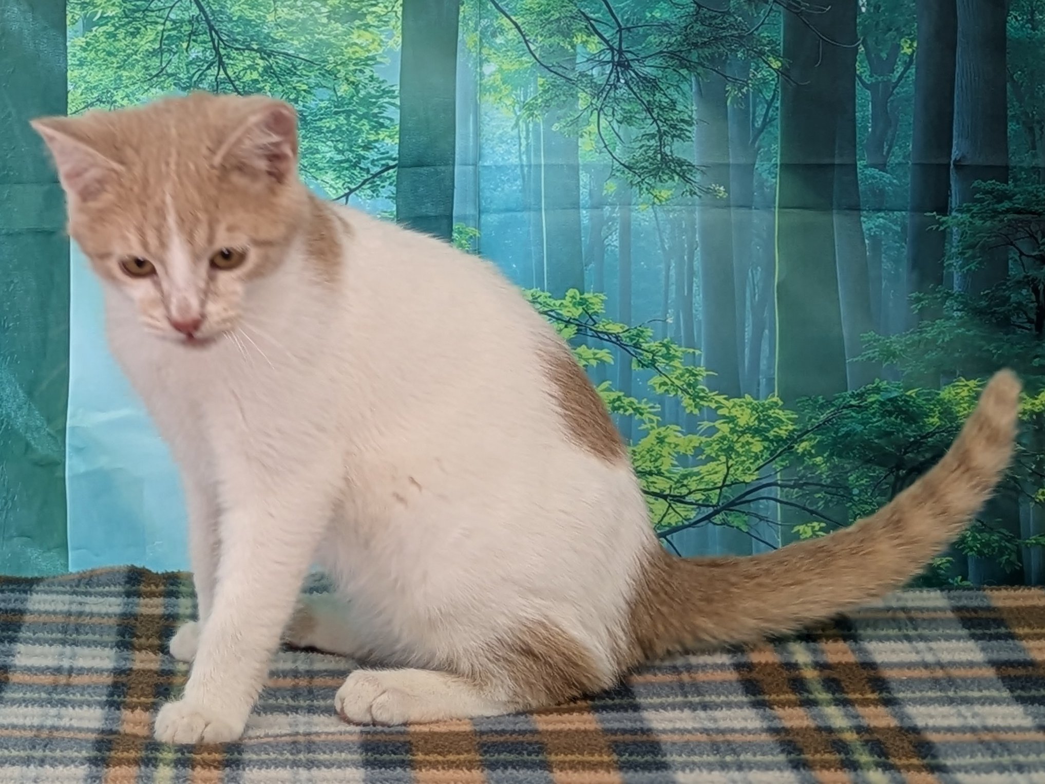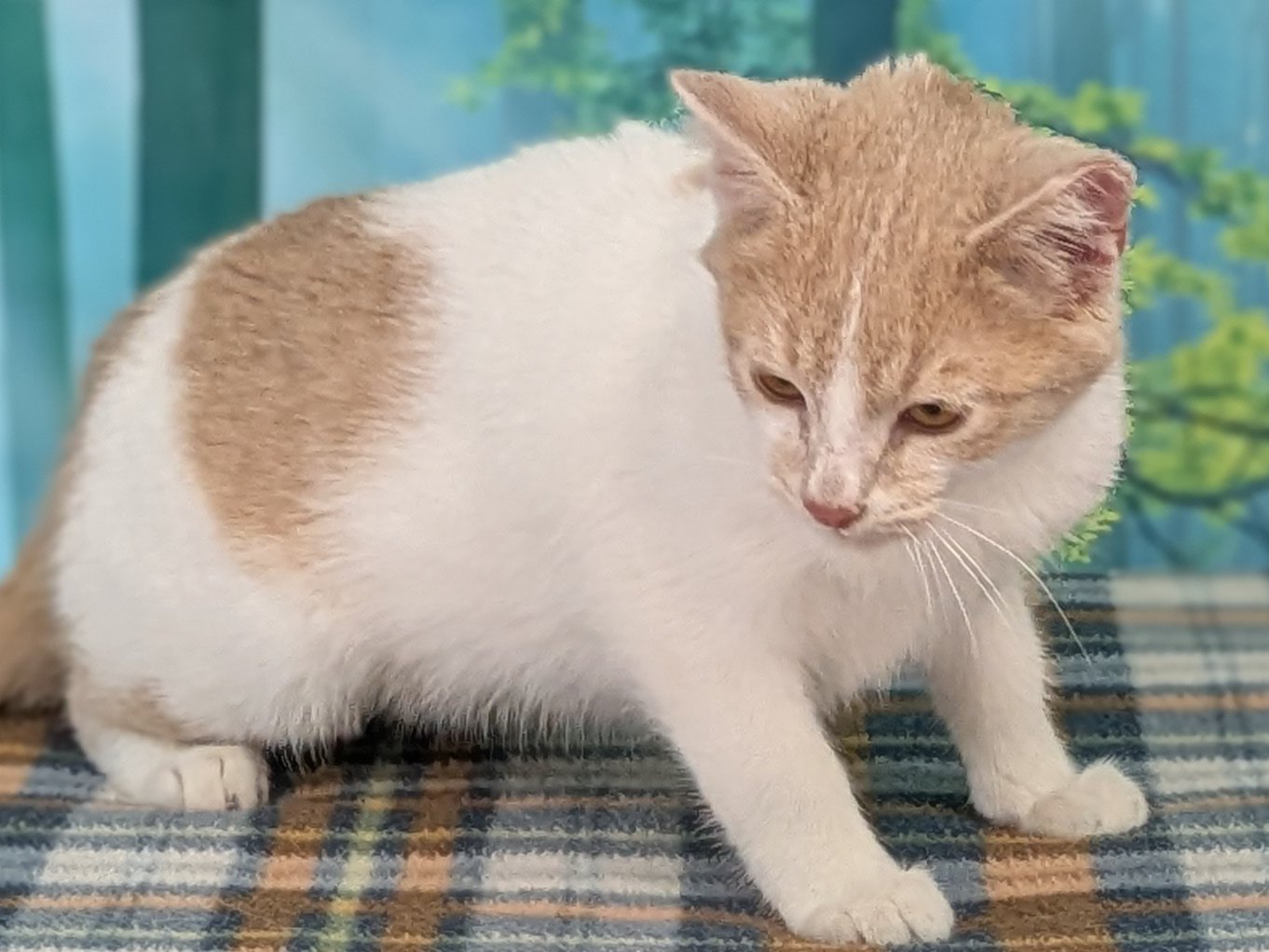 Please do not call the shelter; do the application first. Introducing the Winter Drinks litter - a late 2025 litter of kittens, born about 10/2/25 and rescued during a Trap-Neuter-Return operation on a local feral colony. These three brothers were spared from being returned to live out their lives as part of their feral colony when they showed us their playful, ready-to-accept-humans sides! We are relieved that they have proven to be FAMILY QUALITY rather than as wild as a band of hyped-up raccoons, because their coloring is not conducive to a long life as a feral cat. Instead, these boys get to become beloved family members, YAY! They have a fair dose of caution in their makeup, so may take a little extra time to fully adapt to new people and places, but give them a fun toy and a taste of a Churu treat, and they turn into lap kittens quickly. They are easier to tell apart than you think: CHAI - the most white - almost his entire body is white except for his head and tail TODDY - the most orange - nearly his entire left side of his body is orange EGGNOG - the in-between brother, white with orange splotches here and there! See if you can tell them apart in their video, while you try to decide if you want to bring one home... or two... or all three! They are young enough that they should adapt fine to existing pets, with proper introductions. We'd love to see all kittens go to homes that have another young, playful kitten, or to send 2 of them out as a pair (which gives you a great pair discount rate), but we do not require pair adoptions. If you prefer to adopt just one, and you don't have a similarly aged kitten at home already, please read our information on Single Kitten Syndrome. Then, when you apply for a single kitten, please let us know in the "Comments" field how you plan to deal with the "kitten crazies." All pets arrive spayed/neutered, dewormed, microchipped and vaccinated. Adoption fee for Eggnog is a suggested minimum of $75 (more gratefully accepted). All pets are placed with a 30-day money-back trial period, to give pet and family enough time to discover any unknown allergies or other conflicts. Can't come to Republic? Don't let that stop you! We have monthly transports to the Seattle area, delivering adopted pets to their new owners. If you can add a little to your donation to help us cover our volunteer driver's expenses, that would be great!