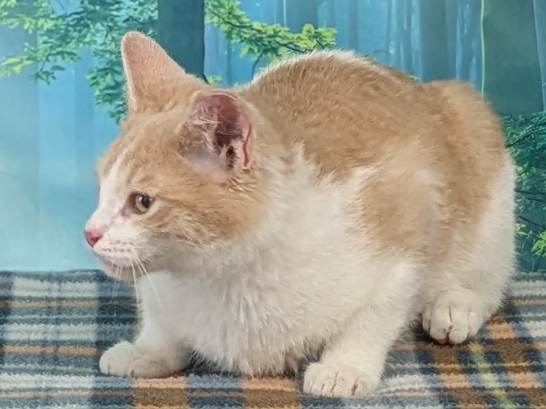 Please do not call the shelter; do the application first. Introducing the Winter Drinks litter - a late 2025 litter of kittens, born about 10/2/25 and rescued during a Trap-Neuter-Return operation on a local feral colony. These three brothers were spared from being returned to live out their lives as part of their feral colony when they showed us their playful, ready-to-accept-humans sides! We are relieved that they have proven to be FAMILY QUALITY rather than as wild as a band of hyped-up raccoons, because their coloring is not conducive to a long life as a feral cat. Instead, these boys get to become beloved family members, YAY! They have a fair dose of caution in their makeup, so may take a little extra time to fully adapt to new people and places, but give them a fun toy and a taste of a Churu treat, and they turn into lap kittens quickly. They are easier to tell apart than you think: CHAI - the most white - almost his entire body is white except for his head and tail TODDY - the most orange - nearly his entire left side of his body is orange EGGNOG - the in-between brother, white with orange splotches here and there! See if you can tell them apart in their video, while you try to decide if you want to bring one home... or two... or all three! They are young enough that they should adapt fine to existing pets, with proper introductions. We'd love to see all kittens go to homes that have another young, playful kitten, or to send 2 of them out as a pair (which gives you a great pair discount rate), but we do not require pair adoptions. If you prefer to adopt just one, and you don't have a similarly aged kitten at home already, please read our information on Single Kitten Syndrome. Then, when you apply for a single kitten, please let us know in the "Comments" field how you plan to deal with the "kitten crazies." All pets arrive spayed/neutered, dewormed, microchipped and vaccinated. Adoption fee for Toddy is a suggested minimum of $75 (more gratefully accepted). All pets are placed with a 30-day money-back trial period, to give pet and family enough time to discover any unknown allergies or other conflicts. Can't come to Republic? Don't let that stop you! We have monthly transports to the Seattle area, delivering adopted pets to their new owners. If you can add a little to your donation to help us cover our volunteer driver's expenses, that would be great!