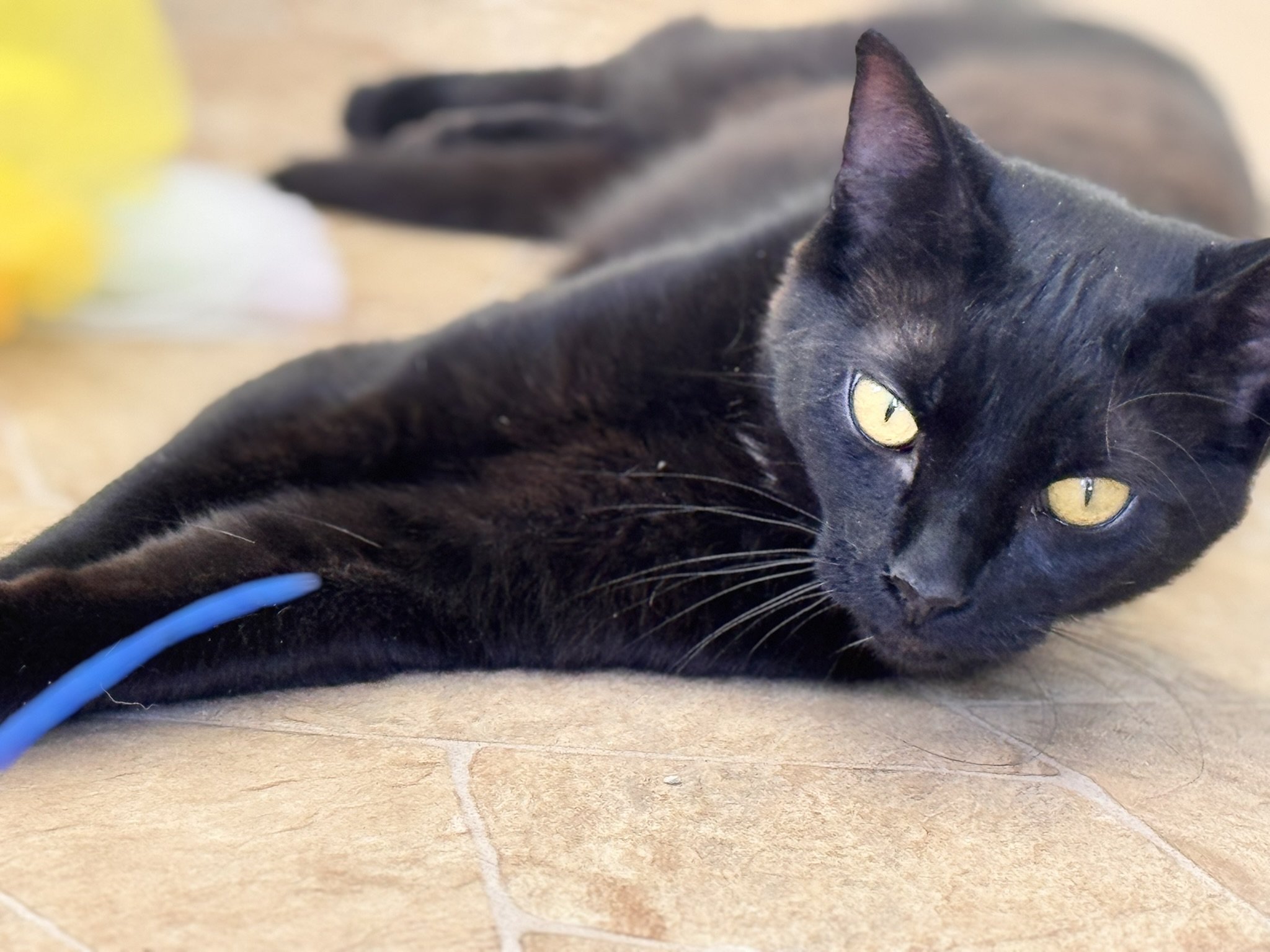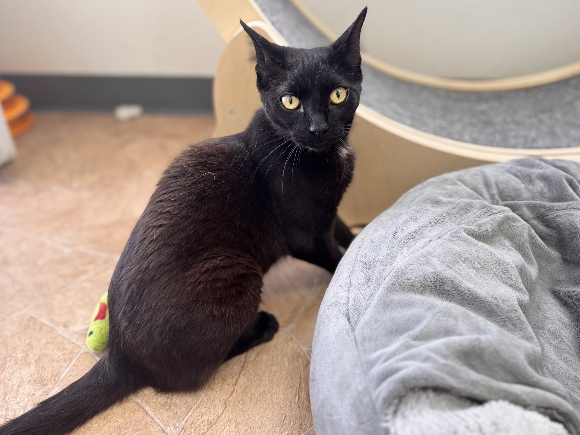 Please do not call the shelter; do the application first. Meet Tux-The Toy Thieving Comedian in a sleek Black Suit Tux, just over a year old, is one of those cats who’ll have you laughing daily without even trying. With his shiny black coat and big personality, he’s equal parts sleek and silly. His favorite game? Stealing whatever toy you’re playing with and turning it into a full on tug-of-war showdown. (Spoiler: he usually wins.) He’s not big on cuddling or sitting in laps, but Tux does enjoy affection and is always happy to lean in for a good round of pets. When he’s in play mode, he’s a total goofball, leaping, pouncing, and cracking you up with his antics. Tux also has a natural hunter’s drive and would probably thrive in a home where he can exercise those instincts (or chase the occasional fly for sport). He’s curious, clever, and full of charm. He has some food sensitivities and is thriving on Purina One Sensitive Skin and Stomach food; we recommend keeping him on a sensitive stomach diet to keep his at his best! Tux is great with other cats and should be able to adapt to a cat-friendly dog (we can test him for you if you like). If you’re looking for a smart, independent cat with a hilarious streak and a heart full of low key sweetness, Tux is your guy. All pets arrive spayed/neutered, dewormed, microchipped and vaccinated. Adoption fee for Tux is a suggested minimum of $50 (more gratefully accepted). All pets are placed with a 30-day money-back trial period, to give pet and family enough time to discover any unknown allergies or other conflicts. Can't come to Republic? Don't let that stop you! We have monthly transports to the Seattle area, delivering adopted pets to their new owners. If you can add a little to your donation to help us cover our volunteer driver's expenses, that would be great!