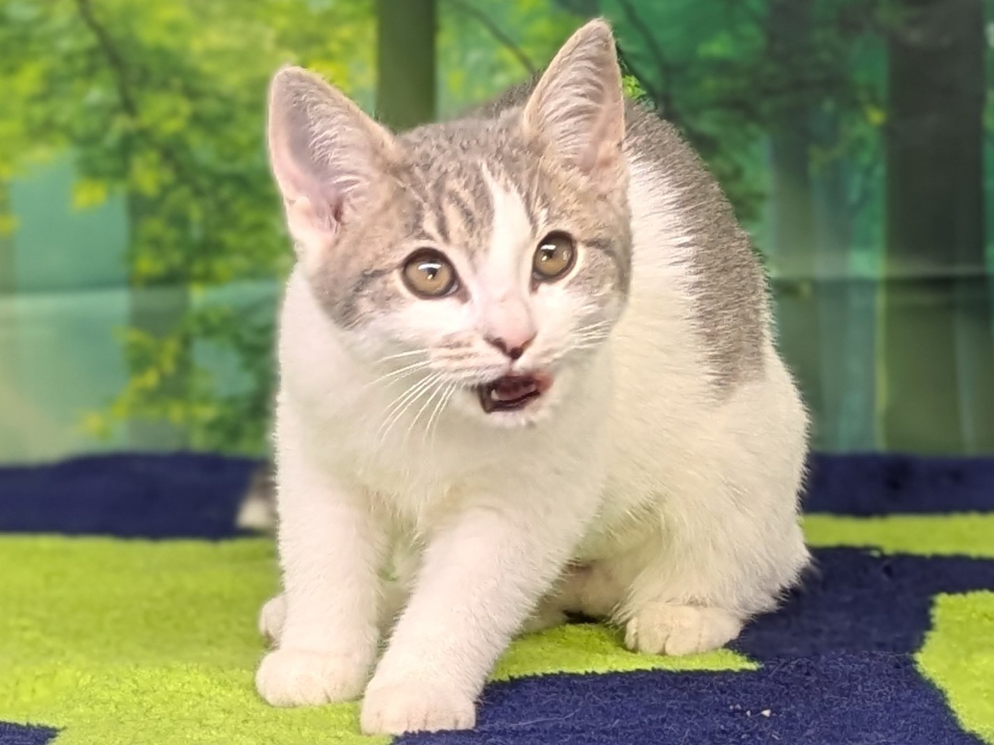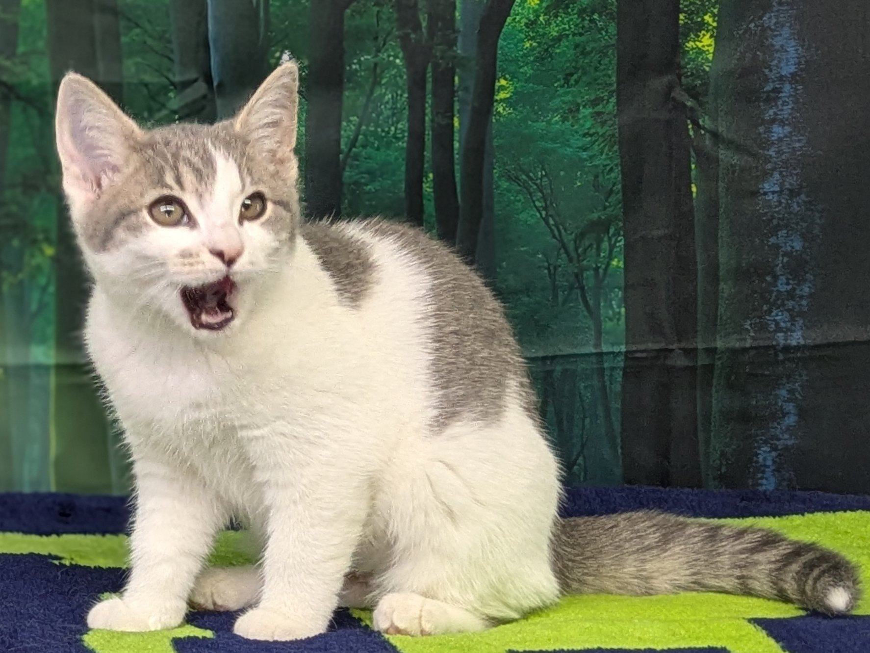 Please do not call the shelter; do the application first. Introducing the Mexican Food litter! These cuties were born about 8/20/25, and came to Forget Me Not as part of a trap-neuter-return operation on a feral colony. These five were just too friendly for colony life, so they get the opportunity to become beloved family members! This group includes: FAJITA - female brown tabby with white, playful and outgoing CHIMICHANGA - male grey tabby, playful and outgoing CARNE - male white with tabby patches, one blue eye, one green eye, fostering with Margarita for socialization - currently shy with strangers, no video yet MARGARITA - female white with light grey tabby patches, fostering with Carne for socialization - currently shy with strangers, no video yet PICO - male brown tabby with white, slightly shy with strangers Video Coming Soon We'd love to see all kittens go to homes that have another young, playful kitten, or to send 2 of them out as a pair (which gives you a great pair discount rate), but we do not require pair adoptions. If you prefer to adopt just one, and you don't have a similarly aged kitten at home already, please read our information on Single Kitten Syndrome. Then, when you apply for a single kitten, please let us know in the "Comments" field how you plan to deal with the "kitten crazies." All pets arrive spayed/neutered, dewormed, microchipped and vaccinated. Adoption fee for Margarita is a suggested minimum of $75 (more gratefully accepted). All pets are placed with a 30-day money-back trial period, to give pet and family enough time to discover any unknown allergies or other conflicts. Can't come to Republic? Don't let that stop you! We have monthly transports to the Seattle area, delivering adopted pets to their new owners. If you can add a little to your donation to help us cover our volunteer driver's expenses, that would be great!