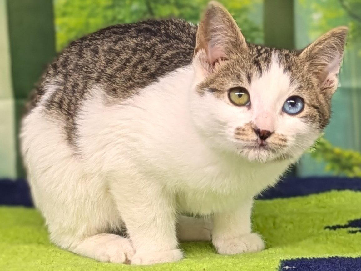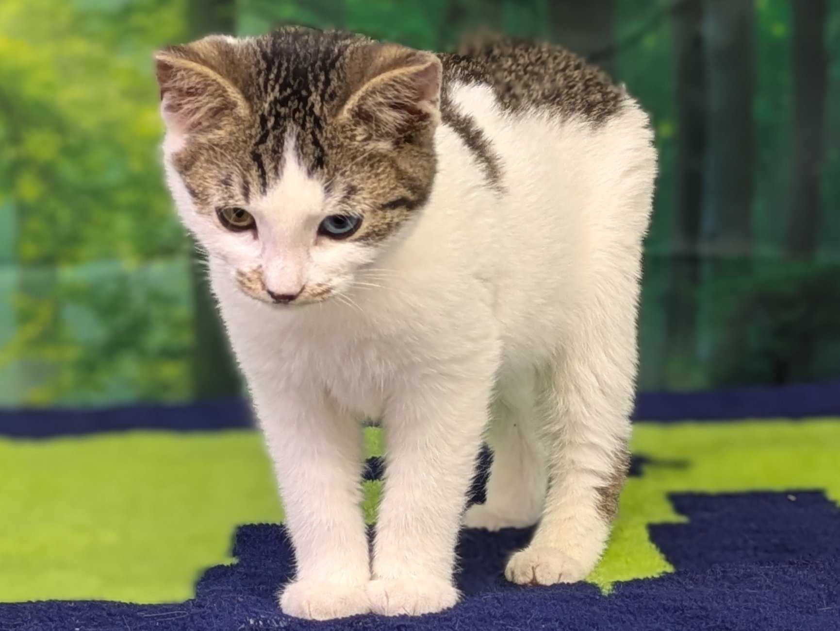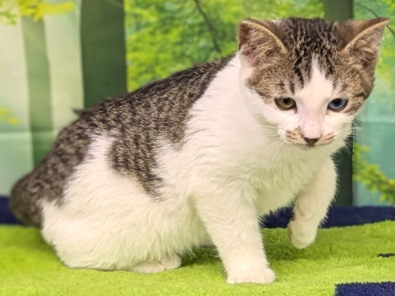 Please do not call the shelter; do the application first. Introducing the Mexican Food litter! These cuties were born about 8/20/25, and came to Forget Me Not as part of a trap-neuter-return operation on a feral colony. These five were just too friendly for colony life, so they get the opportunity to become beloved family members! This group includes: FAJITA - female brown tabby with white, playful and outgoing CHIMICHANGA - male grey tabby, playful and outgoing CARNE - male white with tabby patches, one blue eye, one green eye, fostering with Margarita for socialization - currently shy with strangers, no video yet MARGARITA - female white with light grey tabby patches, fostering with Carne for socialization - currently shy with strangers, no video yet PICO - male brown tabby with white, slightly shy with strangers Video Coming Soon We'd love to see all kittens go to homes that have another young, playful kitten, or to send 2 of them out as a pair (which gives you a great pair discount rate), but we do not require pair adoptions. If you prefer to adopt just one, and you don't have a similarly aged kitten at home already, please read our information on Single Kitten Syndrome. Then, when you apply for a single kitten, please let us know in the "Comments" field how you plan to deal with the "kitten crazies." All pets arrive spayed/neutered, dewormed, microchipped and vaccinated. Adoption fee for Carne is a suggested minimum of $75 (more gratefully accepted). All pets are placed with a 30-day money-back trial period, to give pet and family enough time to discover any unknown allergies or other conflicts. Can't come to Republic? Don't let that stop you! We have monthly transports to the Seattle area, delivering adopted pets to their new owners. If you can add a little to your donation to help us cover our volunteer driver's expenses, that would be great!