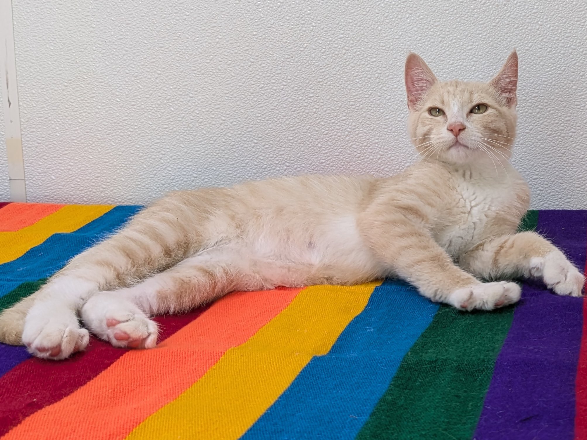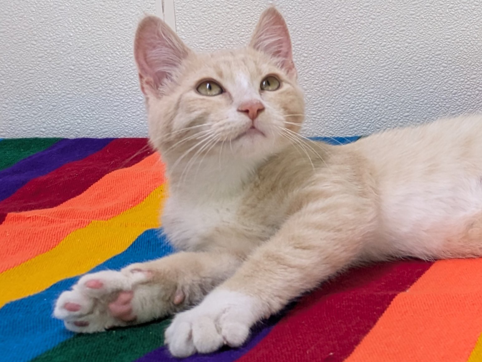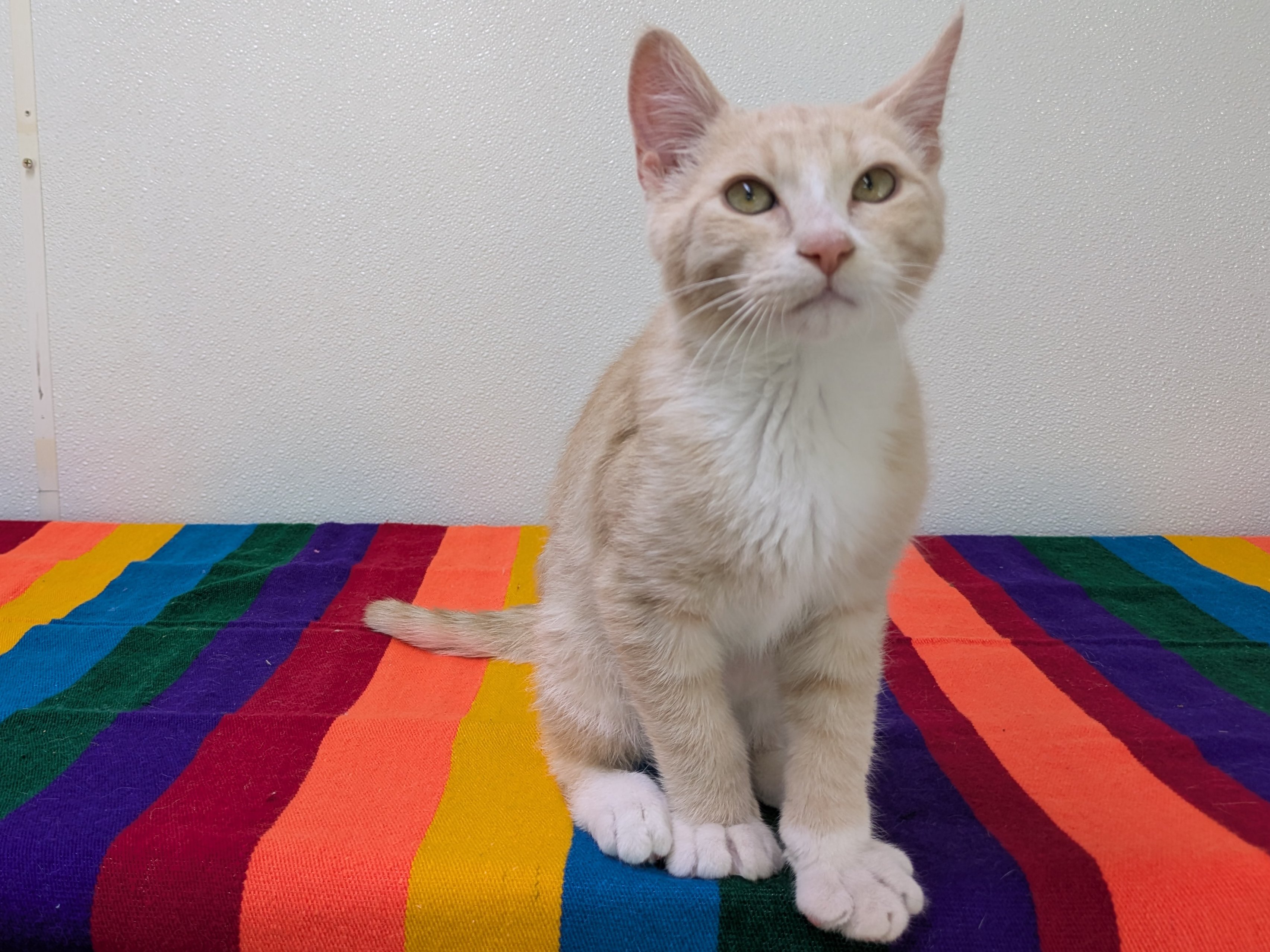 Please do not call the shelter; do the application first. We have three wonderful boys left in our Orange Litter, born 6/3/25: BUTTERSCOTCH - male buff tabby MAPLE - male buff tabby with white CARROT - male orange tabby with white This group is very playful and fun, and should fit in well with pretty much any type of family. Maple is a little bit more reserved than the others, and would prefer a calmer household with no toddler birthday parties. For the others... whatever chaos you may invite, they say "bring. it. on." We'd love to see all kittens go to homes that have another young, playful kitten, or to send 2 of them out as a pair (which gives you a great pair discount rate), but we do not require pair adoptions. If you prefer to adopt just one, and you don't have a similarly aged kitten at home already, please read our information on Single Kitten Syndrome. Then, when you apply for a single kitten, please let us know in the "Comments" field how you plan to deal with the "kitten crazies." All pets arrive spayed/neutered, dewormed, microchipped and vaccinated. Adoption fee for Maple is a suggested minimum of $75 (more gratefully accepted). All pets are placed with a 30-day money-back trial period, to give pet and family enough time to discover any unknown allergies or other conflicts. Can't come to Republic? Don't let that stop you! We have monthly transports to the Seattle area, delivering adopted pets to their new owners. If you can add a little to your donation to help us cover our volunteer driver's expenses, that would be great!