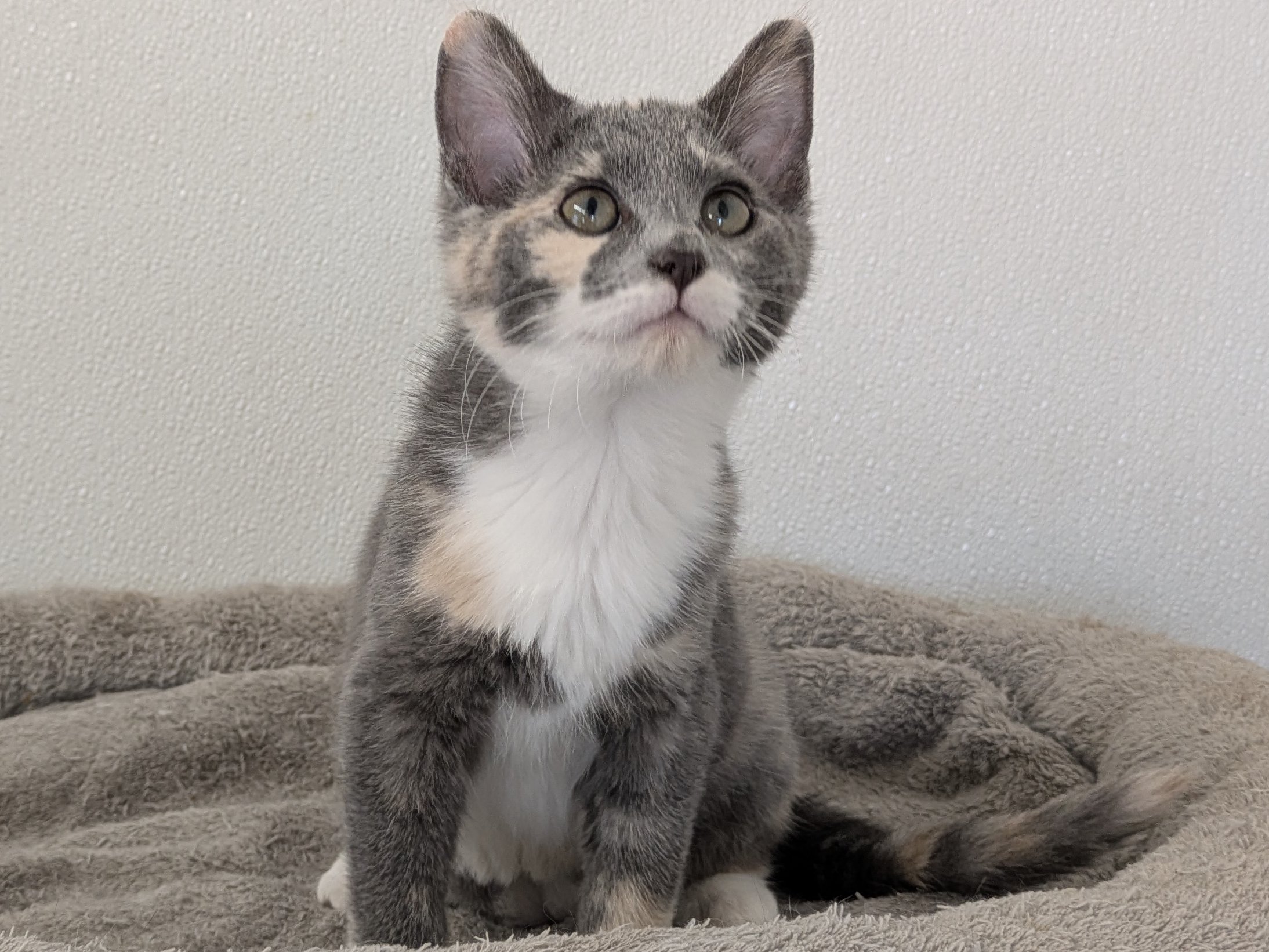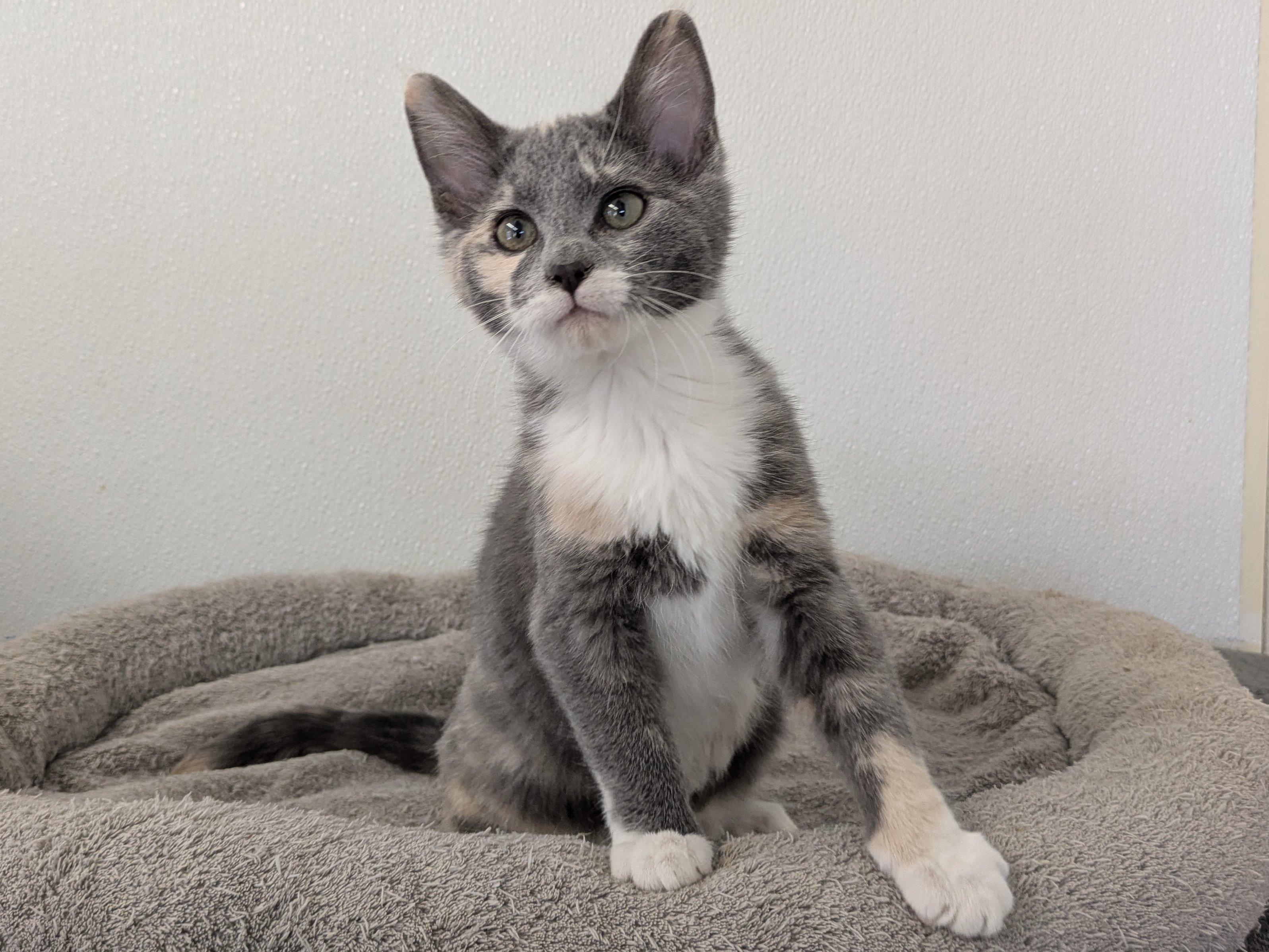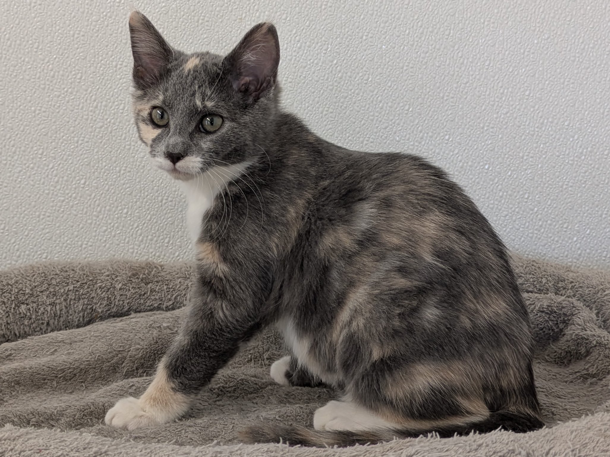 Please do not call the shelter; do the application first. This summer, Forget Me Not took on a major Trap-Neuter-Return (TNR) project involving nearly 100 cats and kittens. Thankfully, many of the youngest kittens were friendly and full of potential — perfect candidates for our Happy Homes Adoption Program! These little ones are now safe, thriving, and ready to start their new lives in loving forever homes. Because so many similarly aged kittens came in over just a few days of trapping, it’s hard to tell exactly who came from which litter. So, we’ve grouped them by approximate age instead — all the kittens with the "SEE" designation can be mixed and matched for adoption. They’re all sweet, playful, and well-socialized, and they’d love to go home with a buddy (or two!). The first group of “SEE” kittens are estimated to have been born between June 12 and June 18, and they're now ready to meet their forever families. If you're looking for one or a pair of adorable, affectionate kittens to brighten your home, check out our “SEE” crew — your new best friends might be waiting for you! Baby Ruth is a short haired dilute tortoiseshell with white girl, a little cautious with strangers. We'd love to see all kittens go to homes that have another young, playful kitten, or to send 2 of them out as a pair (which gives you a great pair discount rate), but we do not require pair adoptions. If you prefer to adopt just one, and you don't have a similarly aged kitten at home already, please read our information on Single Kitten Syndrome. Then, when you apply for a single kitten, please let us know in the "Comments" field how you plan to deal with the "kitten crazies." All pets arrive spayed/neutered, dewormed, microchipped and vaccinated. Adoption fee for Baby Ruth is a suggested minimum of $75 (more gratefully accepted). All pets are placed with a 30-day money-back trial period, to give pet and family enough time to discover any unknown allergies or other conflicts. Can't come to Republic? Don't let that stop you! We have monthly transports to the Seattle area, delivering adopted pets to their new owners. If you can add a little to your donation to help us cover our volunteer driver's expenses, that would be great!