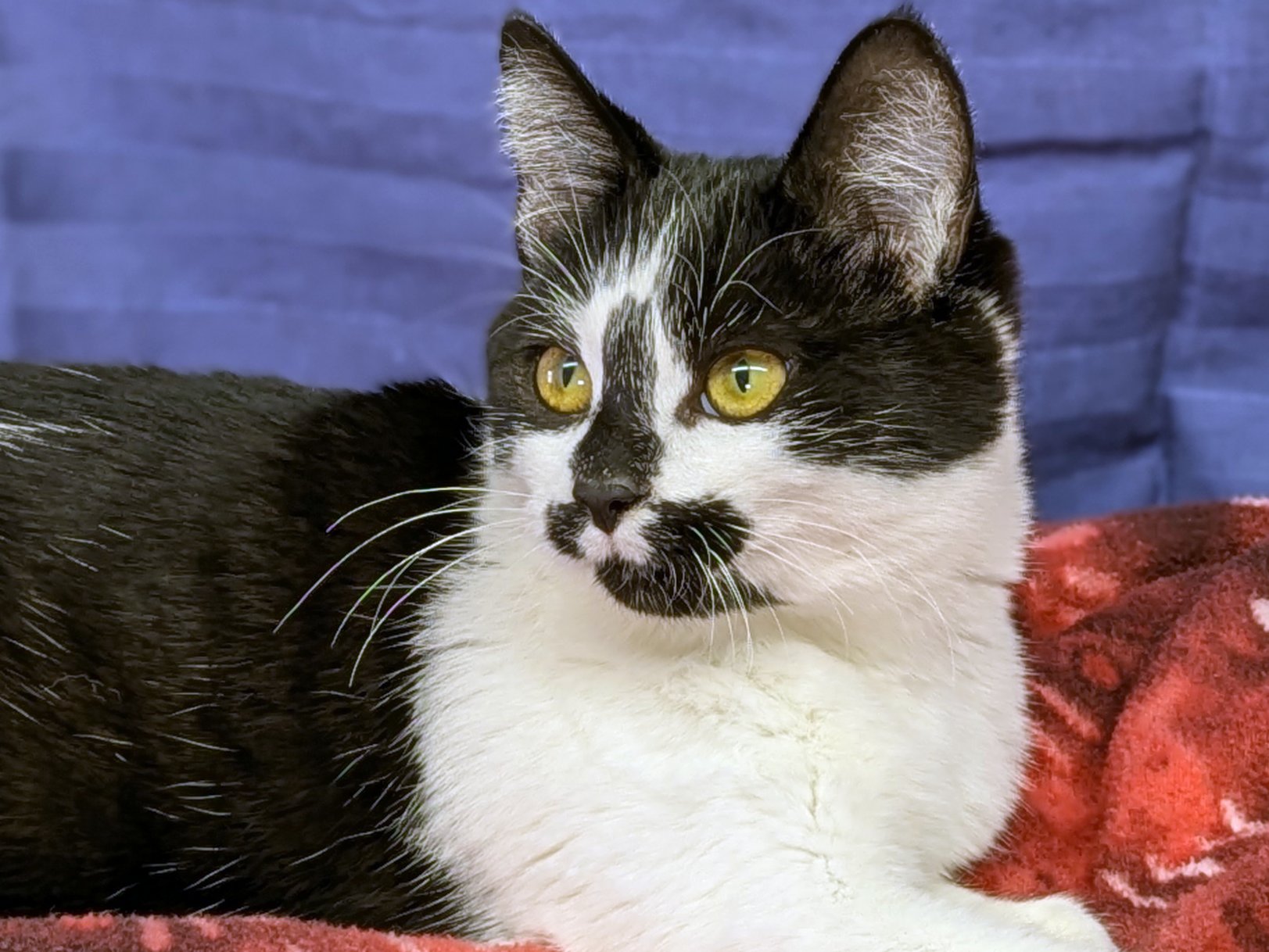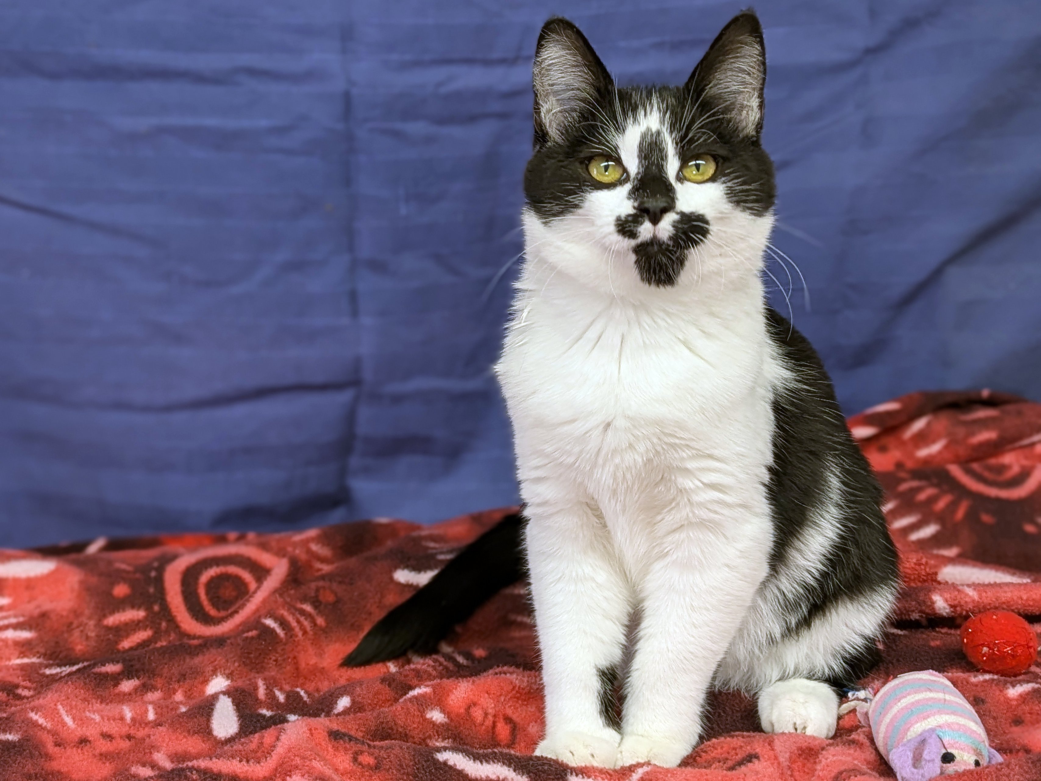 Please do not call the shelter; do the application first. This summer, Forget Me Not took on a major Trap-Neuter-Return (TNR) project involving nearly 100 cats and kittens. Thankfully, many of the youngest kittens were friendly and full of potential — perfect candidates for our Happy Homes Adoption Program! These little ones are now safe, thriving, and ready to start their new lives in loving forever homes. Almond Joy, born about 6/16/25 is a short hair black and white girl. She is very playful, yet still a little hesitant about being picked up/held. She should blossom nicely once she has a stable forever home where she knows she belongs. All pets arrive spayed/neutered, dewormed, microchipped and vaccinated. Adoption fee for Almond Joy is a suggested minimum of $60 (more gratefully accepted). All pets are placed with a 30-day money-back trial period, to give pet and family enough time to discover any unknown allergies or other conflicts. Can't come to Republic? Don't let that stop you! We have monthly transports to the Seattle area, delivering adopted pets to their new owners. If you can add a little to your donation to help us cover our volunteer driver's expenses, that would be great!