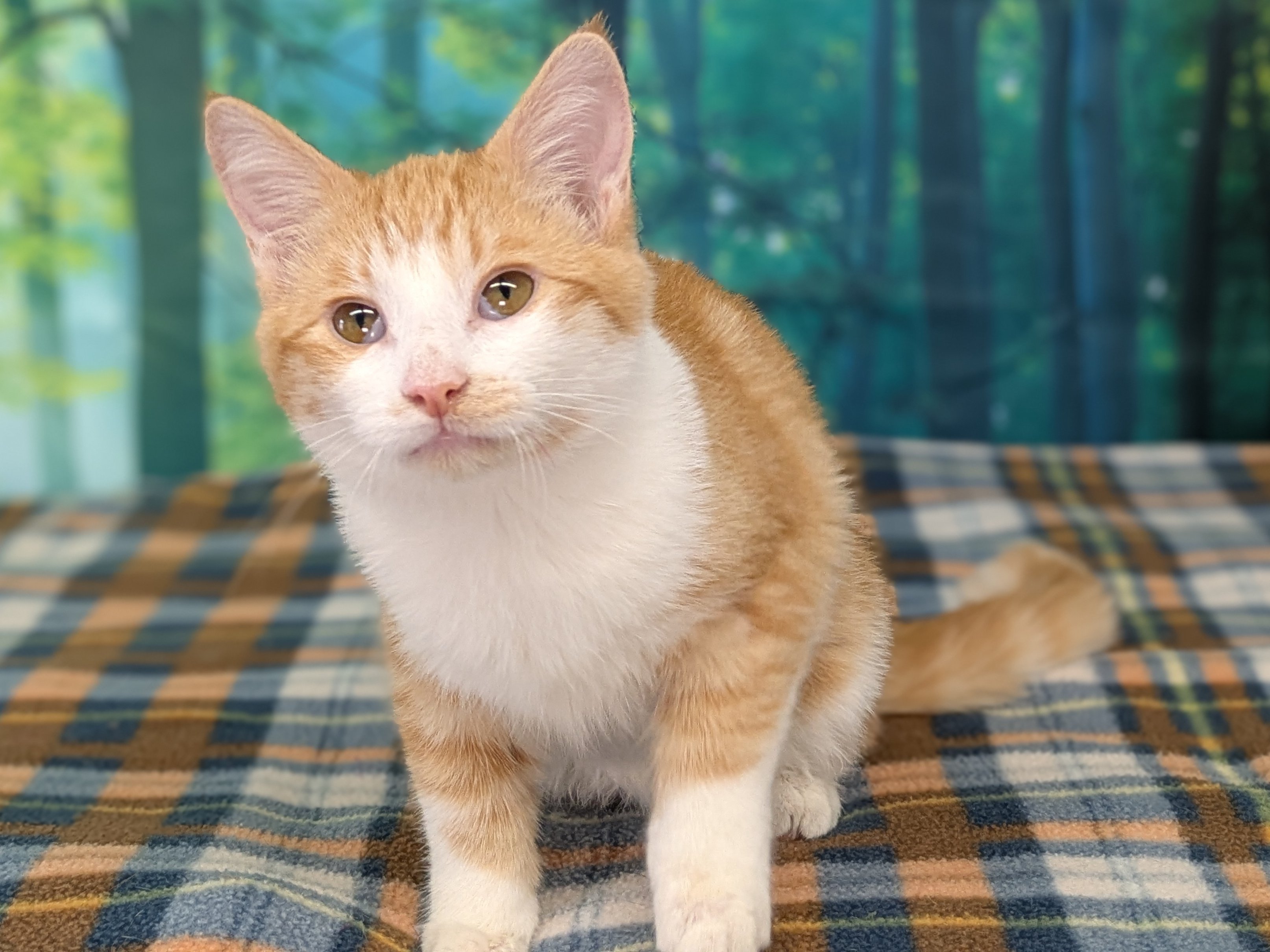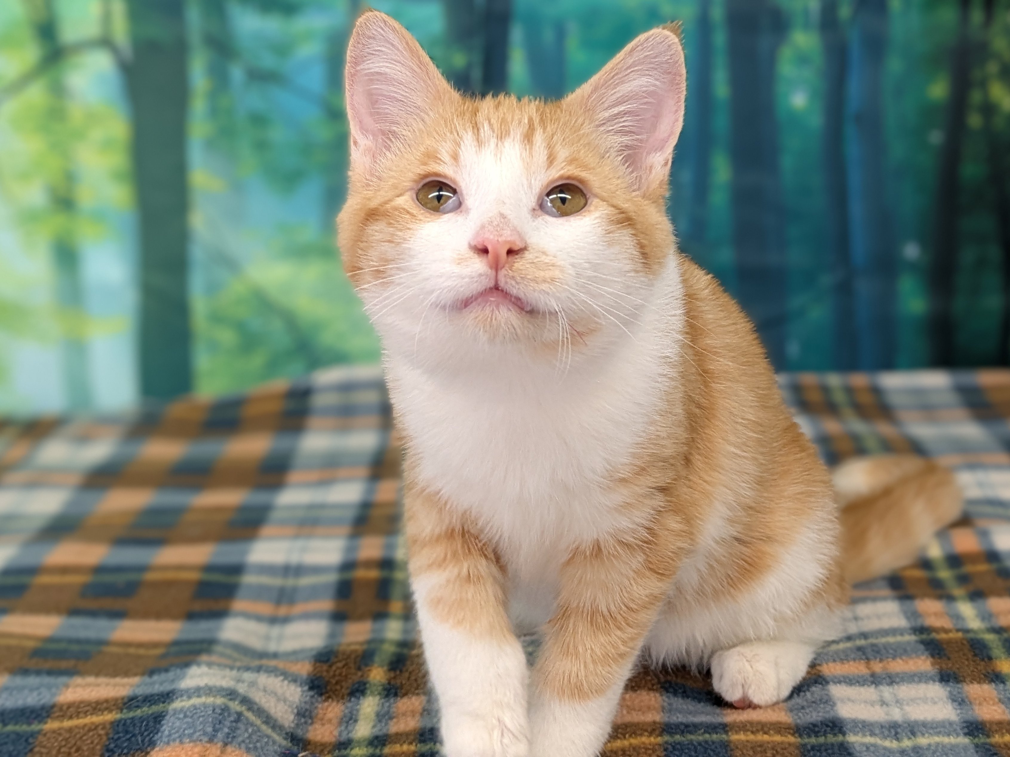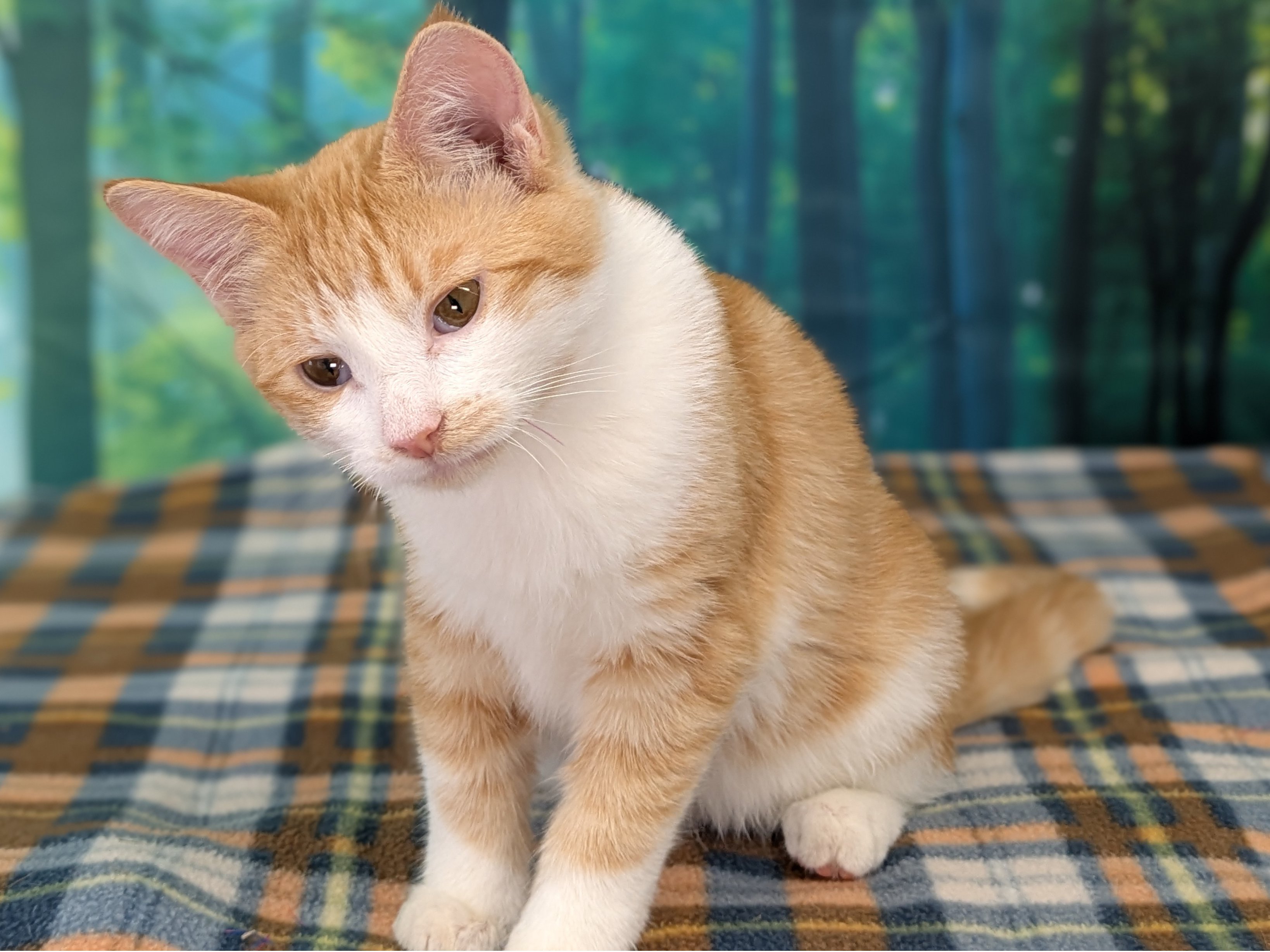 Please do not call the shelter; do the application first. This summer, Forget Me Not took on a major Trap-Neuter-Return (TNR) project involving nearly 100 cats and kittens. Thankfully, many of the youngest kittens were friendly and full of potential — perfect candidates for our Happy Homes Adoption Program! These little ones are now safe, thriving, and ready to start their new lives in loving forever homes. KitKat is a short hair male orange tabby with white, with a 6/18/25 estimated date of birth. He loves feathered cat toys and will grab one and run off with it, so cannot be left unsupervised (feathers can be dangerous if ingested). While you play with him, he will bring you lots of laughs along with ooh-ing and aah-ing at his athleticism. Kit Kat is very social and a little bit domineering with his cat friends when there are toys involved. We'd love to see all kittens go to homes that have another young, playful kitten, or to send 2 of them out as a pair (which gives you a great pair discount rate), but we do not require pair adoptions. If you prefer to adopt just one, and you don't have a similarly aged kitten at home already, please read our information on Single Kitten Syndrome. Then, when you apply for a single kitten, please let us know in the "Comments" field how you plan to deal with the "kitten crazies." All pets arrive spayed/neutered, dewormed, microchipped and vaccinated. Adoption fee for Kit Kat is a suggested minimum of $60 (more gratefully accepted). All pets are placed with a 30-day money-back trial period, to give pet and family enough time to discover any unknown allergies or other conflicts. Can't come to Republic? Don't let that stop you! We have monthly transports to the Seattle area, delivering adopted pets to their new owners. If you can add a little to your donation to help us cover our volunteer driver's expenses, that would be great!