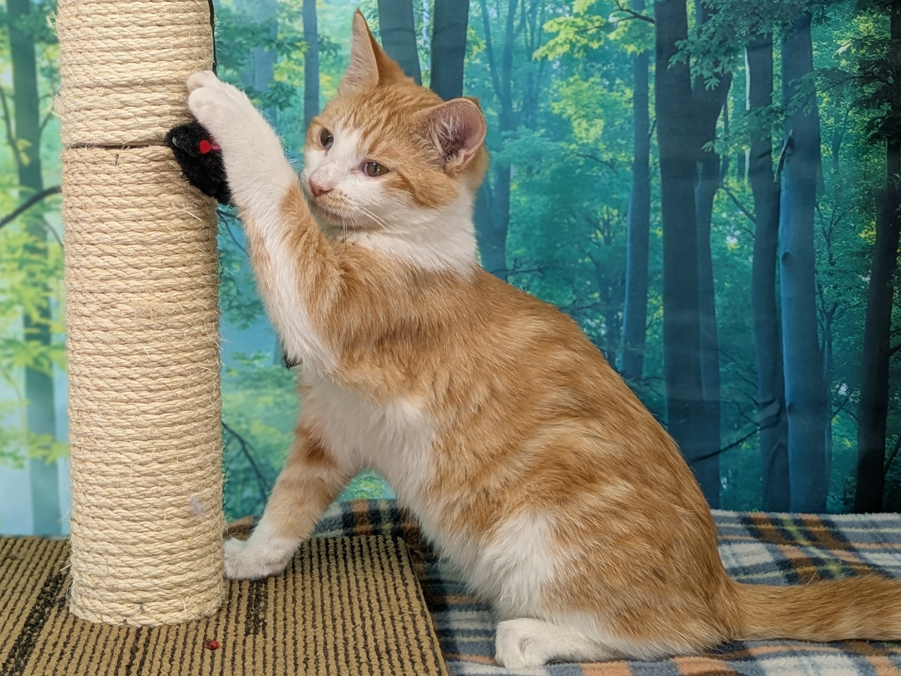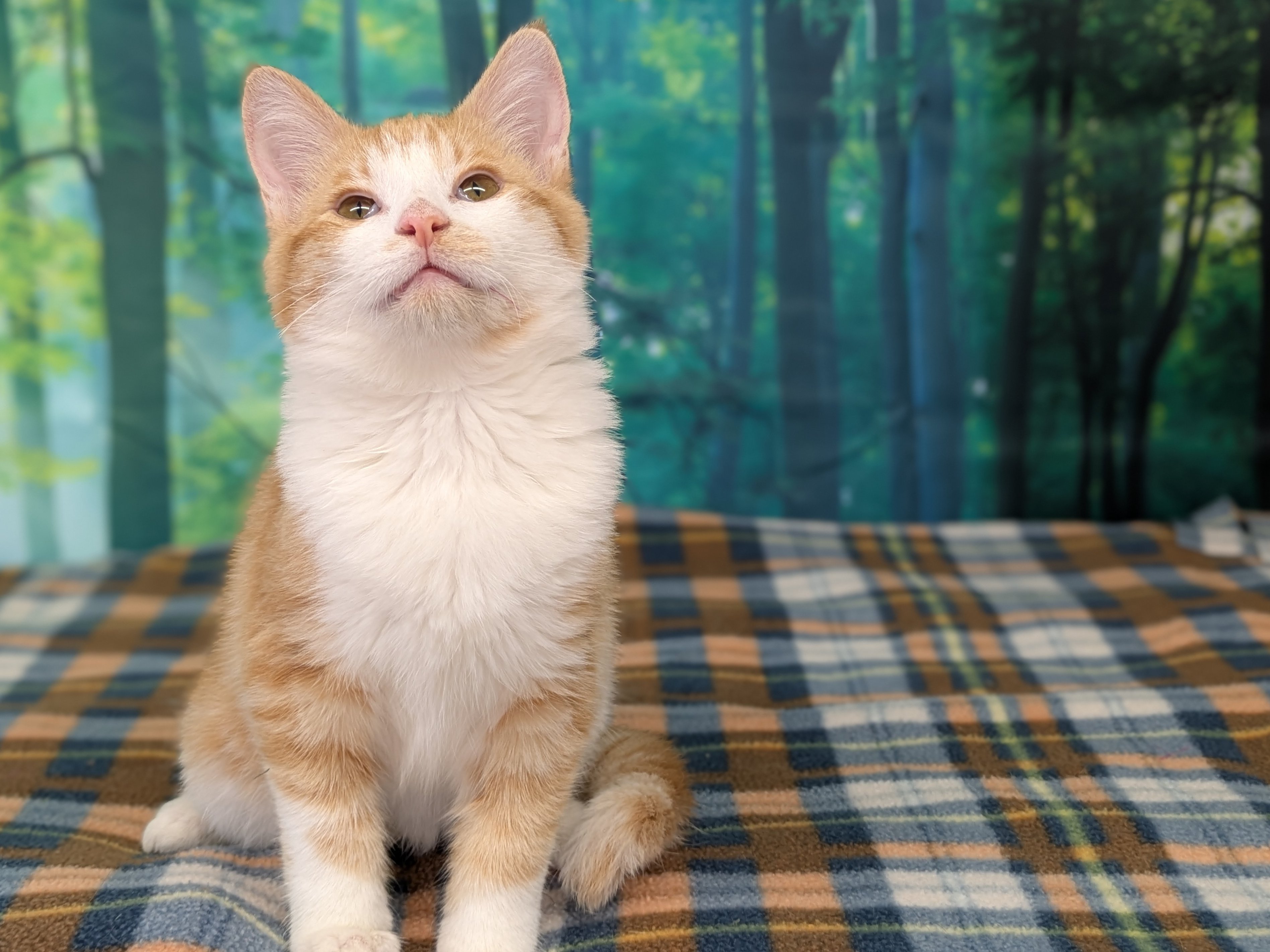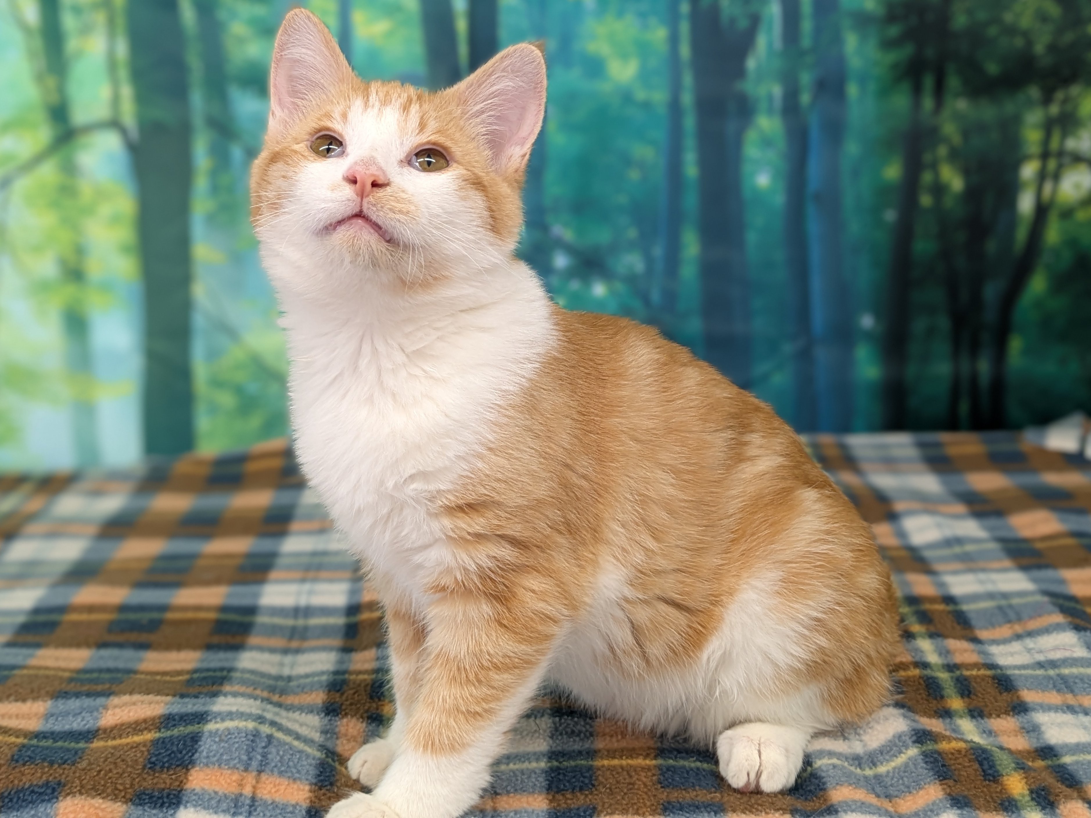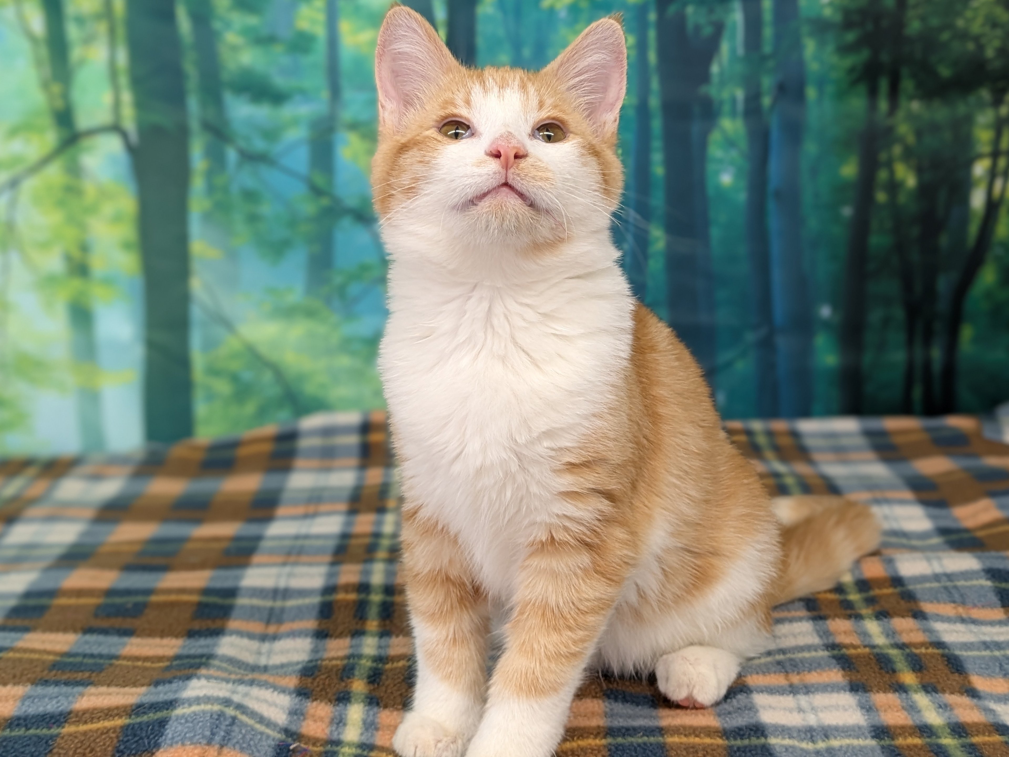 Please do not call the shelter; do the application first. This summer, Forget Me Not took on a major Trap-Neuter-Return (TNR) project involving nearly 100 cats and kittens. Thankfully, many of the youngest kittens were friendly and full of potential — perfect candidates for our Happy Homes Adoption Program! These little ones are now safe, thriving, and ready to start their new lives in loving forever homes. KitKat is a short hair male orange tabby with white, with a 6/18/25 estimated date of birth. He loves feathered cat toys and will grab one and run off with it, so cannot be left unsupervised (feathers can be dangerous if ingested). While you play with him, he will bring you lots of laughs along with ooh-ing and aah-ing at his athleticism. Kit Kat is very social and a little bit domineering with his cat friends when there are toys involved. We'd love to see all kittens go to homes that have another young, playful kitten, or to send 2 of them out as a pair (which gives you a great pair discount rate), but we do not require pair adoptions. If you prefer to adopt just one, and you don't have a similarly aged kitten at home already, please read our information on Single Kitten Syndrome. Then, when you apply for a single kitten, please let us know in the "Comments" field how you plan to deal with the "kitten crazies." All pets arrive spayed/neutered, dewormed, microchipped and vaccinated. Adoption fee for Kit Kat is a suggested minimum of $60 (more gratefully accepted). All pets are placed with a 30-day money-back trial period, to give pet and family enough time to discover any unknown allergies or other conflicts. Can't come to Republic? Don't let that stop you! We have monthly transports to the Seattle area, delivering adopted pets to their new owners. If you can add a little to your donation to help us cover our volunteer driver's expenses, that would be great!