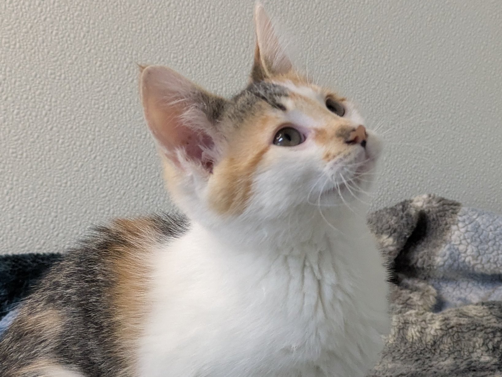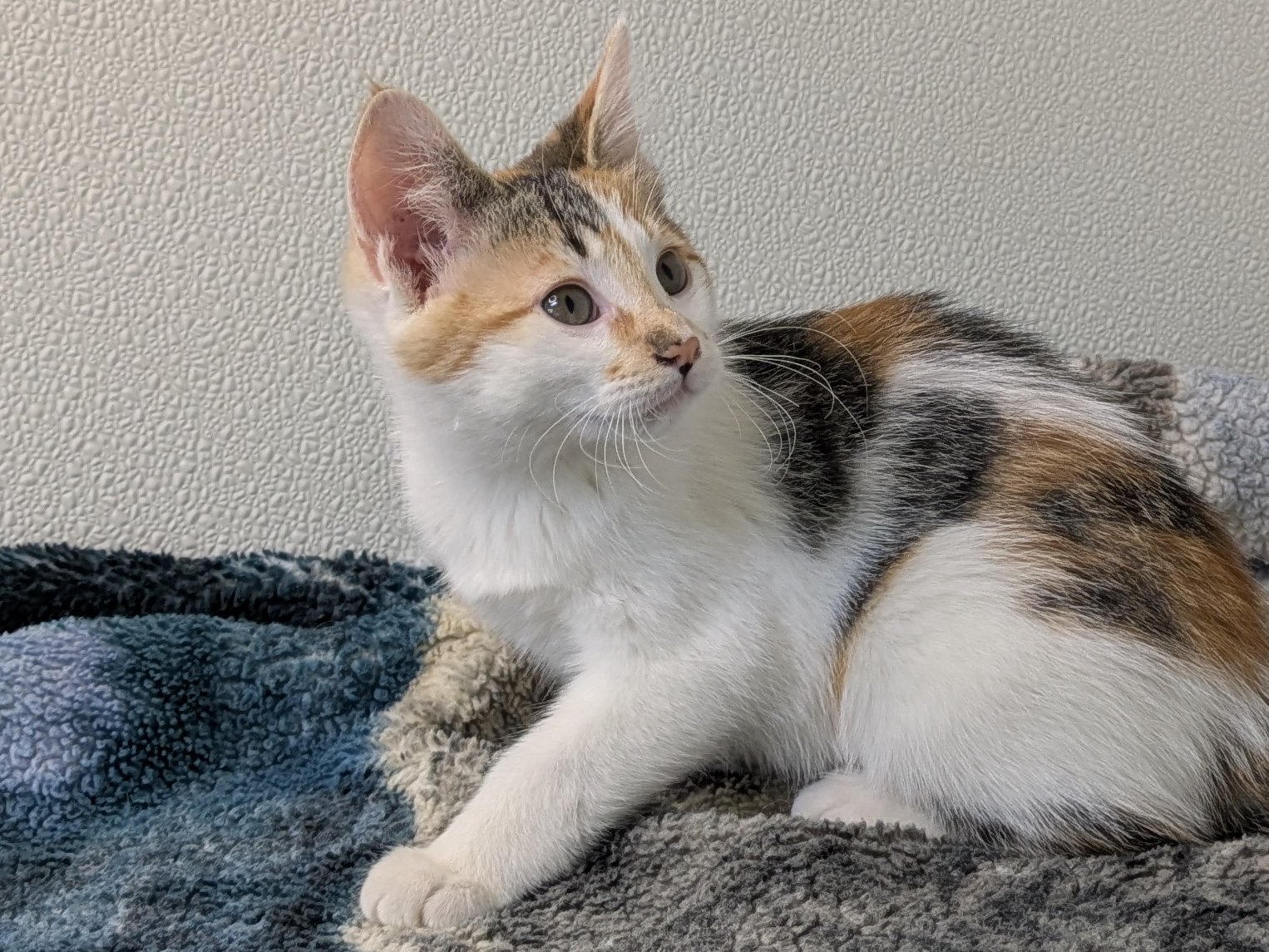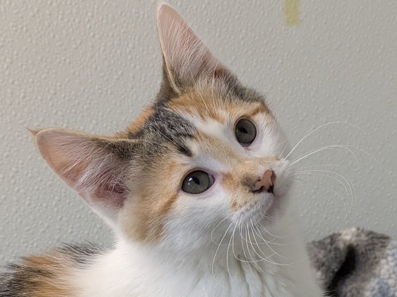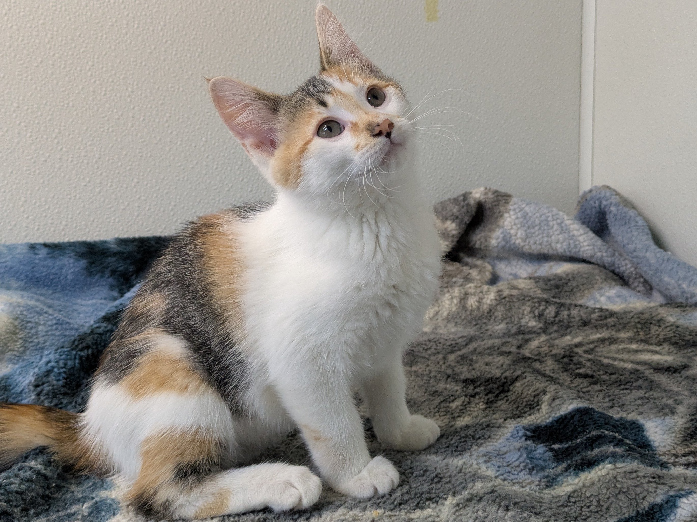 Please do not call the shelter; do the application first. This summer, Forget Me Not took on a major Trap-Neuter-Return (TNR) project involving nearly 100 cats and kittens. Thankfully, many of the youngest kittens were friendly and full of potential — perfect candidates for our Happy Homes Adoption Program! These little ones are now safe, thriving, and ready to start their new lives in loving forever homes. Because so many similarly aged kittens came in over just a few days of trapping, it’s hard to tell exactly who came from which litter. So, we’ve grouped them by approximate age instead — all the kittens with the "SEE" designation can be mixed and matched for adoption. They’re all sweet, playful, and well-socialized, and they’d love to go home with a buddy (or two!). This group of “SEE” kittens are estimated to have been born between July 1 and July 5, and they're now ready to meet their forever families. If you're looking for one or a pair of adorable, affectionate kittens to brighten your home, check out our “SEE” crew — your new best friends might be waiting for you! Godiva is a short hair female tabico (tabby-calico) with white. Video Coming Soon We'd love to see all kittens go to homes that have another young, playful kitten, or to send 2 of them out as a pair (which gives you a great pair discount rate), but we do not require pair adoptions. If you prefer to adopt just one, and you don't have a similarly aged kitten at home already, please read our information on Single Kitten Syndrome. Then, when you apply for a single kitten, please let us know in the "Comments" field how you plan to deal with the "kitten crazies." All pets arrive spayed/neutered, dewormed, microchipped and vaccinated. Adoption fee for Godiva is a suggested minimum of $75 (more gratefully accepted). All pets are placed with a 30-day money-back trial period, to give pet and family enough time to discover any unknown allergies or other conflicts. Can't come to Republic? Don't let that stop you! We have monthly transports to the Seattle area, delivering adopted pets to their new owners. If you can add a little to your donation to help us cover our volunteer driver's expenses, that would be great!