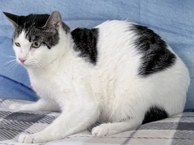 Please do not call the shelter; do the application first. Meet Cheetos, a handsome short-haired male tabby and white born on March 20, 2025, who carries the long-suffering air of a kitty who simply accepts his fate with a quiet sigh. While he sometimes acts as if he’s prepared for the worst, he is actually starting to come out of his shell and shows a clear preference for the ladies, warming up to them almost immediately. He tends to be a bit more shy around men, but with a patient hand, he is learning that the world isn't so scary after all. Interestingly, Cheetos is a bit of a social learner; he "takes the hint" from more affectionate kitties and finds the motivation to seek out snuggles once he sees his friends getting pets. Because the frenetic activity of other cats often makes him hang back, he can be a challenge to catch on video, but his quiet nature is part of his charm. In his clips, you can see him tolerating his grooming sessions and even starting to enjoy skritches, & has recently developed a love for laser pointers, though his flight response remains on a hair-trigger for now. He will likely always be a more independent, quiet soul rather than an outgoing socialite, and he truly just wants a place to call his own where he can be left alone until he decides he’s ready for attention. Cheetos will be so grateful to join a calm, loving household where he can decompress from the shelter and blossom at his own pace. To help him settle in, we offer an extended 60-day trial adoption period to give you both plenty of extra time to bond. You can also find more information on welcoming a timid friend into your home at https://anticruelty.org/pet-library/adopting-shy-cat. Once he feels safe and secure in a warm home setting, we know Cheetos will become a deeply happy and contented companion. All pets arrive spayed/neutered, dewormed, microchipped and vaccinated. Adoption fee for Cheetos is a suggested minimum of $50 (more gratefully accepted). All pets are placed with a 30-day money-back trial period, to give pet and family enough time to discover any unknown allergies or other conflicts. Can't come to Republic? Don't let that stop you! We have monthly transports to the Seattle area, delivering adopted pets to their new owners. If you can add a little to your donation to help us cover our volunteer driver's expenses, that would be great!