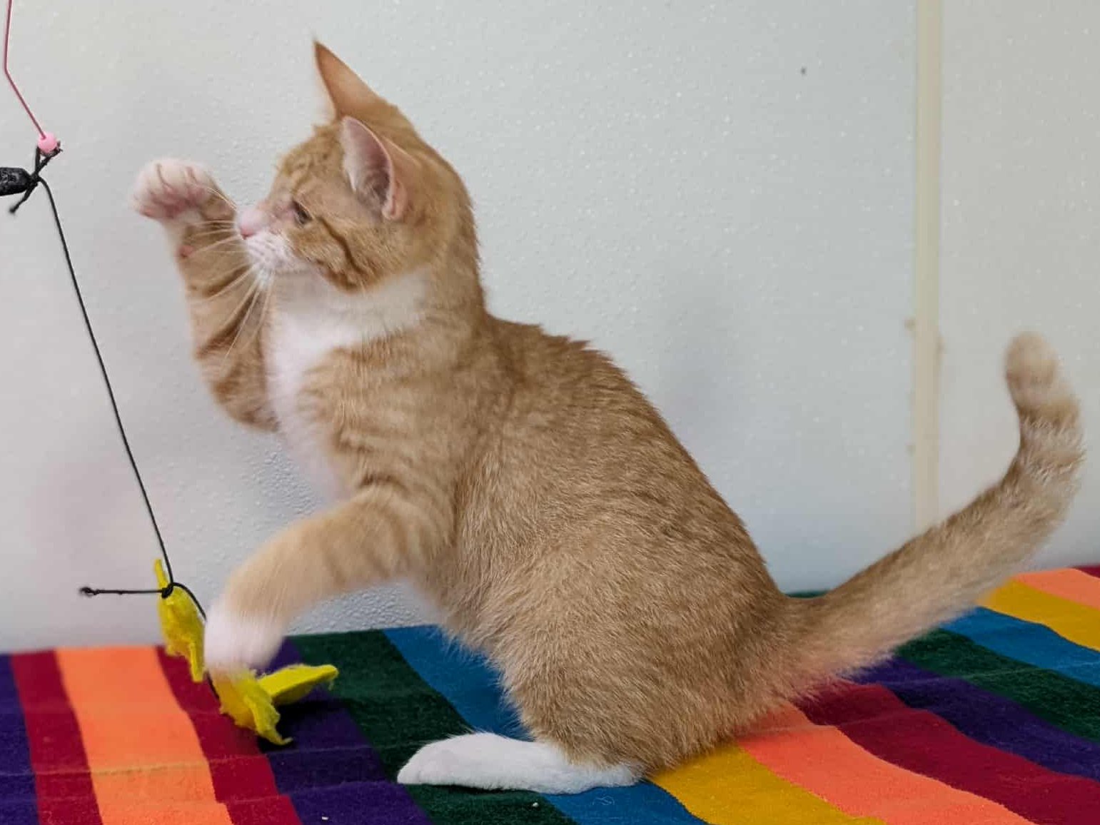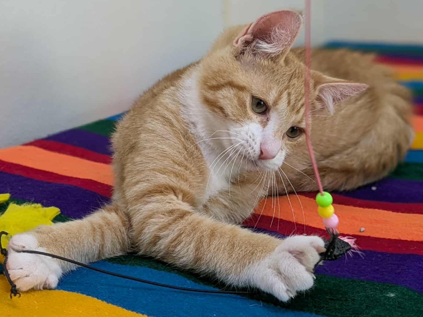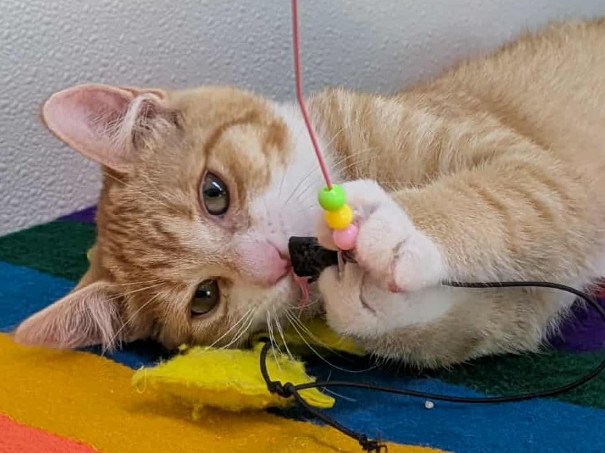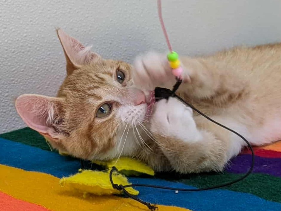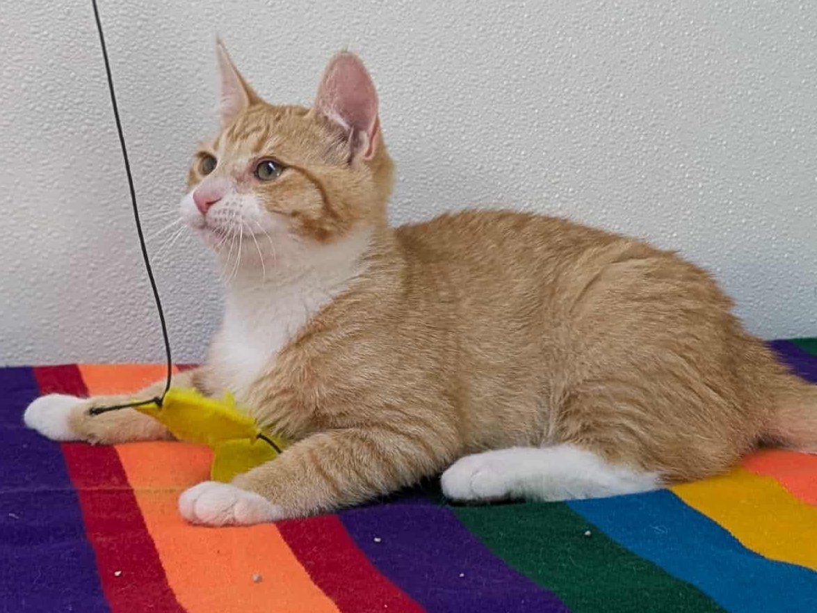 Please do not call the shelter; do the application first. Introducing Smalls, the last kitten from the Sandlot Litter! This handsome orange and white shorthaired boy, born 5/29/25 at the shelter, has spent his whole life inside, and has been well socialized by our staff and volunteers. He should have no problem adapting to homes with children, dogs, and other cats, and should remain an indoor-only kitty. Smalls shares his space with the Fly Litter and the Orange Litter, in case you want to mix-and-match to make your purrrfect pair! We'd love to see all kittens go to homes that have another young, playful kitten, or to send 2 of them out as a pair (which gives you a great pair discount rate), but we do not require pair adoptions. If you prefer to adopt just one, and you don't have a similarly aged kitten at home already, please read our information on Single Kitten Syndrome. Then, when you apply for a single kitten, please let us know in the "Comments" field how you plan to deal with the "kitten crazies." All pets arrive spayed/neutered, dewormed, microchipped and vaccinated. Adoption fee for Smalls is a suggested minimum of $75 (more gratefully accepted). All pets are placed with a 30-day money-back trial period, to give pet and family enough time to discover any unknown allergies or other conflicts. Can't come to Republic? Don't let that stop you! We have monthly transports to the Seattle area, delivering adopted pets to their new owners. If you can add a little to your donation to help us cover our volunteer driver's expenses, that would be great!