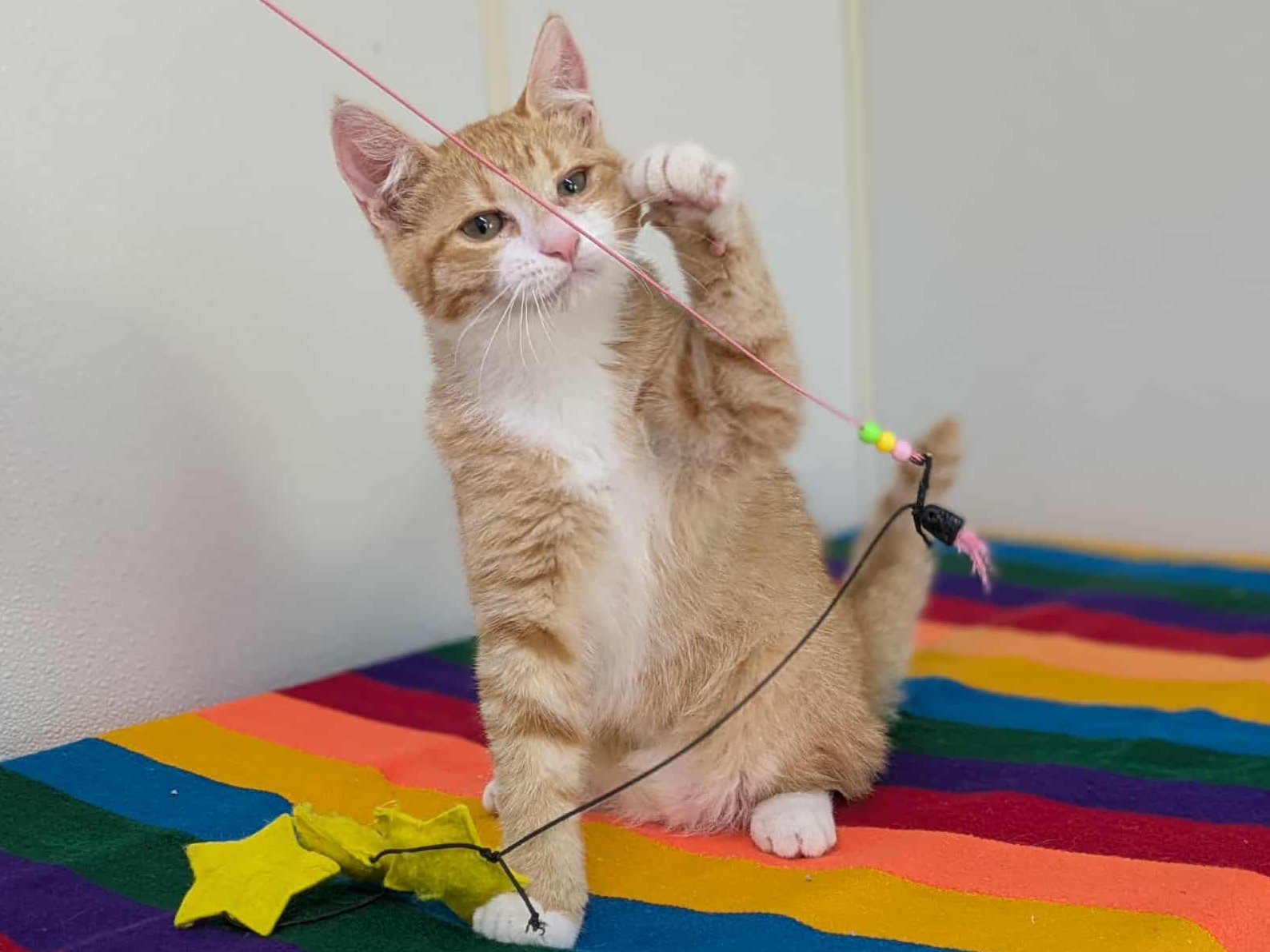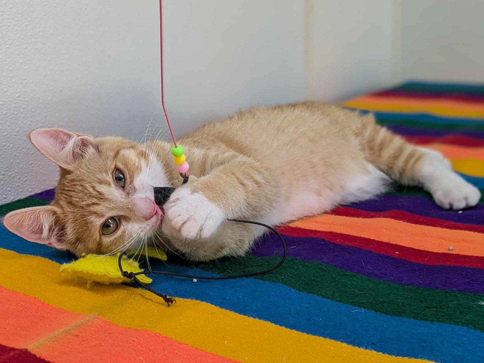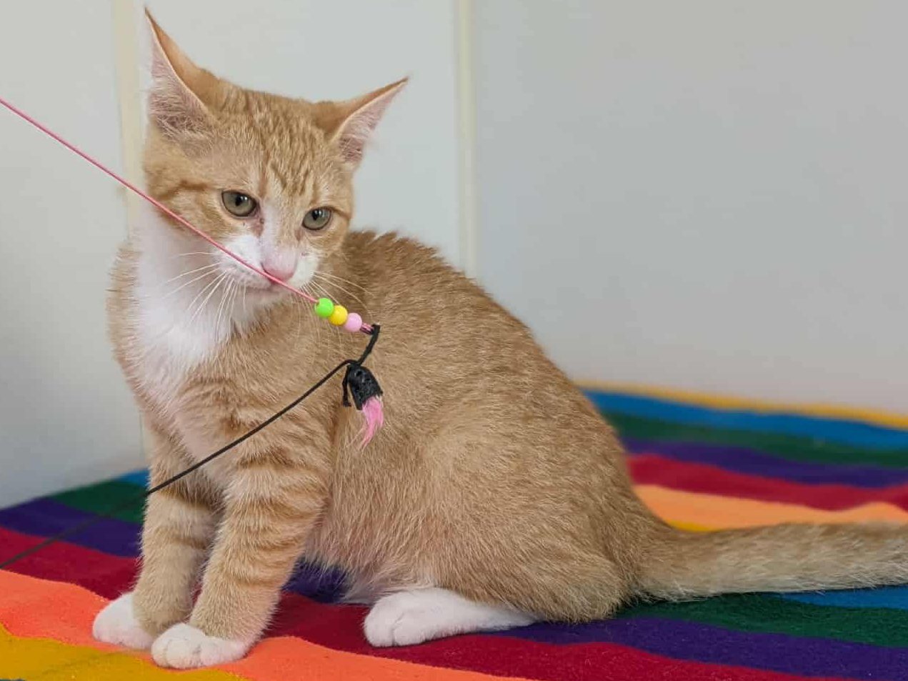 Please do not call the shelter; do the application first. Introducing Smalls, the last kitten from the Sandlot Litter! This handsome orange and white shorthaired boy, born 5/29/25 at the shelter, has spent his whole life inside, and has been well socialized by our staff and volunteers. He should have no problem adapting to homes with children, dogs, and other cats, and should remain an indoor-only kitty. Smalls shares his space with the Fly Litter and the Orange Litter, in case you want to mix-and-match to make your purrrfect pair! We'd love to see all kittens go to homes that have another young, playful kitten, or to send 2 of them out as a pair (which gives you a great pair discount rate), but we do not require pair adoptions. If you prefer to adopt just one, and you don't have a similarly aged kitten at home already, please read our information on Single Kitten Syndrome. Then, when you apply for a single kitten, please let us know in the "Comments" field how you plan to deal with the "kitten crazies." All pets arrive spayed/neutered, dewormed, microchipped and vaccinated. Adoption fee for Smalls is a suggested minimum of $75 (more gratefully accepted). All pets are placed with a 30-day money-back trial period, to give pet and family enough time to discover any unknown allergies or other conflicts. Can't come to Republic? Don't let that stop you! We have monthly transports to the Seattle area, delivering adopted pets to their new owners. If you can add a little to your donation to help us cover our volunteer driver's expenses, that would be great!