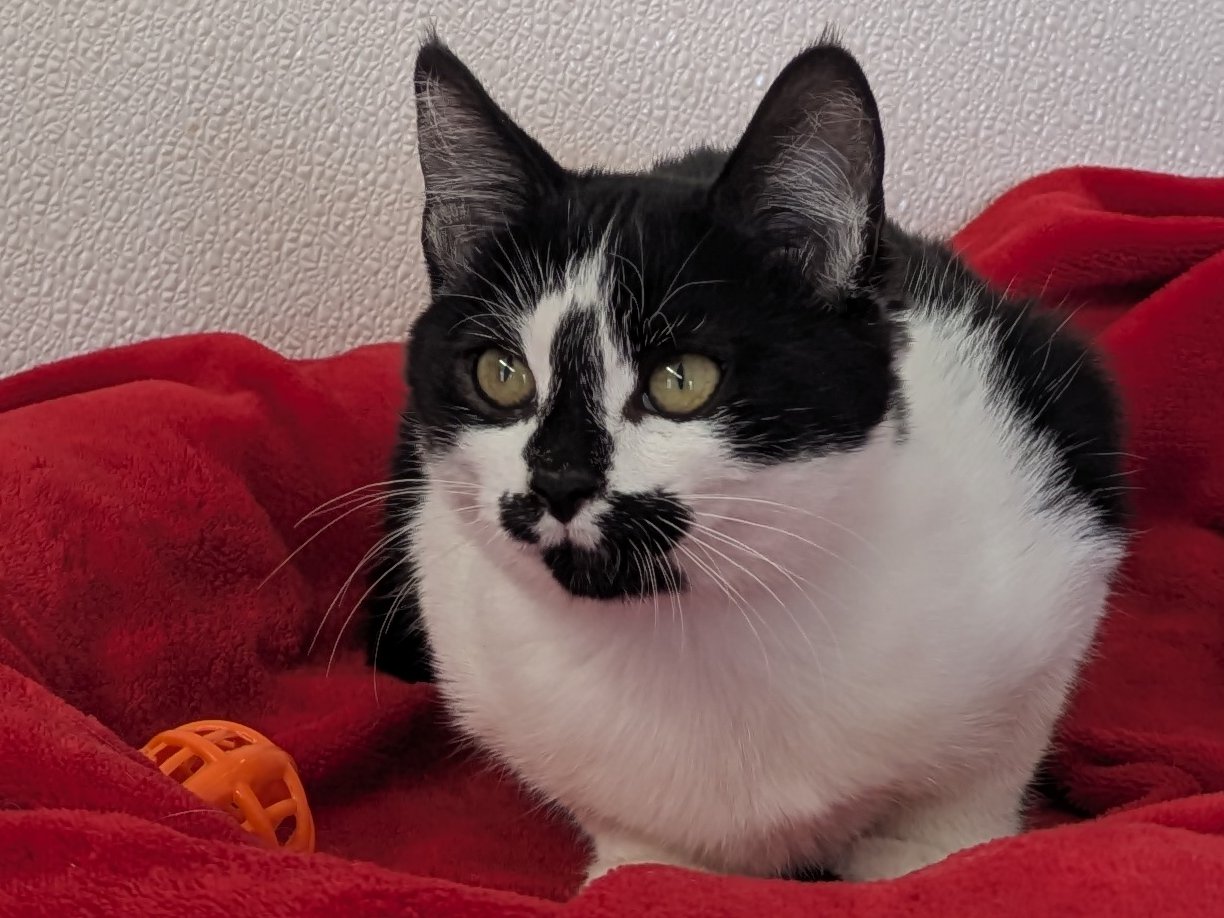 Please do not call the shelter; do the application first. This summer, Forget Me Not took on a major Trap-Neuter-Return (TNR) project involving nearly 100 cats and kittens. Thankfully, many of the youngest kittens were friendly and full of potential — perfect candidates for our Happy Homes Adoption Program! These little ones are now safe, thriving, and ready to start their new lives in loving forever homes. Because so many similarly aged kittens came in over just a few days of trapping, it’s hard to tell exactly who came from which litter. So, we’ve grouped them by approximate age instead — all the kittens with the "SEE" designation can be mixed and matched for adoption. They’re all sweet, playful, and well-socialized, and they’d love to go home with a buddy (or two!). The first group of “SEE” kittens are estimated to have been born between June 12 and June 18, and they're now ready to meet their forever families. If you're looking for one or a pair of adorable, affectionate kittens to brighten your home, check out our “SEE” crew — your new best friends might be waiting for you! Almond Joy is a short hair black and white girl. She is very playful, yet still a little hesitant about being picked up/held. She should blossom nicely once she has a stable forever home where she knows she belongs. We'd love to see all kittens go to homes that have another young, playful kitten, or to send 2 of them out as a pair (which gives you a great pair discount rate), but we do not require pair adoptions. If you prefer to adopt just one, and you don't have a similarly aged kitten at home already, please read our information on Single Kitten Syndrome. Then, when you apply for a single kitten, please let us know in the "Comments" field how you plan to deal with the "kitten crazies." All pets arrive spayed/neutered, dewormed, microchipped and vaccinated. Adoption fee for Almond Joy is a suggested minimum of $75 (more gratefully accepted). All pets are placed with a 30-day money-back trial period, to give pet and family enough time to discover any unknown allergies or other conflicts. Can't come to Republic? Don't let that stop you! We have monthly transports to the Seattle area, delivering adopted pets to their new owners. If you can add a little to your donation to help us cover our volunteer driver's expenses, that would be great!