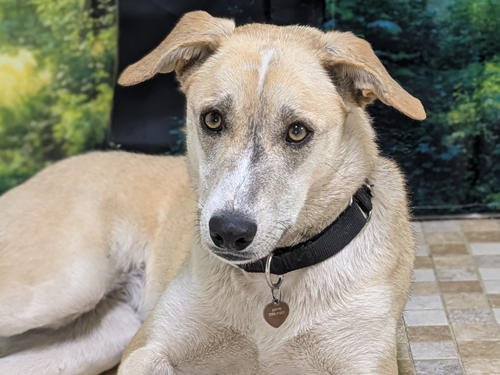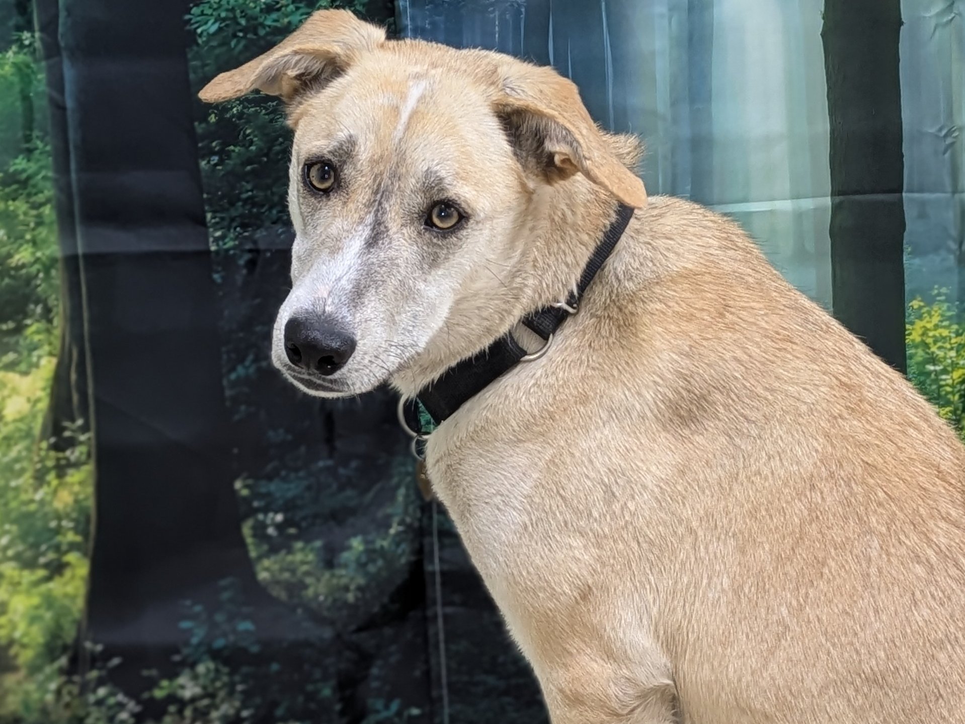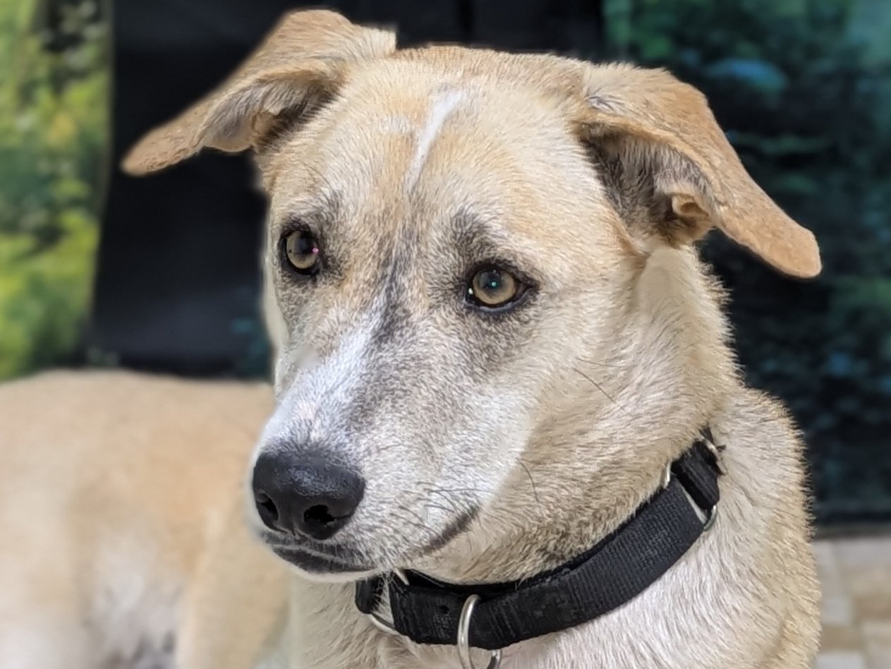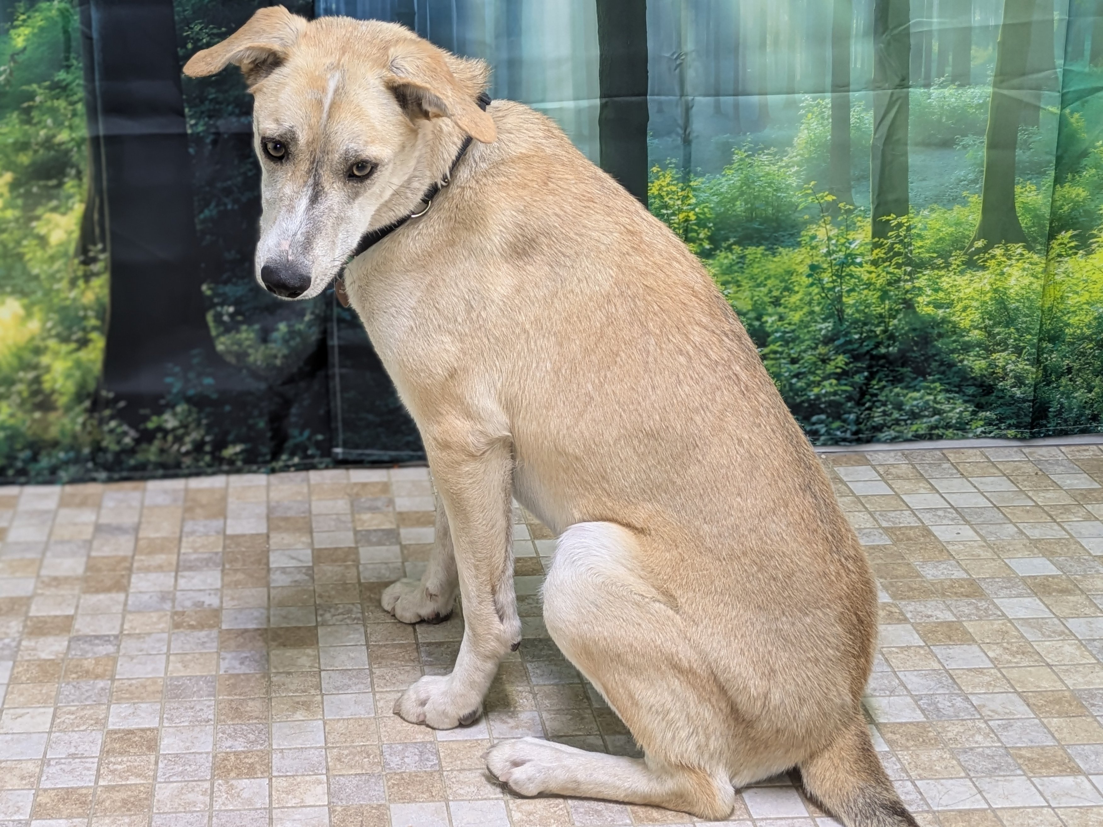 Please do not call the shelter; do the application first. Sarah is a stunning, one-of-a-kind mixed-breed girl a little over 2 years old. She comes from a large group of dogs abandoned in a remote mountain area, where they survived with almost no human contact. Fortunately, several of them—including Sarah—were brought into our adoption program so they can finally experience the safety, comfort, and love they’ve always deserved. Because she grew up without proper socialization, everything is still new for Sarah. She studies the world carefully, always trying to understand her surroundings. You’ll often see her touching her nose to people, objects, leashes, and the ground—her way of gathering information and making sense of this big, unfamiliar world. When Sarah first arrived, she avoided people completely and sought comfort only from her dog friends. Now, she’s beginning to understand that “stranger” doesn’t always mean “danger,” and we’ve watched her warm up to new people more quickly with each passing week. Her progress has been slow, steady, and incredibly heartwarming. Sarah would thrive in a home with another confident dog (or two). She relies on canine companions for reassurance and would feel less pressure to stay hyper-alert if she has a friend to help share the “watching.” Despite her gentle nature, her awareness of everything happening around her means she might become a good little alert dog when visitors arrive. She gets along wonderfully with other dogs and did beautifully during her nose-to-nose meeting with a cat through our screened catio, so with proper introductions, she may be able to live with a calm, friendly feline. Weighing around 55 pounds, Sarah is truly unique-looking; her mix is anyone’s guess. Shepherd? Whippet? Saluki? Retriever? Your guess is as good as ours, but whatever her lineage, she is a breathtakingly beautiful, one-of-a-kind work of canine art. Sarah is housetrained, observant, and quietly intelligent, with a soft, soulful presence that draws you in. She just needs a patient, gentle home willing to give her the time and space to unfold at her own pace. If you’re looking for a sensitive, loyal companion and have room in your home (and heart) for a shy girl discovering the world for the first time, Sarah may be the perfect addition to your family. All pets arrive spayed/neutered, dewormed, microchipped and vaccinated. Adoption fee for Sarah is a suggested minimum of $150 (more gratefully accepted). All pets are placed with a 30-day money-back trial period, to give pet and family enough time to discover any unknown allergies or other conflicts. Can't come to Republic? Don't let that stop you! We have monthly transports to the Seattle area, delivering adopted pets to their new owners. If you can add a little to your donation to help us cover our volunteer driver's expenses, that would be great!