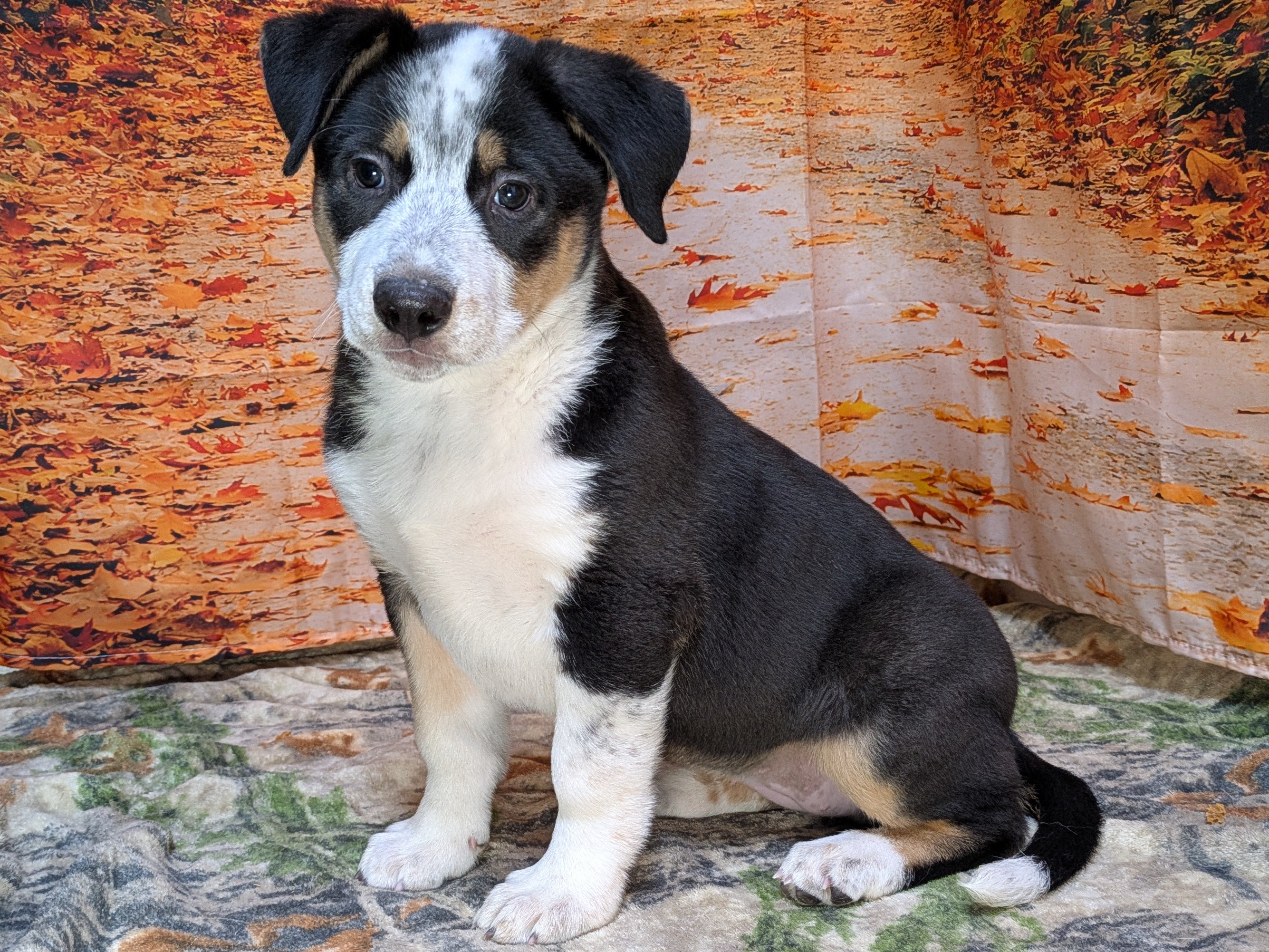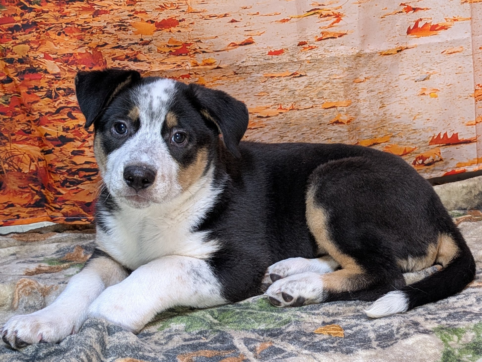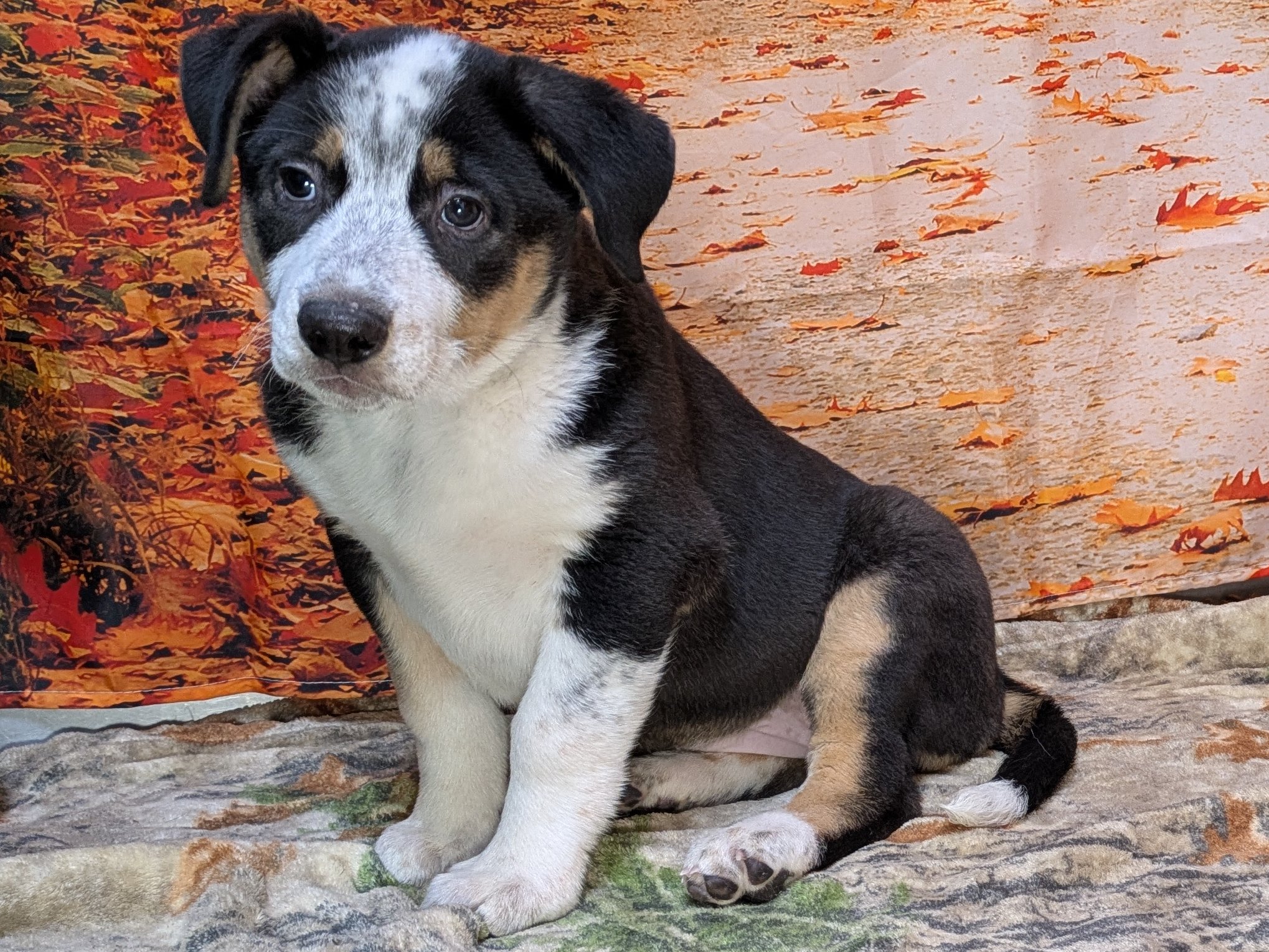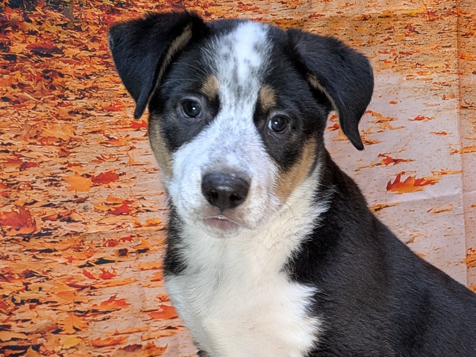 Please do not call the shelter; do the application first. Introducing the Soda Pups! These sweet girls, born 9/25/25, were part of a group of dogs abandoned far up a mountain when their people moved away. Their mother Shasta (last photo, also up for adoption) appears to be a husky-shepherd-mixed breed, and we expect the pups to be in the 50-65 pound range when full grown. None of these abandoned dogs had been adequately socialized up on the mountain, so everything is new to them, and it all seems oh-so-scary right now. These pups have very sweet natures, thankfully, though it takes them a while to warm up to new people, and they must be introduced to new experiences slowly, patiently, and positively. Pepsi (tricolor) and 7-Up (black & white) will benefit from relaxed dog-experienced families with a calm and centered atmosphere in the home. They will need repeated positive exposure to everything new in their lives, from pavement to televisions to traffic, with the reward of watching them blossom into happy, loving, well-adjusted companions. As you can see in their video (taken 11/20), they even need encouragement to trust jerky treats from their new friend-in-waiting. We have staff and volunteers helping them with their socialization and confidence every day, and know they will do best when separated and placed with experienced and savvy dog lovers. As they bond with their new people, it will be important to begin the typical training process, while providing enough exercise to keep them in a tired-relaxed state. We can't wait to see what magnificent beauties they become with the help of their lucky adopters! Puppies require a lot of human interaction, and all puppies will benefit from obedience training and full immersion in their human household. These pups' ideal homes will have someone who can exercise them with a couple of energetic walks each day, plus commitment to training them how to be the best dogs they can be. They hope to have very few hours per day when they will be without the companionship of a human or other pet, and will reward their forever people with boundless love and loyalty! All pets arrive spayed/neutered, dewormed, microchipped and vaccinated. Adoption fee for Pepsi is a suggested minimum of $175 (more gratefully accepted). All pets are placed with a 30-day money-back trial period, to give pet and family enough time to discover any unknown allergies or other conflicts. Can't come to Republic? Don't let that stop you! We have monthly transports to the Seattle area, delivering adopted pets to their new owners. If you can add a little to your donation to help us cover our volunteer driver's expenses, that would be great!