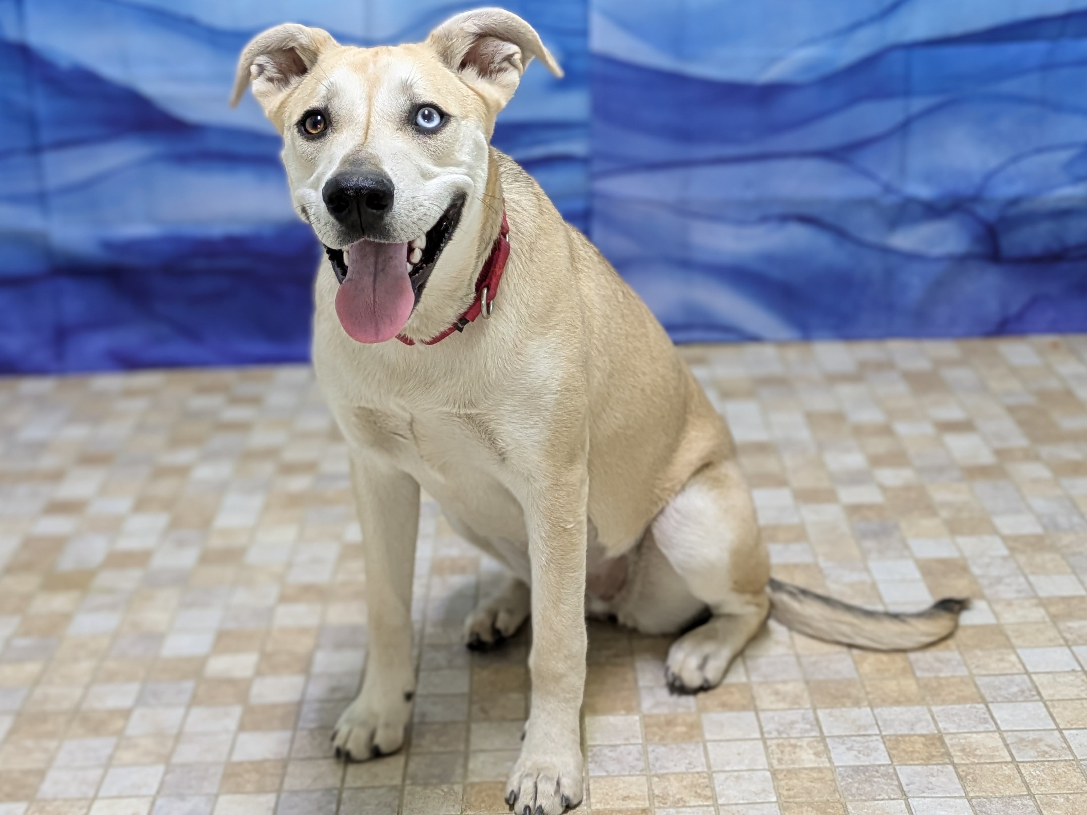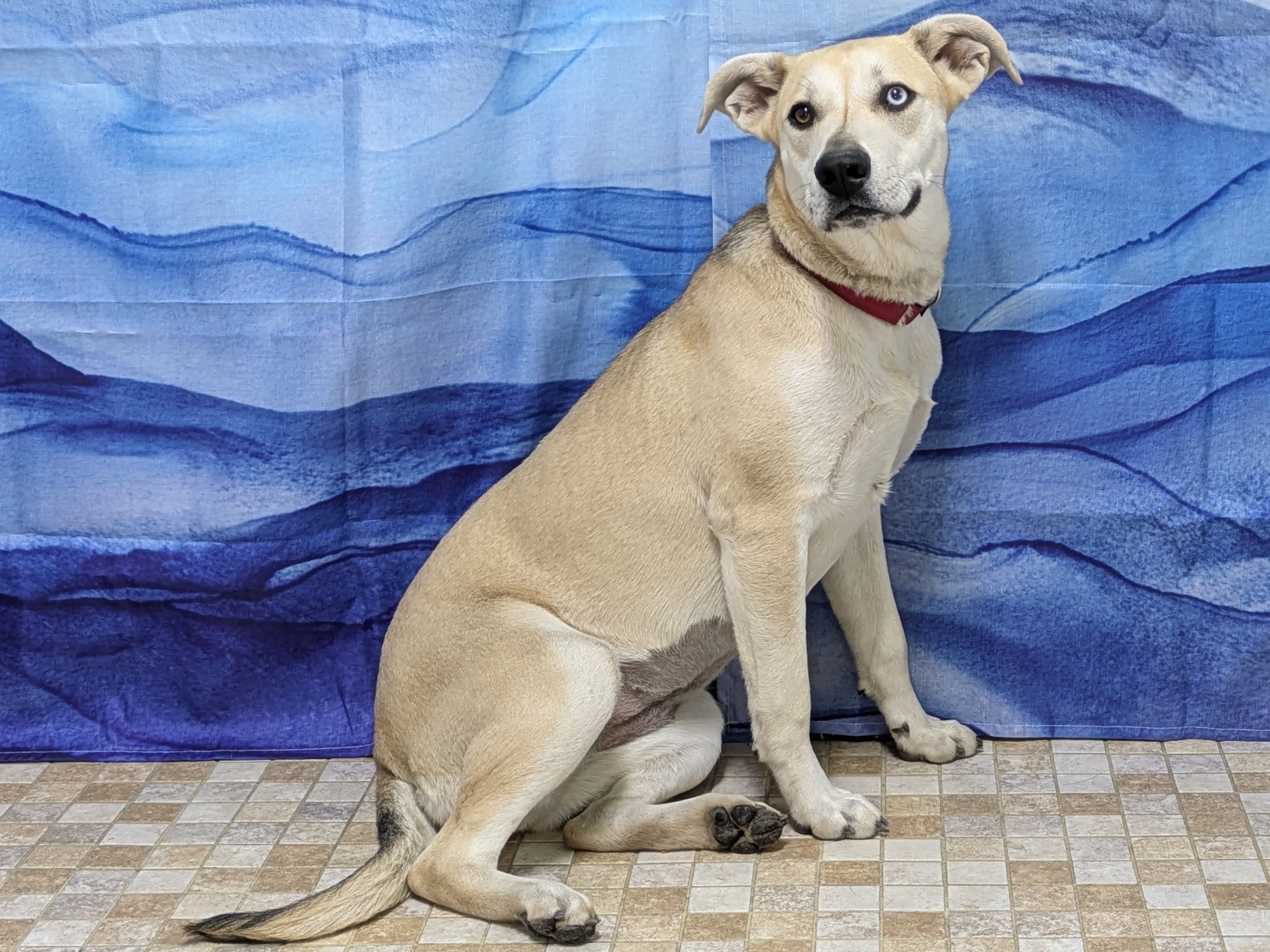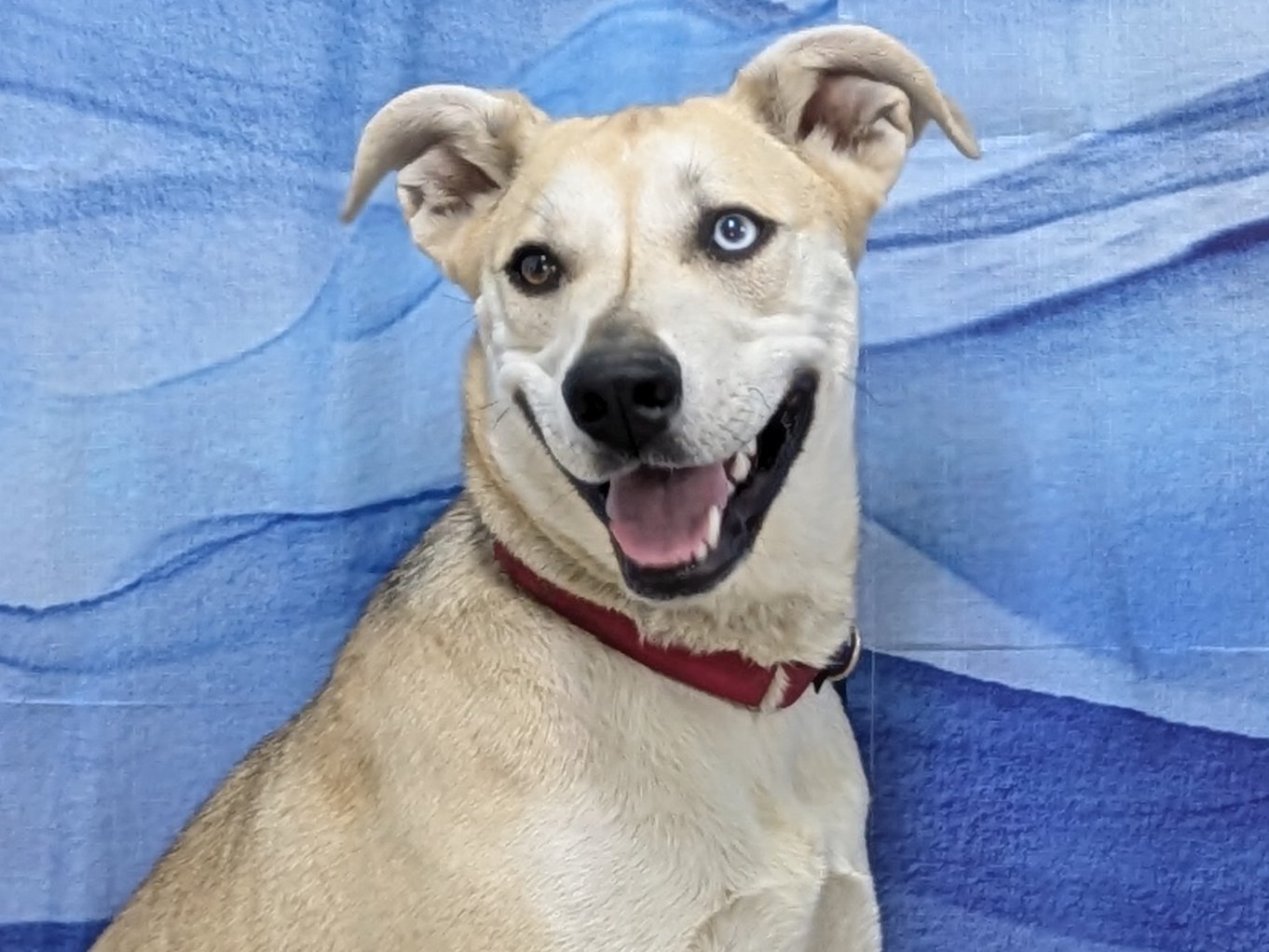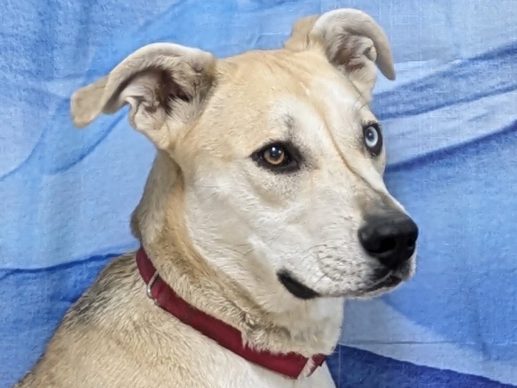 Please do not call the shelter; do the application first. With one striking blue eye and one warm brown eye, Osa is as unique on the outside as she is in personality. She likely carries some Australian Shepherd or Husky traits along with her reported Rhodesian Ridgeback background—whatever her mix, she is 100% sweetheart. Osa is the sister of Ollie and Bennie, who were both adopted through Forget Me Not earlier this summer. While her previous owner kept her at the time, circumstances took a difficult turn, and Osa was recently brought to us by the sheriff after being found abandoned in an empty apartment. Now, this resilient girl is more than ready to start fresh with a loving family that will truly be hers forever. Born around 1/1/25, Osa is a happy, expressive dog who seems to always be smiling. She weighs just under 60 pounds, gets along well with other dogs, and was polite when meeting our dog-savvy test cat—so with proper, patient introductions, she may do well with a confident feline friend. Osa is housetrained, though she occasionally exhibits submissive urination during greetings or moments of uncertainty. A calm, supportive home with positive interactions will help her build confidence and grow past this behavior. Right now, human connection is Osa’s top priority. After her experience with abandonment, she gravitates toward people and wants to stay close to them, choosing affection over toys every time. We’re confident she’ll learn to enjoy play in time—she simply needs the security of a loving presence first. She’s already quite good on leash and is starting to understand “sit.” She does sometimes jump up for attention, so she’ll be a better fit for homes with older children who won’t be toppled like Weebles by her enthusiastic affection. Osa is a loving, sensitive girl who has weathered hardship and still greets the world with a smile. If you’re looking for a devoted companion who just wants to bond deeply with her person, Osa may be the perfect addition to your family. All pets arrive spayed/neutered, dewormed, microchipped and vaccinated. Adoption fee for Osa is a suggested minimum of $150 (more gratefully accepted). All pets are placed with a 30-day money-back trial period, to give pet and family enough time to discover any unknown allergies or other conflicts. Can't come to Republic? Don't let that stop you! We have monthly transports to the Seattle area, delivering adopted pets to their new owners. If you can add a little to your donation to help us cover our volunteer driver's expenses, that would be great!