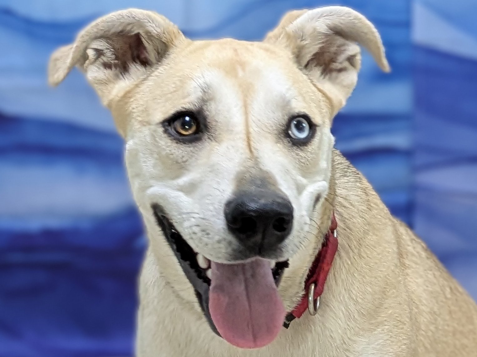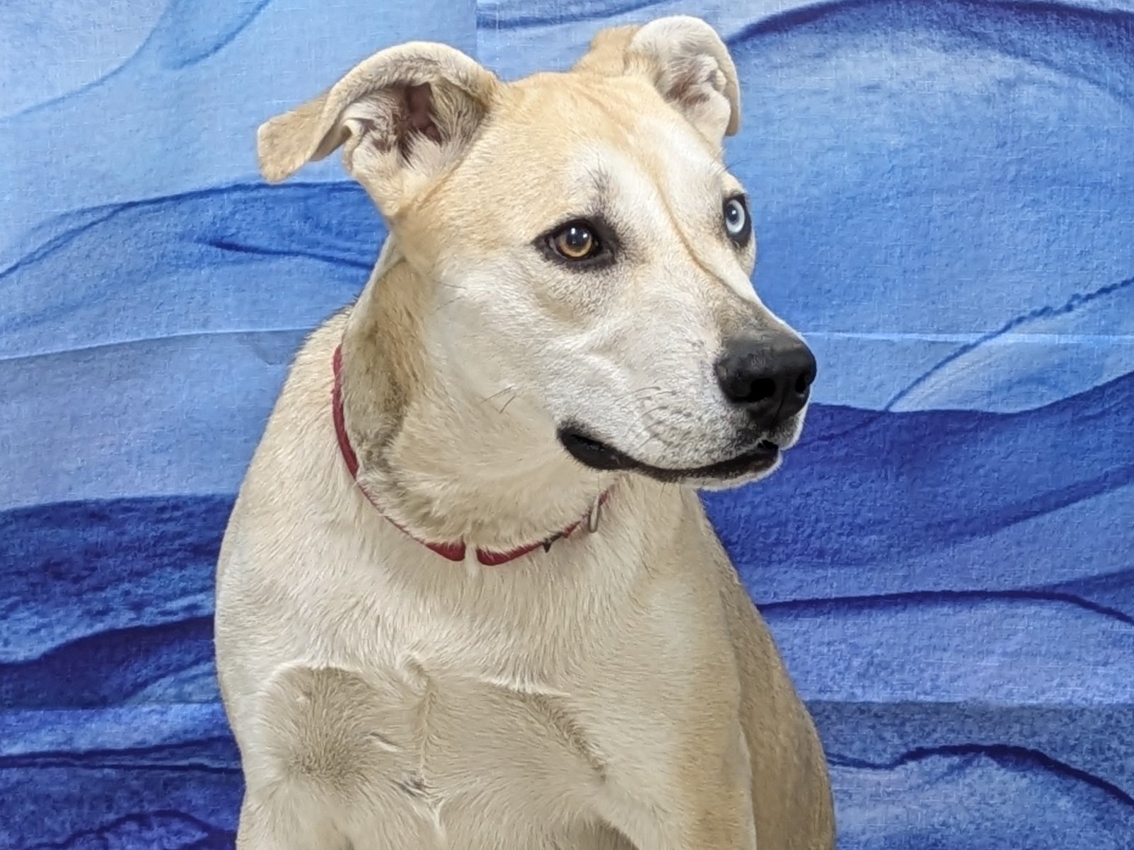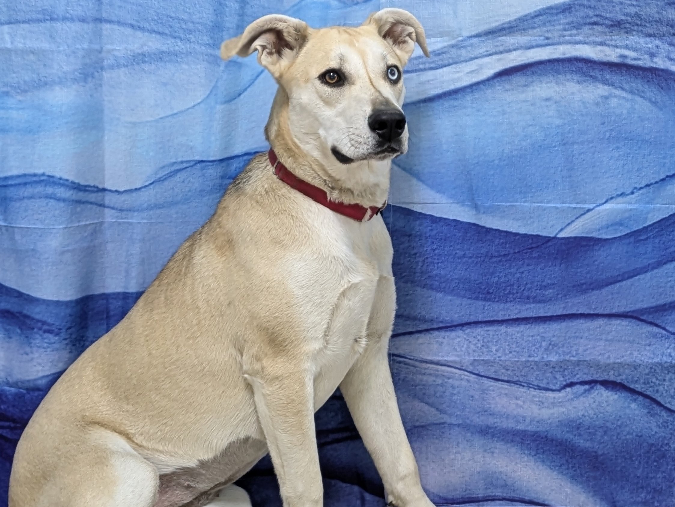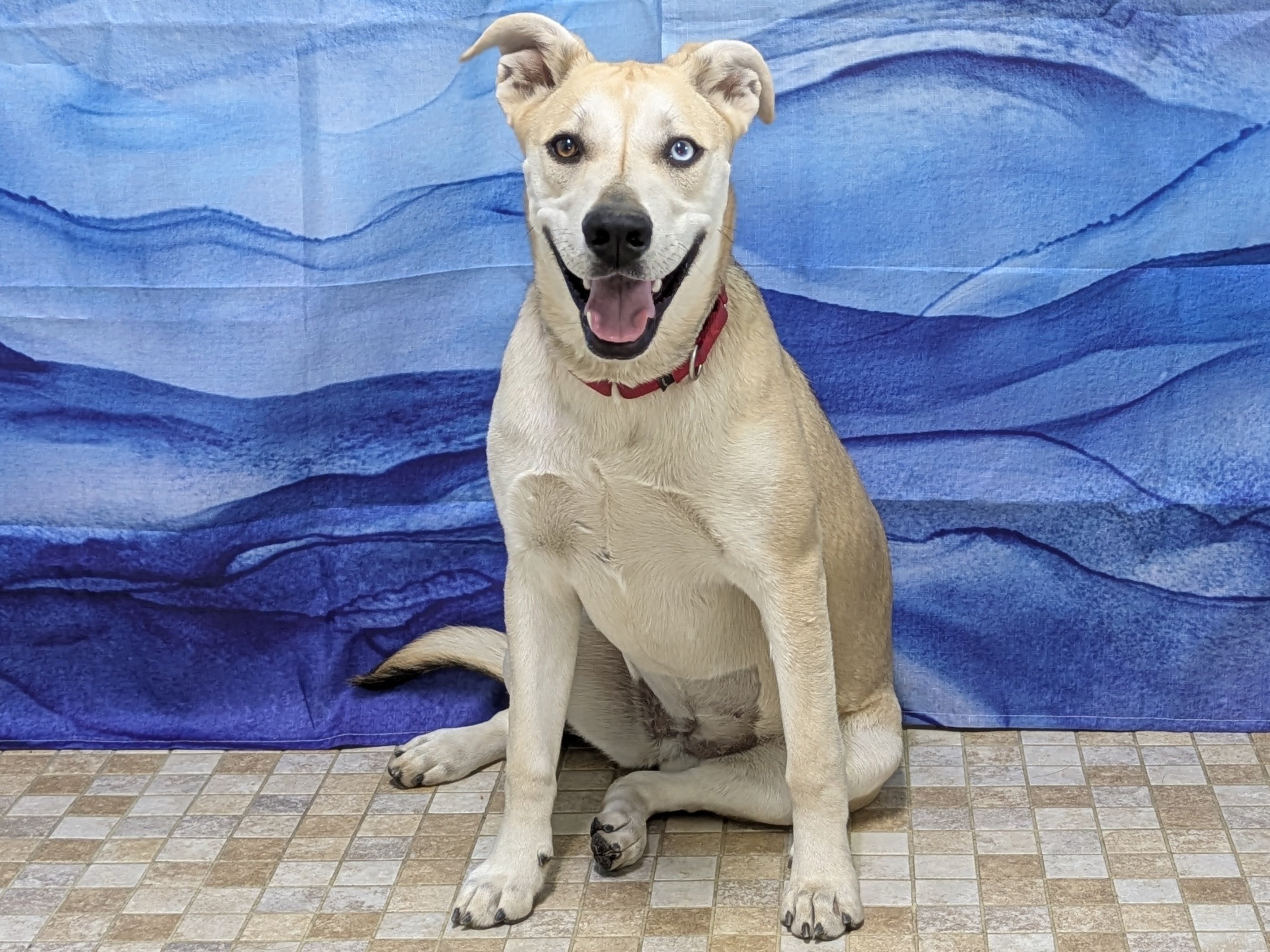 Please do not call the shelter; do the application first. With one striking blue eye and one warm brown eye, Osa is as unique on the outside as she is in personality. She likely carries some Australian Shepherd or Husky traits along with her reported Rhodesian Ridgeback background—whatever her mix, she is 100% sweetheart. Osa is the sister of Ollie and Bennie, who were both adopted through Forget Me Not earlier this summer. While her previous owner kept her at the time, circumstances took a difficult turn, and Osa was recently brought to us by the sheriff after being found abandoned in an empty apartment. Now, this resilient girl is more than ready to start fresh with a loving family that will truly be hers forever. Born around 1/1/25, Osa is a happy, expressive dog who seems to always be smiling. She weighs just under 60 pounds, gets along well with other dogs, and was polite when meeting our dog-savvy test cat—so with proper, patient introductions, she may do well with a confident feline friend. Osa is housetrained, though she occasionally exhibits submissive urination during greetings or moments of uncertainty. A calm, supportive home with positive interactions will help her build confidence and grow past this behavior. Right now, human connection is Osa’s top priority. After her experience with abandonment, she gravitates toward people and wants to stay close to them, choosing affection over toys every time. We’re confident she’ll learn to enjoy play in time—she simply needs the security of a loving presence first. She’s already quite good on leash and is starting to understand “sit.” She does sometimes jump up for attention, so she’ll be a better fit for homes with older children who won’t be toppled like Weebles by her enthusiastic affection. Osa is a loving, sensitive girl who has weathered hardship and still greets the world with a smile. If you’re looking for a devoted companion who just wants to bond deeply with her person, Osa may be the perfect addition to your family. All pets arrive spayed/neutered, dewormed, microchipped and vaccinated. Adoption fee for Osa is a suggested minimum of $150 (more gratefully accepted). All pets are placed with a 30-day money-back trial period, to give pet and family enough time to discover any unknown allergies or other conflicts. Can't come to Republic? Don't let that stop you! We have monthly transports to the Seattle area, delivering adopted pets to their new owners. If you can add a little to your donation to help us cover our volunteer driver's expenses, that would be great!