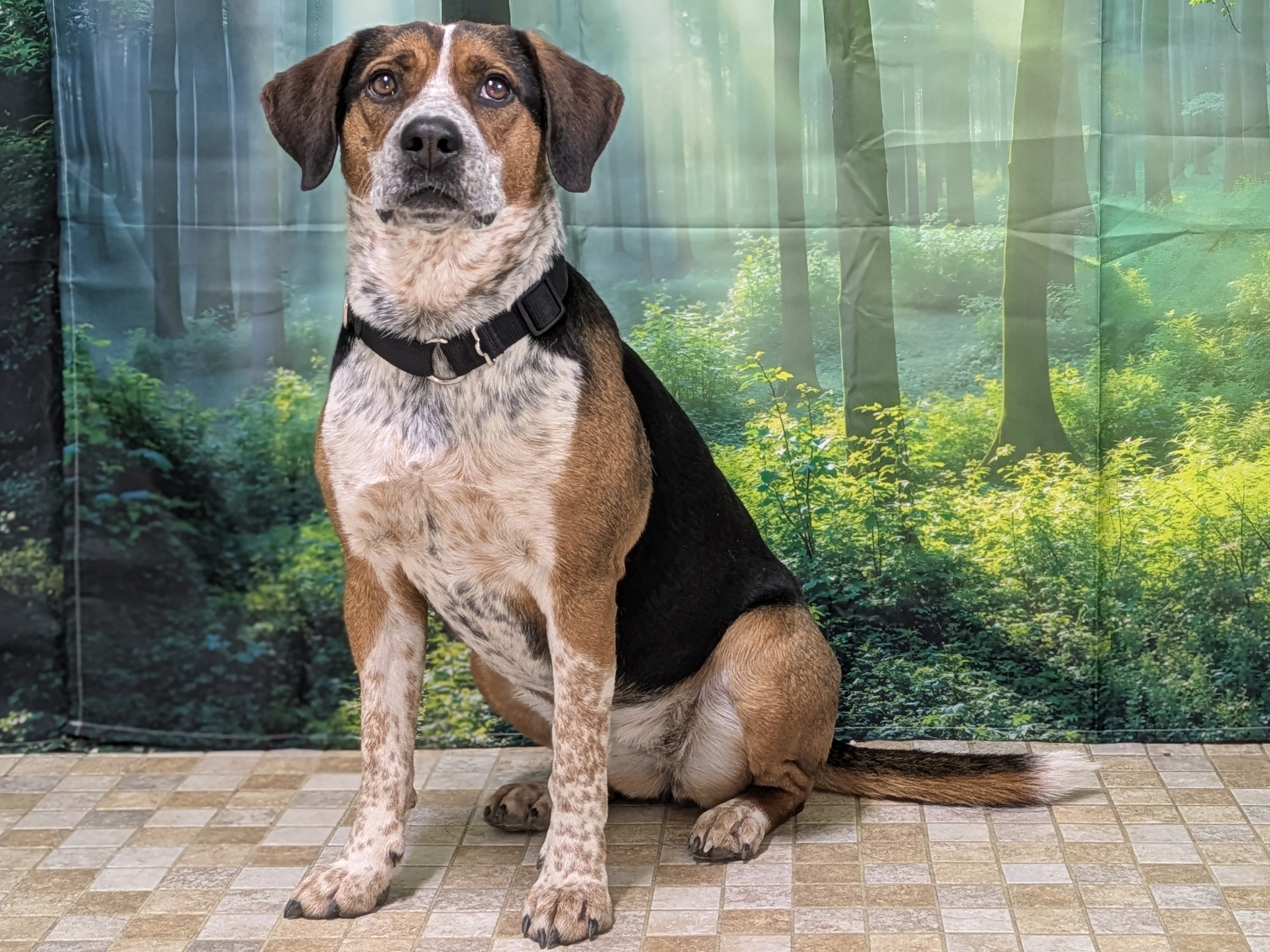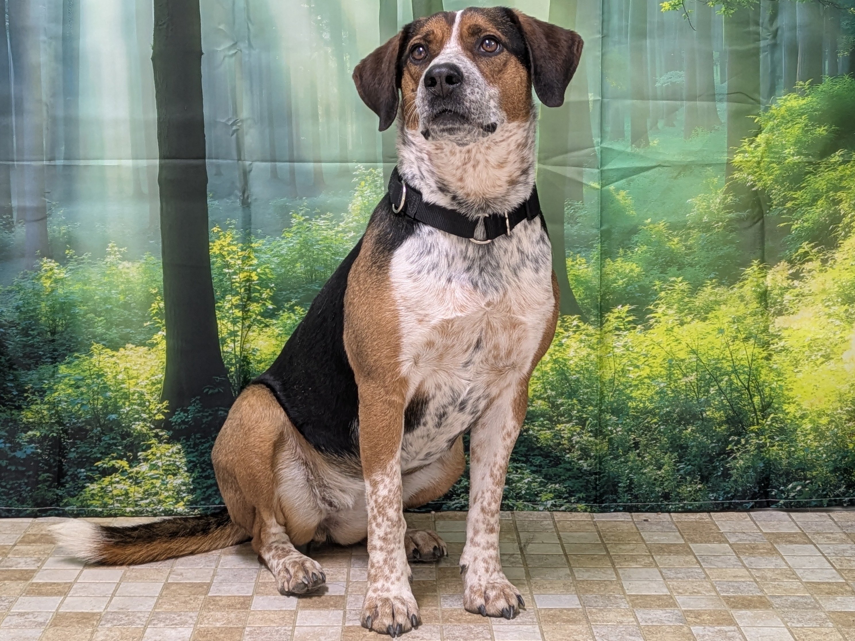 Please do not call the shelter; do the application first. Introducing BB This sweet 3-year-old mixed-breed girl has the beautiful, soulful look of a Bluetick Coonhound blend. She weighs about 45 pounds (with a pound or two to spare), is fully housetrained, and gets along wonderfully with other dogs. She’s also shown polite curiosity toward cats she’s met through screened catios, so with slow, thoughtful introductions, she may do well with a feline friend. BB came from a home with far too many dogs, so now she’s making up for lost time as a full-on love sponge. She wants to be as close as possible to her people - sometimes literally, by gently hopping up to say hello. It’s her only real “bad habit,” and one that older kids and adults can easily redirect (very small children may get tipped over, though she means well!). When you first take her out to play, as you’ll see in her video, BB is enthusiastic and happy to romp, chase a ball, and enjoy a short burst of fun. But don’t be fooled; she’s also a certified couch potato. After 10–15 minutes of play, she’s ready to curl up beside you and settle in for a good cuddle or a football-watching session. Even by the end of her video, you can see her relaxing into snuggle mode. BB is an easygoing, adaptable companion who should integrate quickly into a wide variety of homes, whether solo or with a friendly dog buddy or two. She won’t ask for marathon runs or high-octane exercise. A few games of fetch, a daily sniff-walk, or even just exploring the backyard will keep her content. Most of all, she loves being part of the pack (human, canine, or both) and would be thrilled to join you on family outings and adventures. If you’re looking for a gentle, affectionate, low-maintenance companion with a perfect mix of playfulness and cuddles, BB might be your girl. She’s ready to soak up all the love you have to give. All pets arrive spayed/neutered, dewormed, microchipped and vaccinated. Adoption fee for BB is a suggested minimum of $150 (more gratefully accepted). All pets are placed with a 30-day money-back trial period, to give pet and family enough time to discover any unknown allergies or other conflicts. Can't come to Republic? Don't let that stop you! We have monthly transports to the Seattle area, delivering adopted pets to their new owners. If you can add a little to your donation to help us cover our volunteer driver's expenses, that would be great!